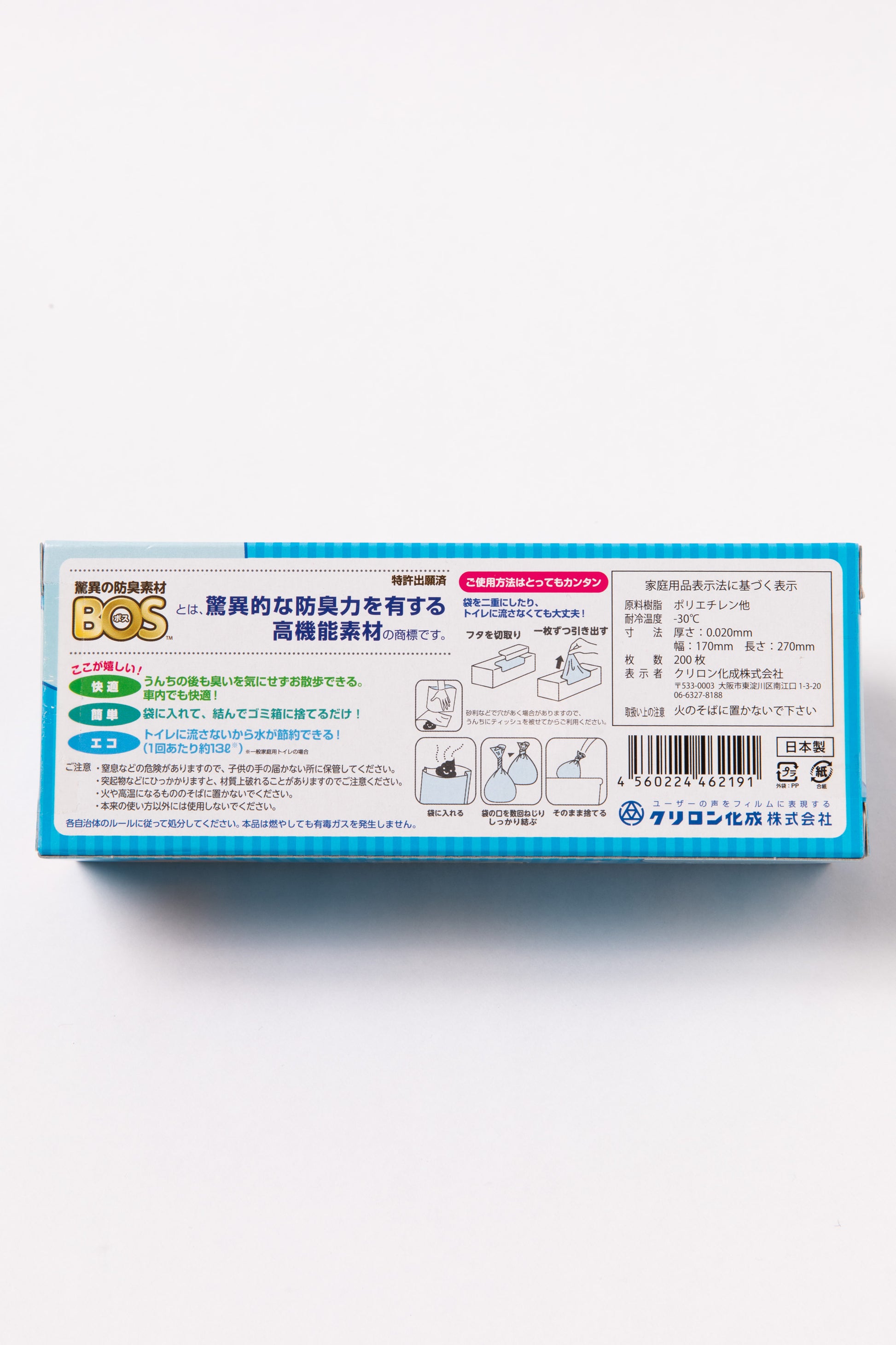 驚異的な防臭力を有する高機能素材”BOS(ボス)”ペットのうんちに最適なSSサイズです。