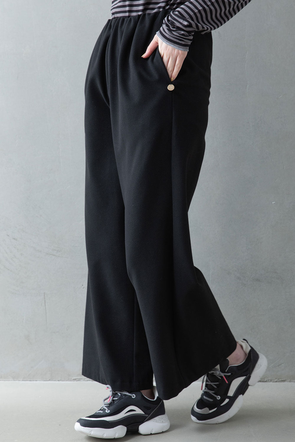 たっぷりとした分量感と、落ち感のある素材が織りなす美しいシルエット。ウエストは総ゴム仕様で、ストレスフリーな履き心地ながら、きちんと感も兼ね備えた一本です。ベーシックからニュアンスカラーまで揃えた豊富な色展開で、気分に合わせたスタイリングが楽しめます。