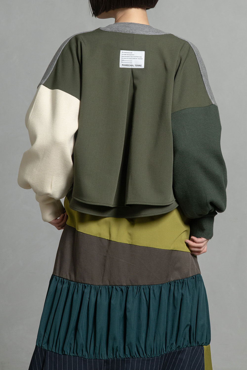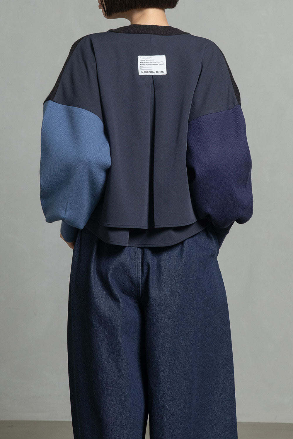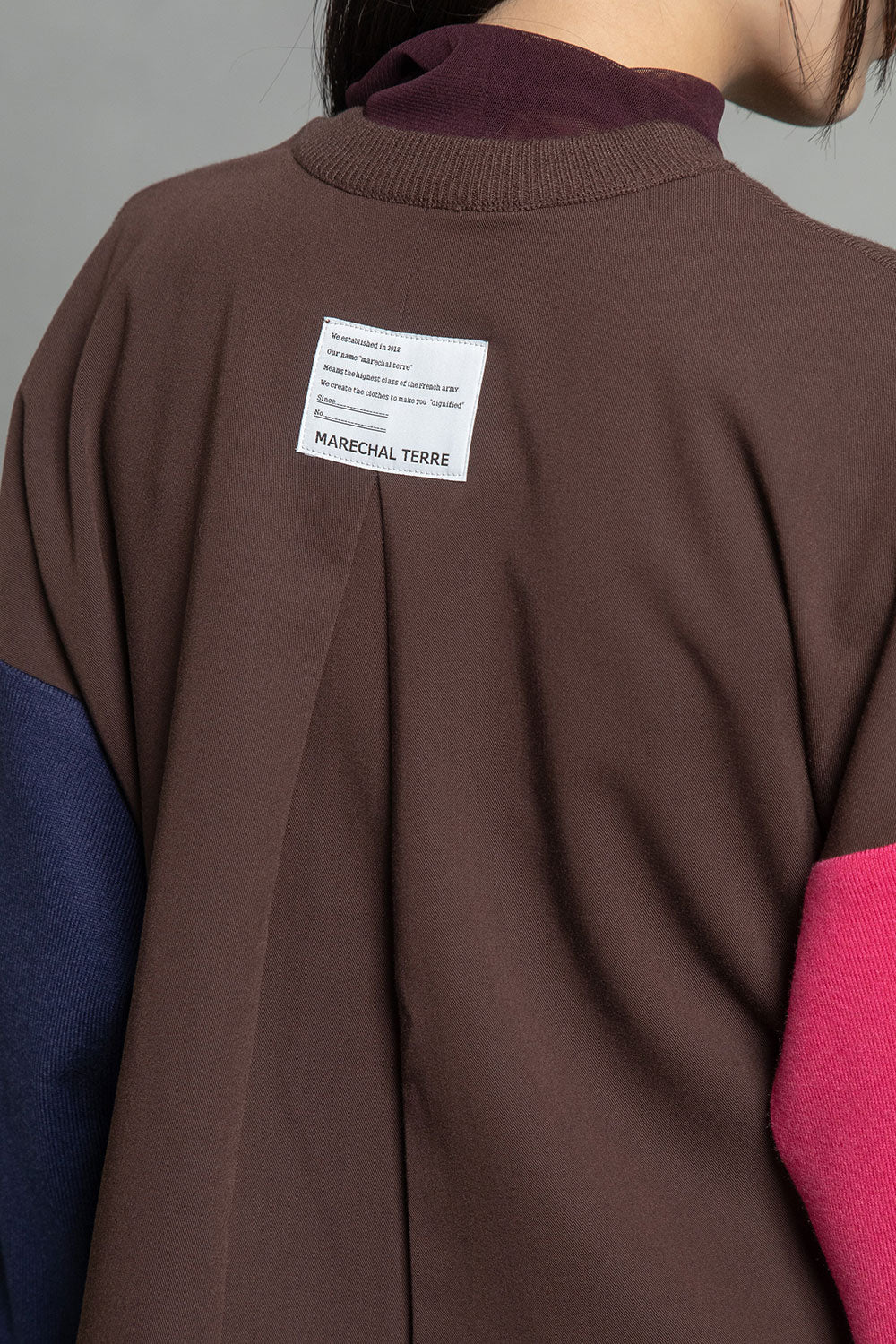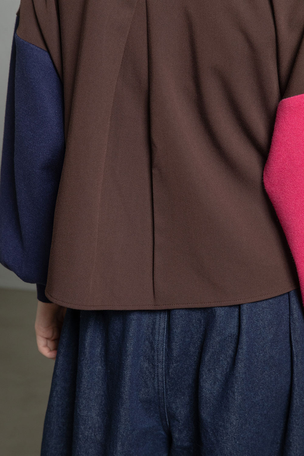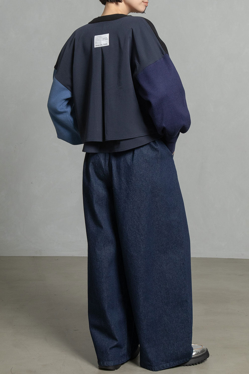 ■後身頃は異素材のツイル生地を使用したカラーブロックデザインでボックスタックから広がる抜け感のあるシルエット
