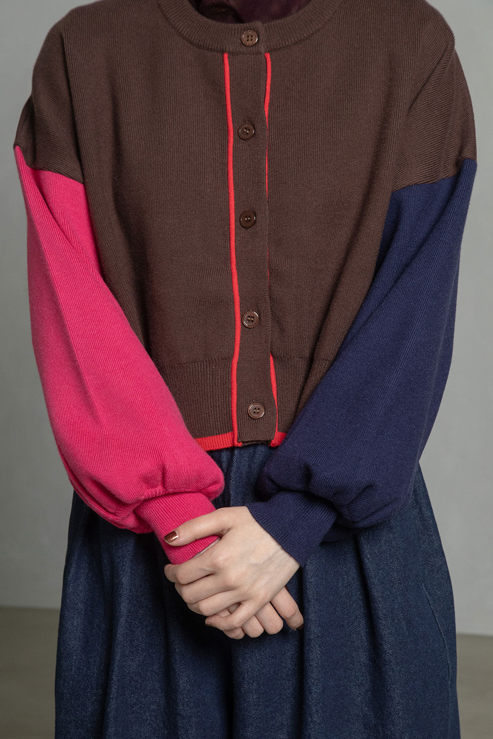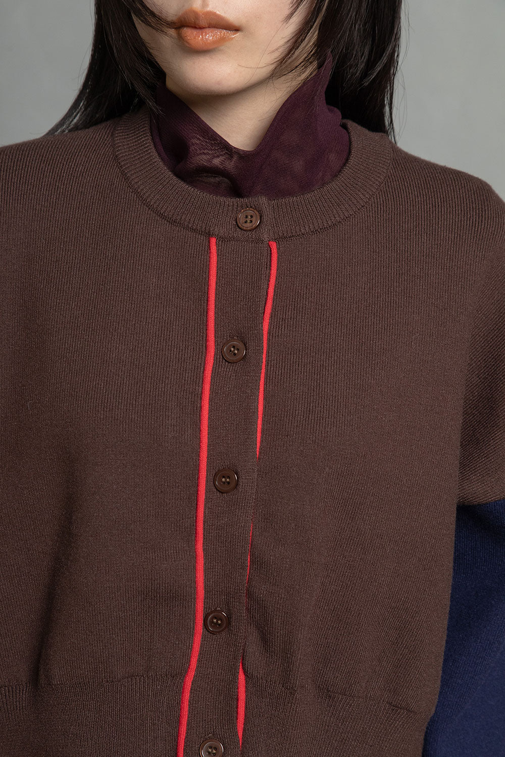 ゆったりとしたボックスシルエットに、袖や裾の配色が映えるニットカーディガン。ドロップショルダーで肩の力を抜いたような抜け感を演出しつつ、前立てのボタンがクラシカルな雰囲気を演出。センターバックにはさりげないブランドロゴネームを施し、後ろ姿まで印象的に。羽織るだけでスタイリングが完成する、主役級の一枚です。