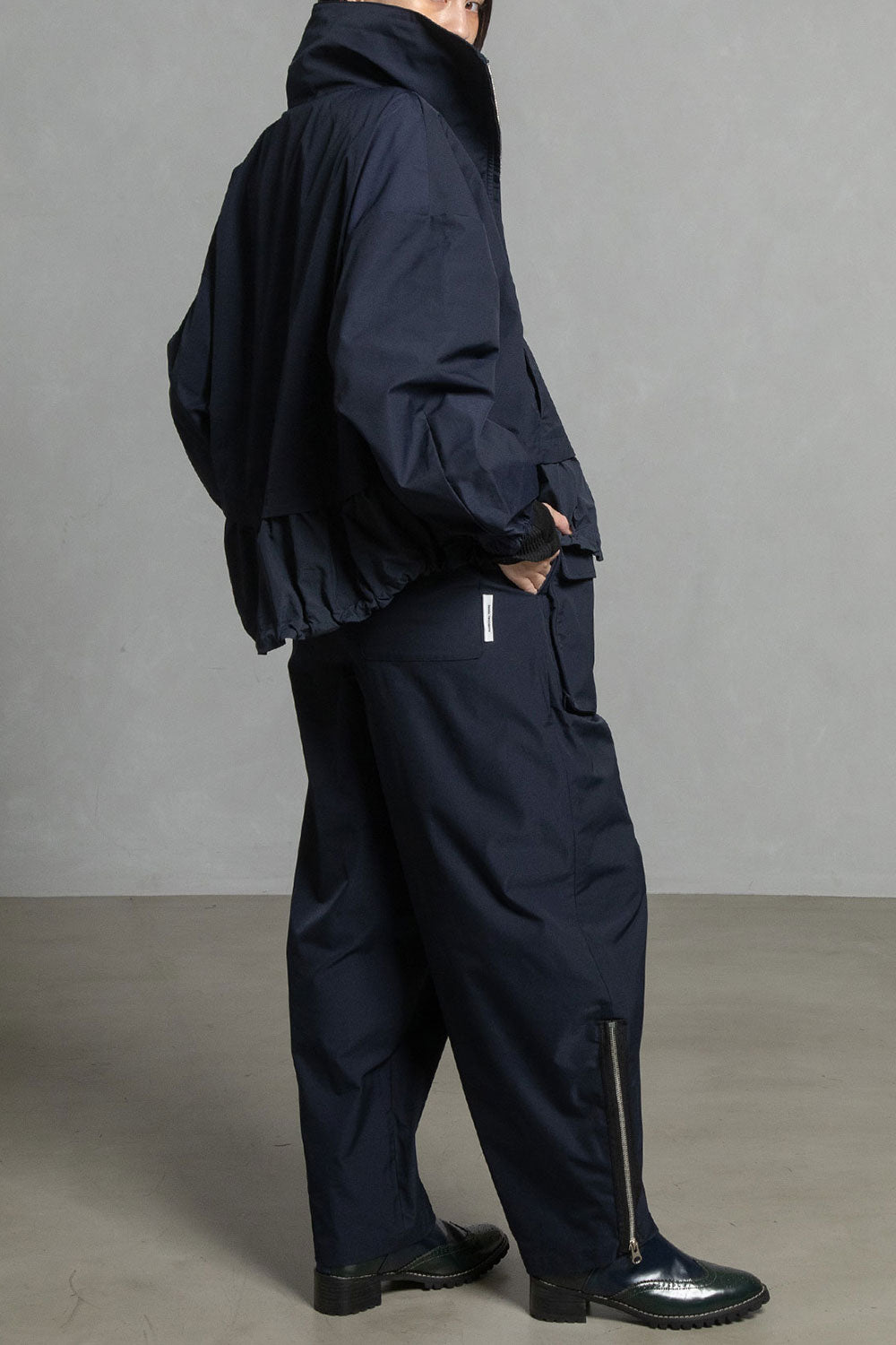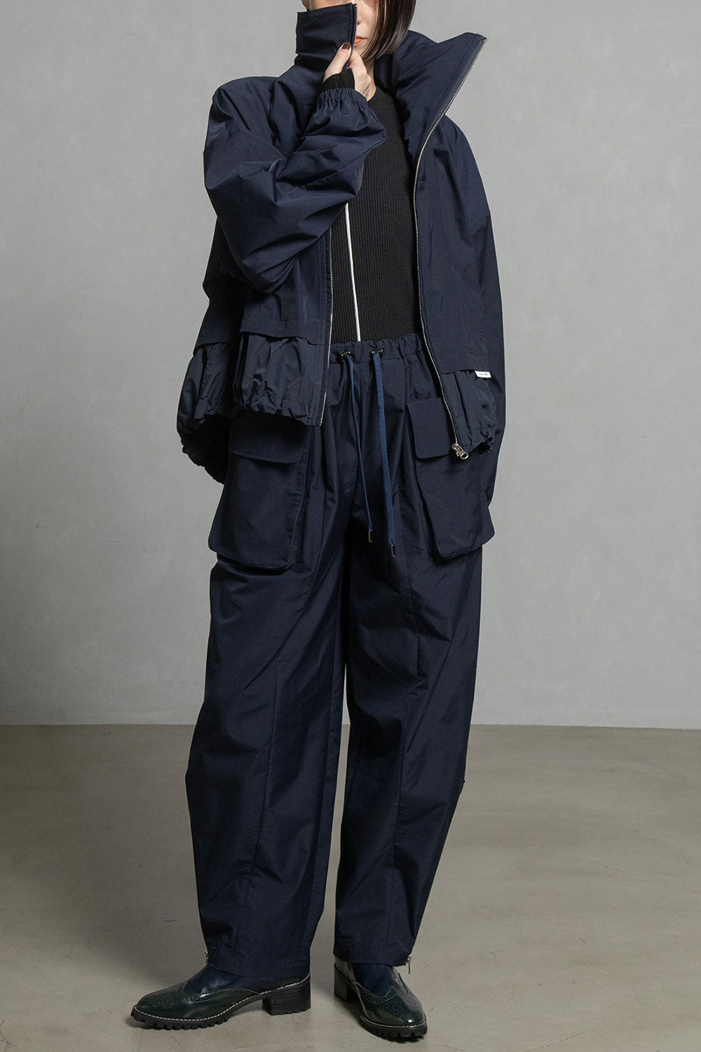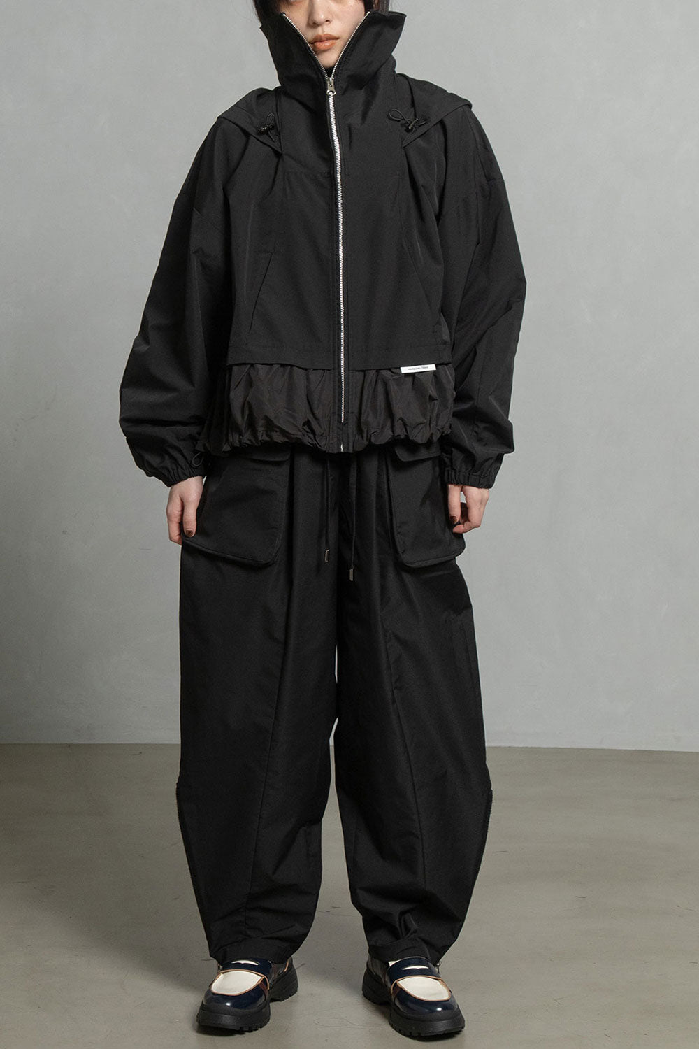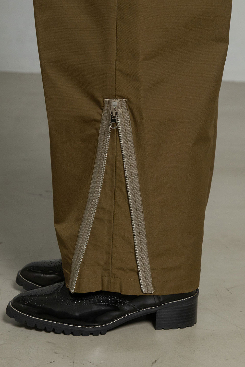 両サイドに付いた裾のファスナーでコクーンシルエットにも変化するスタイリングするアイテムや気分で楽しめるアイテムです。