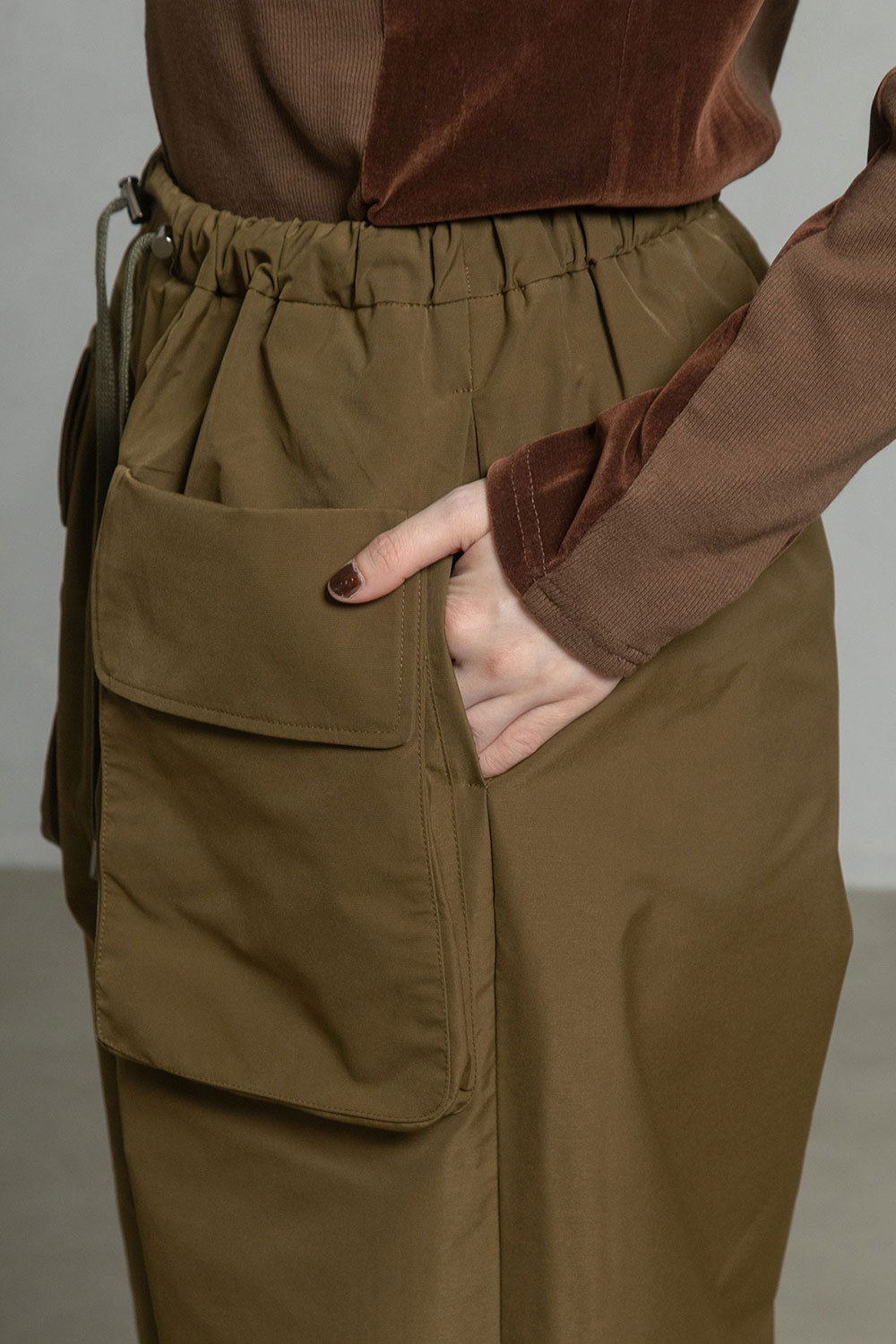 フロントにある立体感のある大きめのポケットが目を惹くカーゴパンツ。
