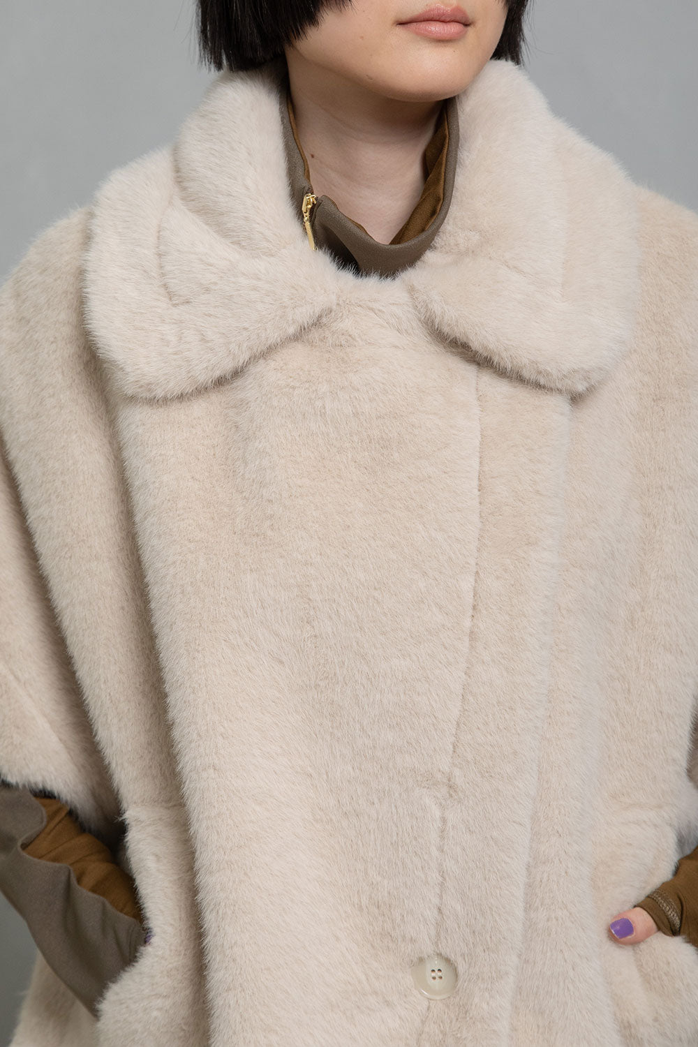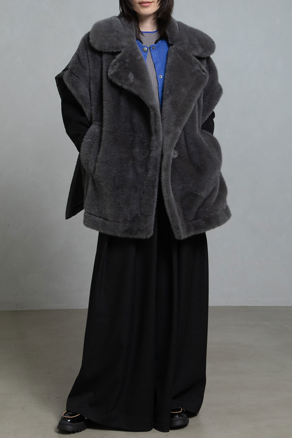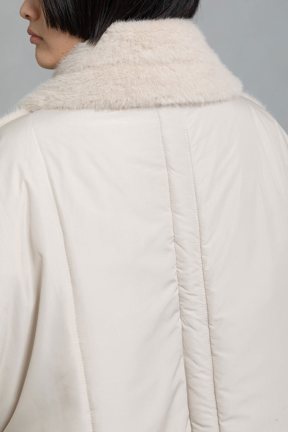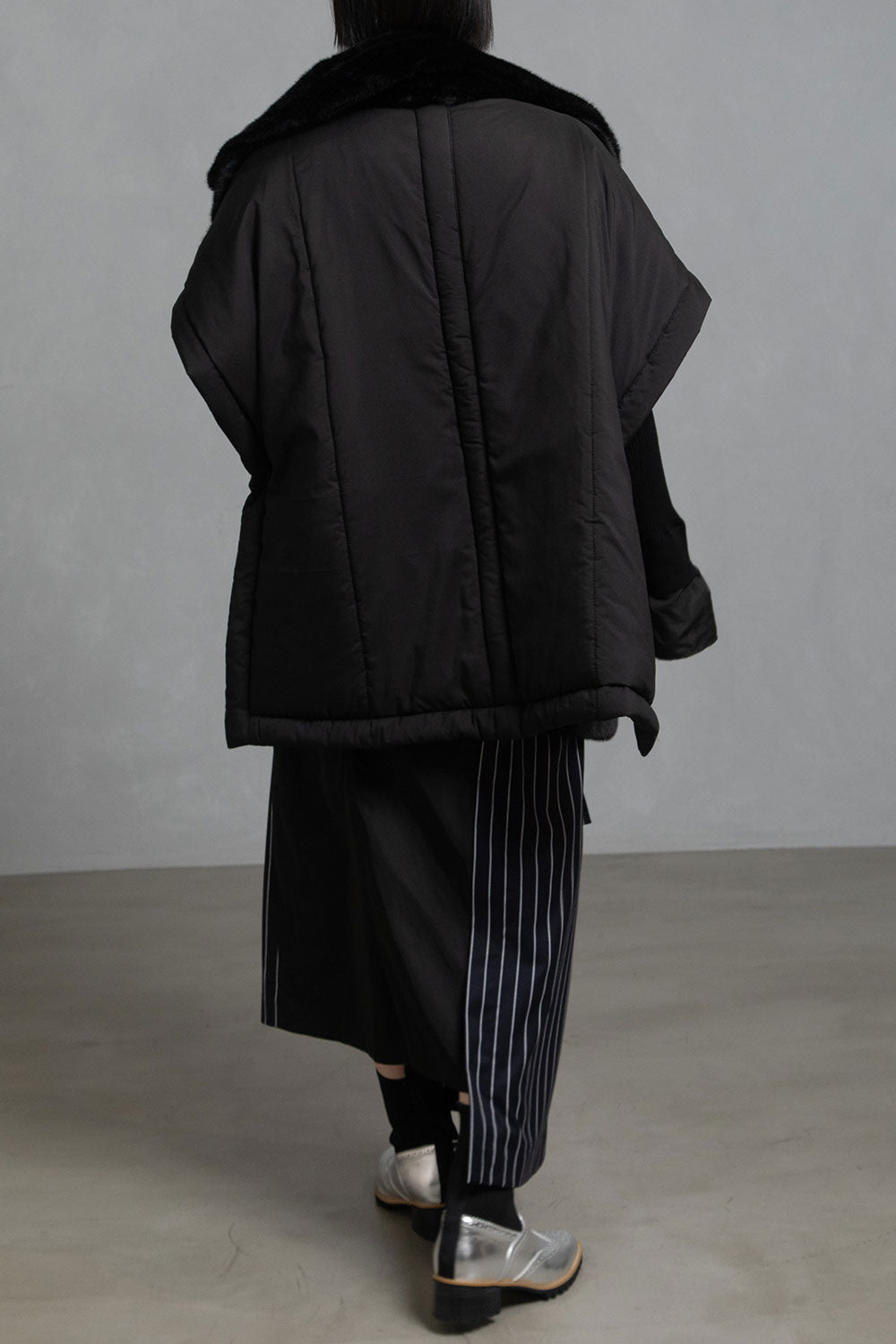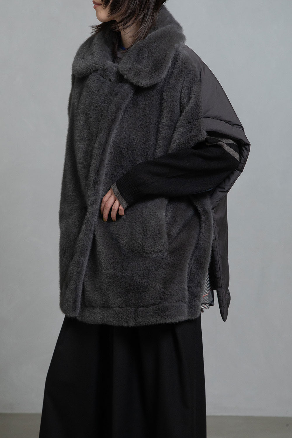 ■前身頃がフェイクファー、後身頃がタフタ×中綿入りタフタの異素材コンビネーション