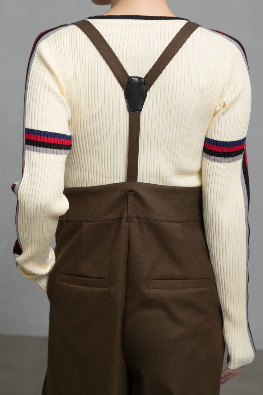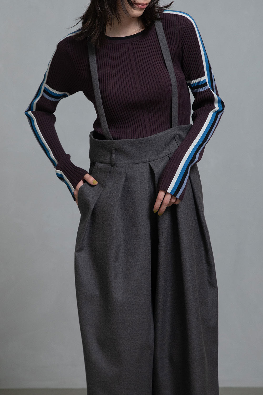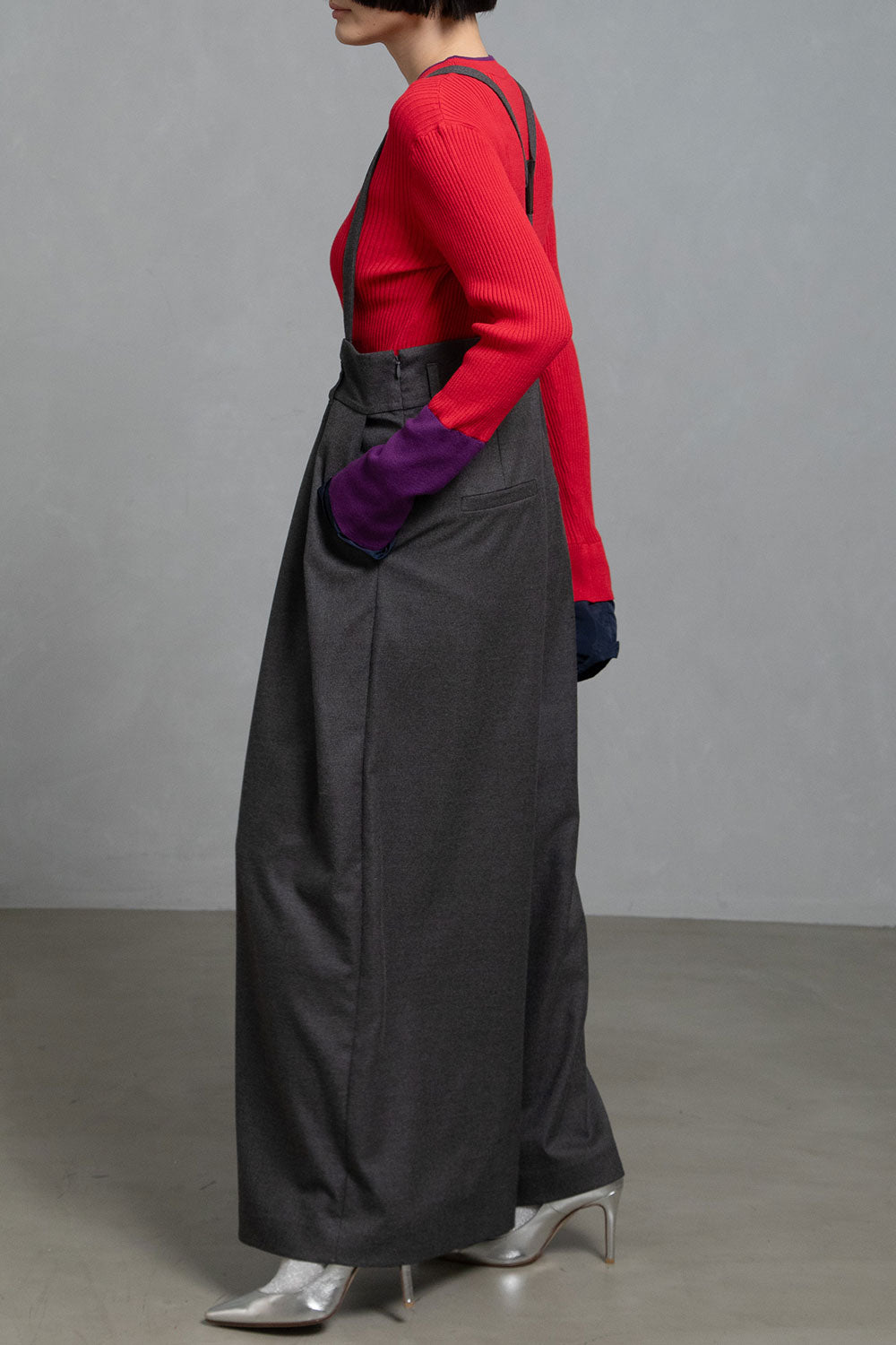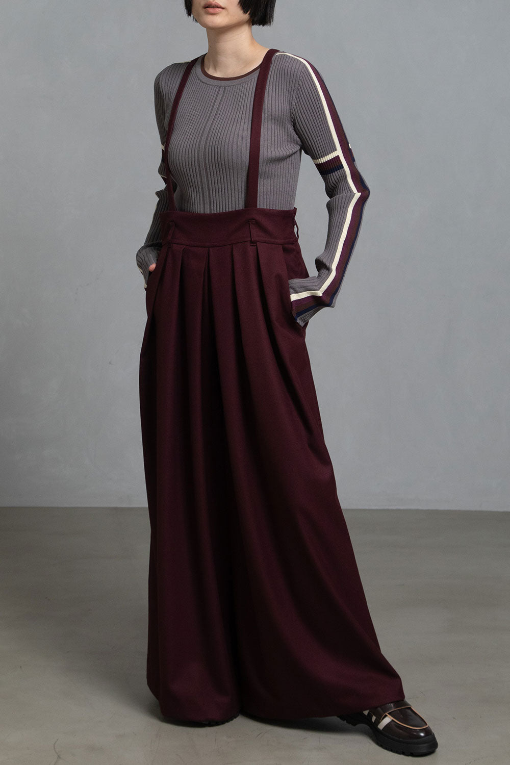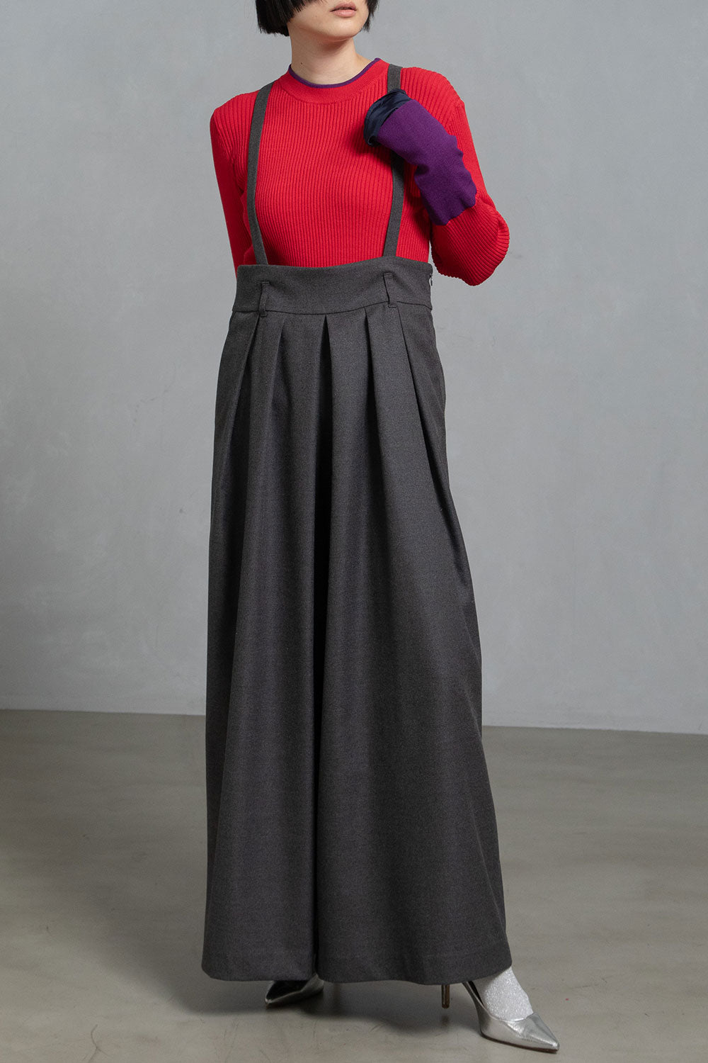装いに“華やぎ”を添える、大人のためのサスペンダー付きパンツ。