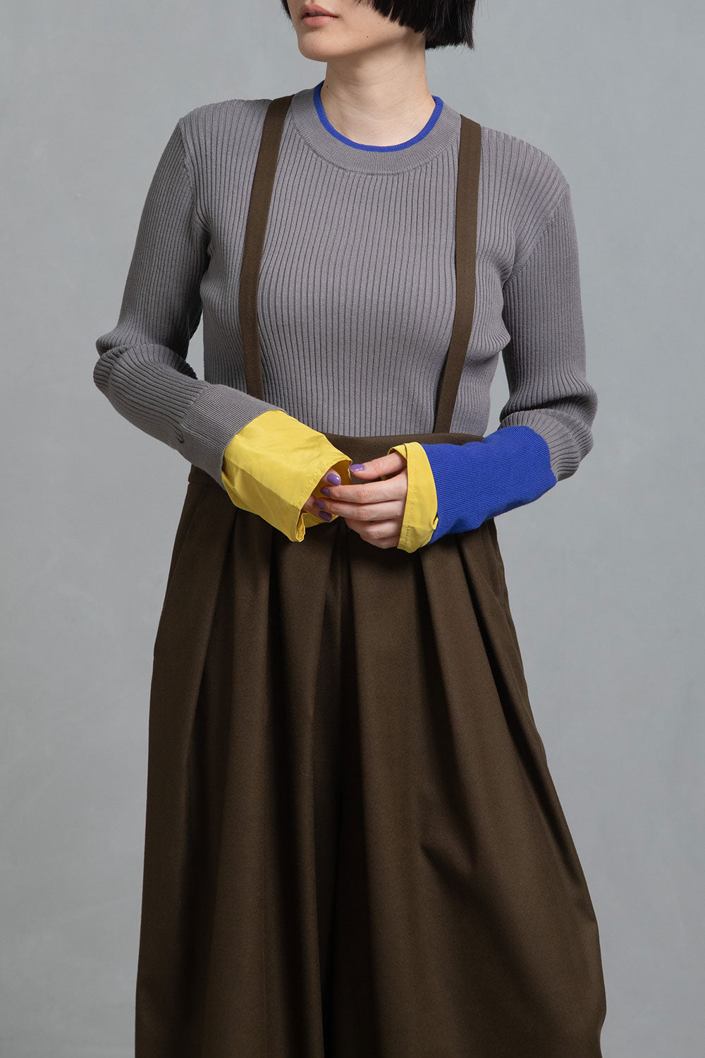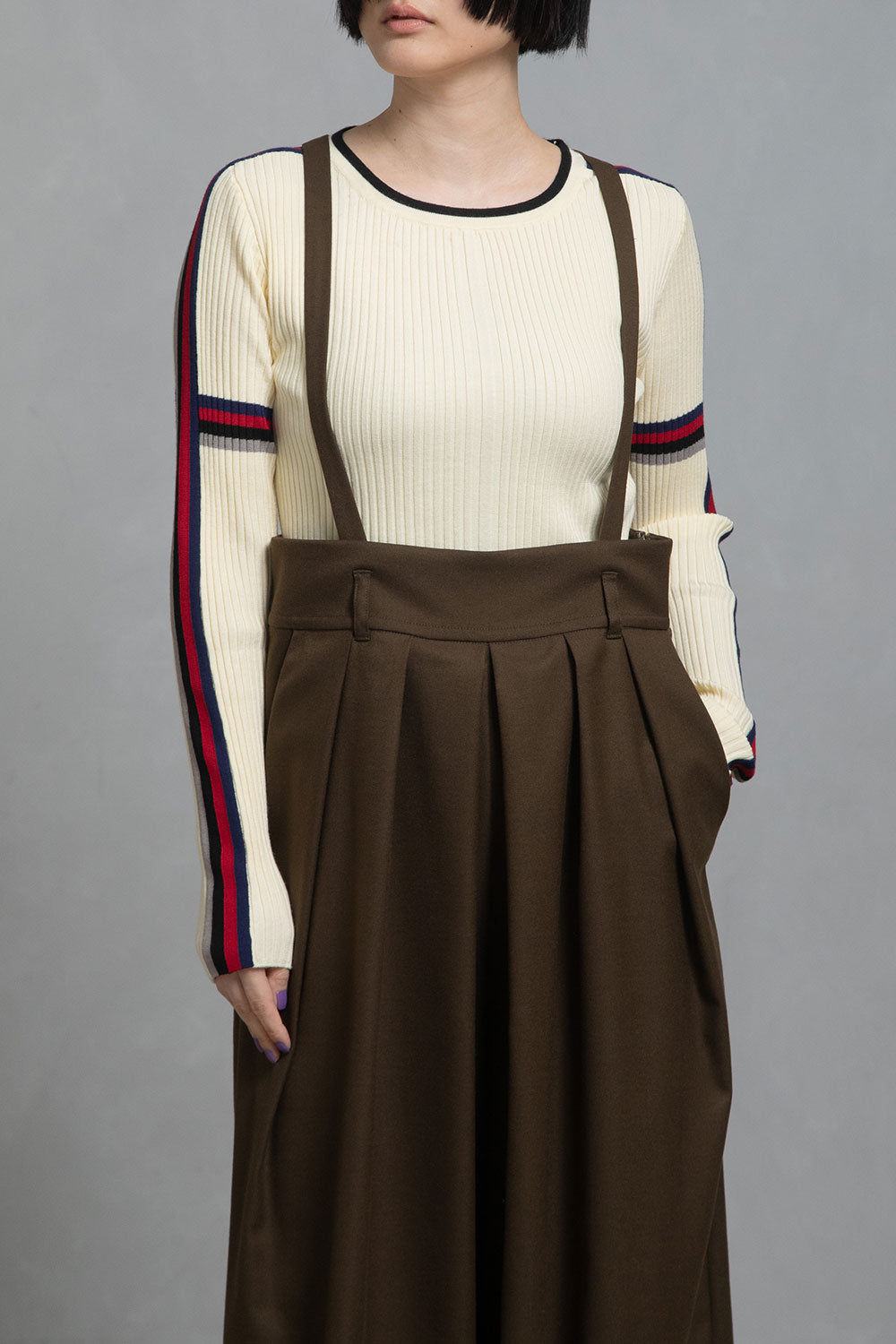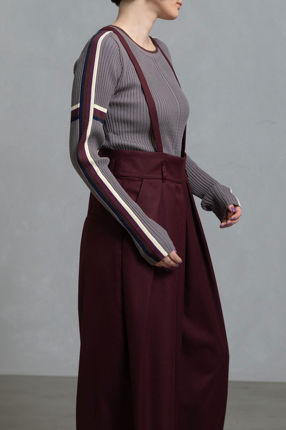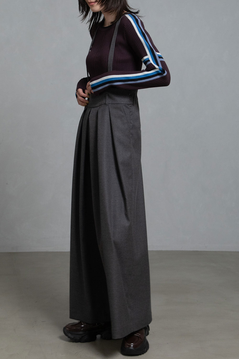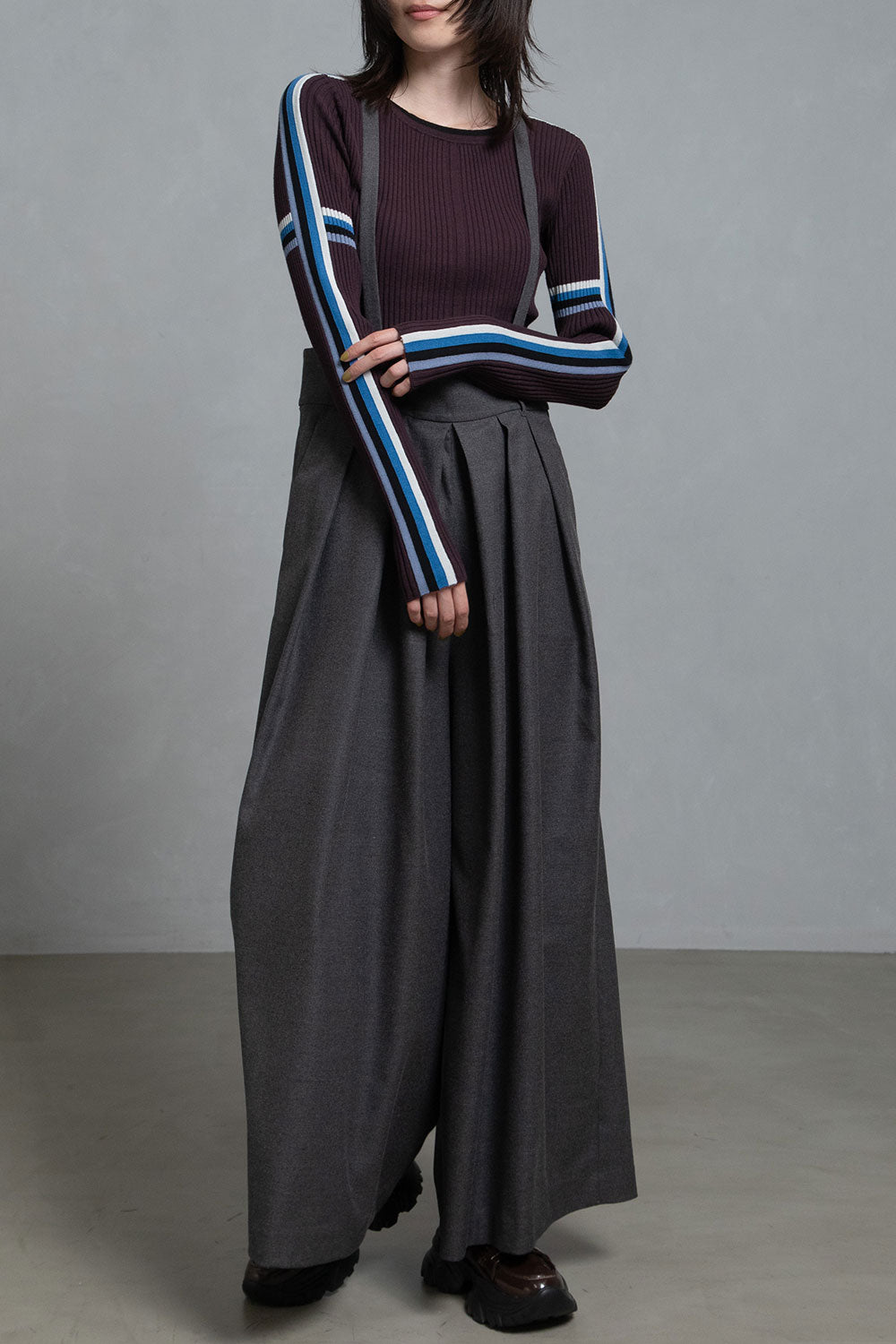 装いに“華やぎ”を添える、大人のためのサスペンダー付きパンツ。