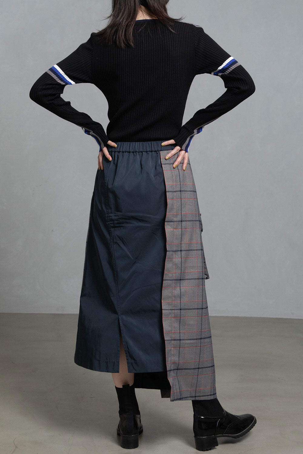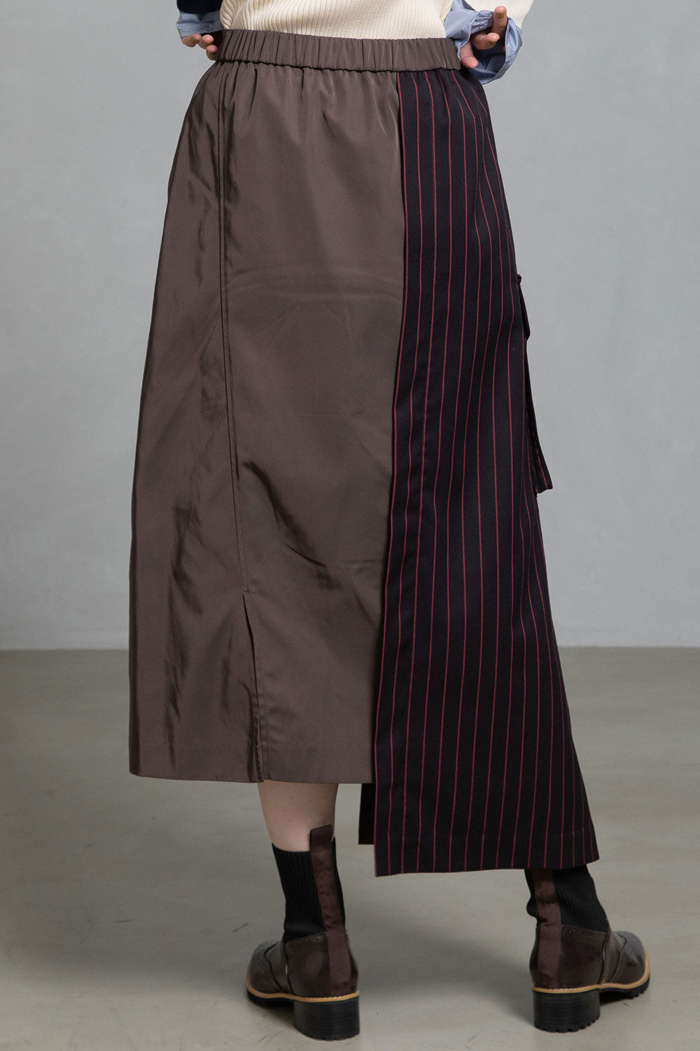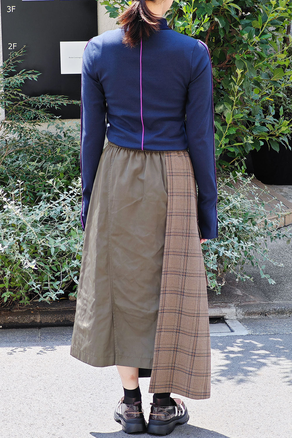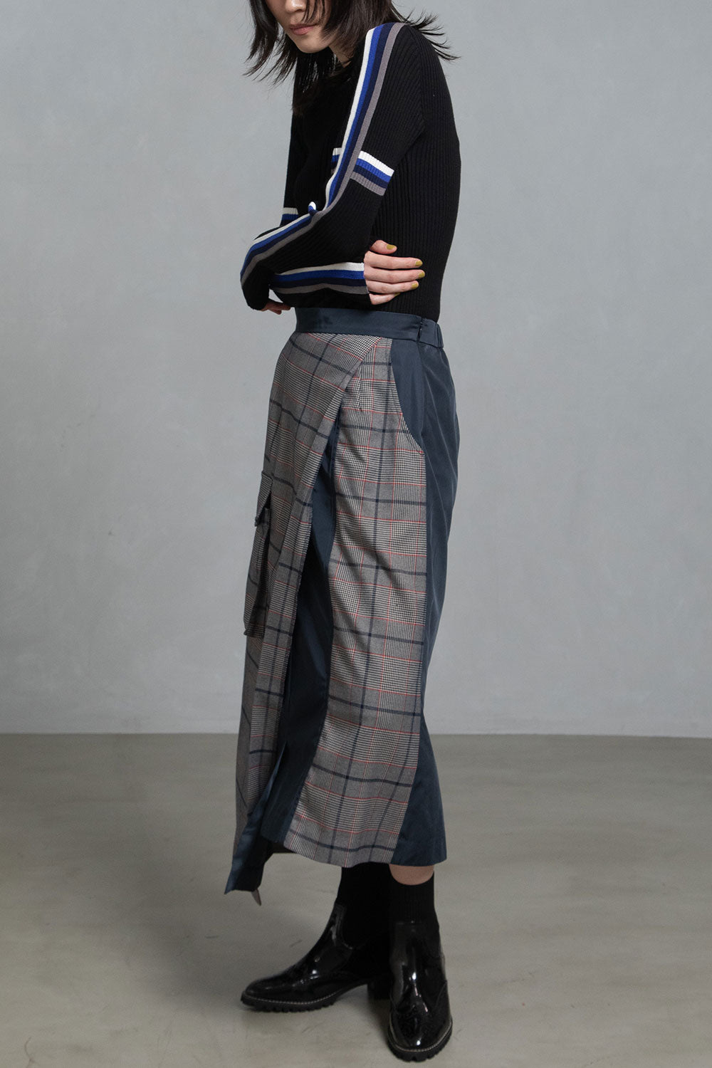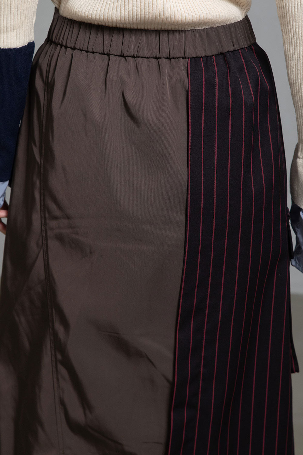 ツイル×ストライプ / チェックのコンビネーションデザインスカート