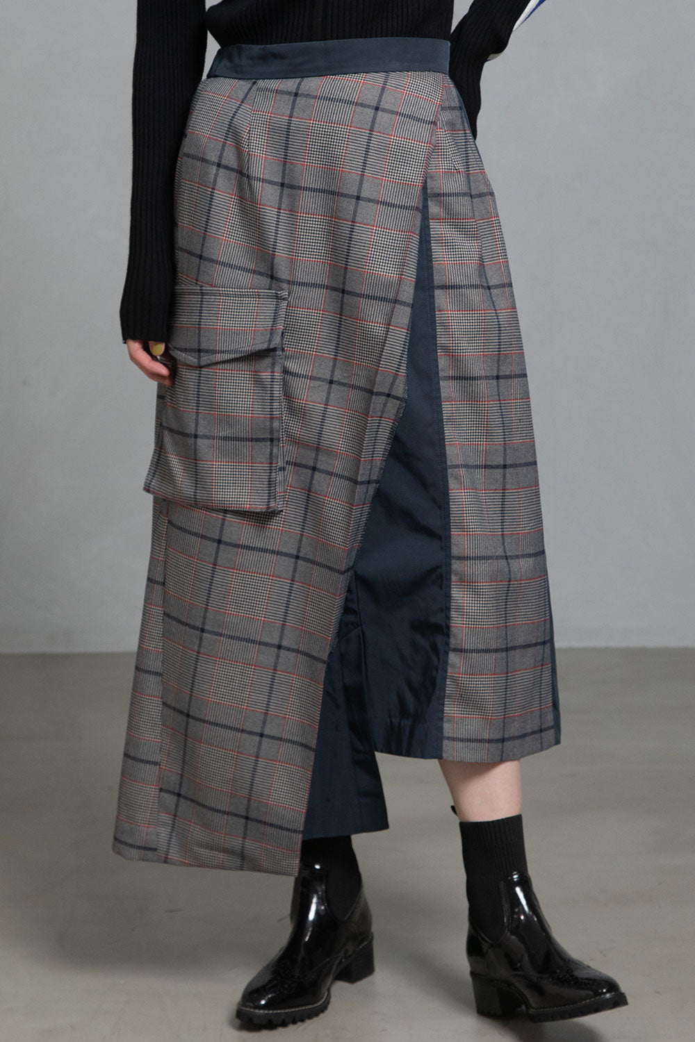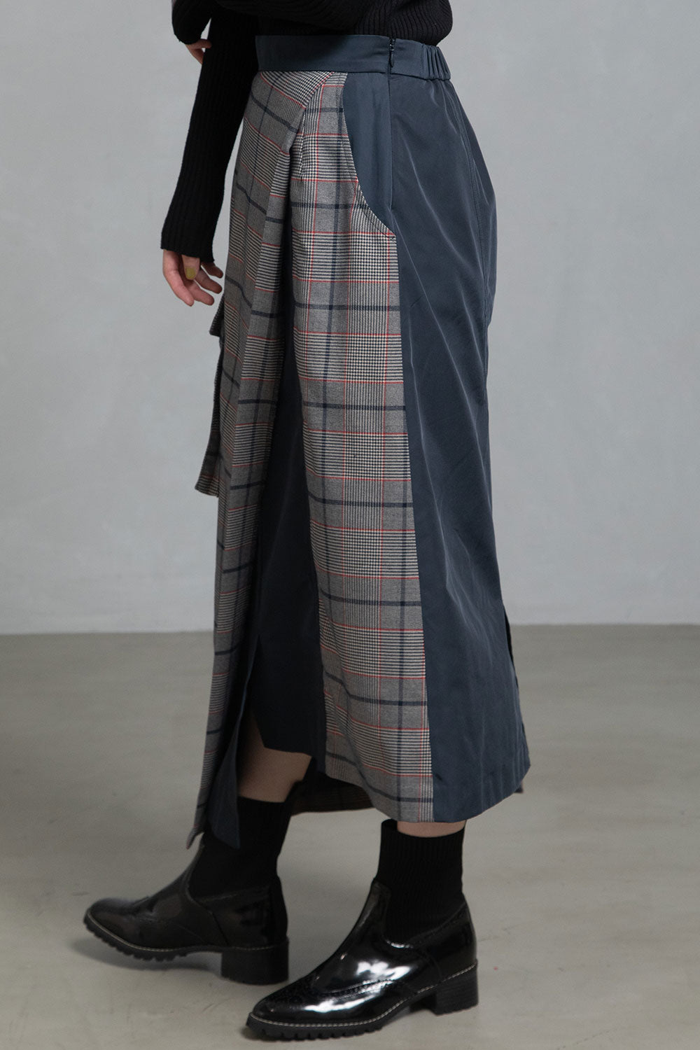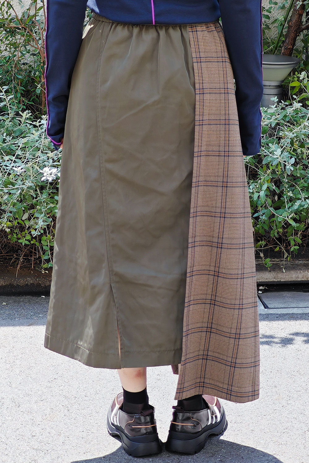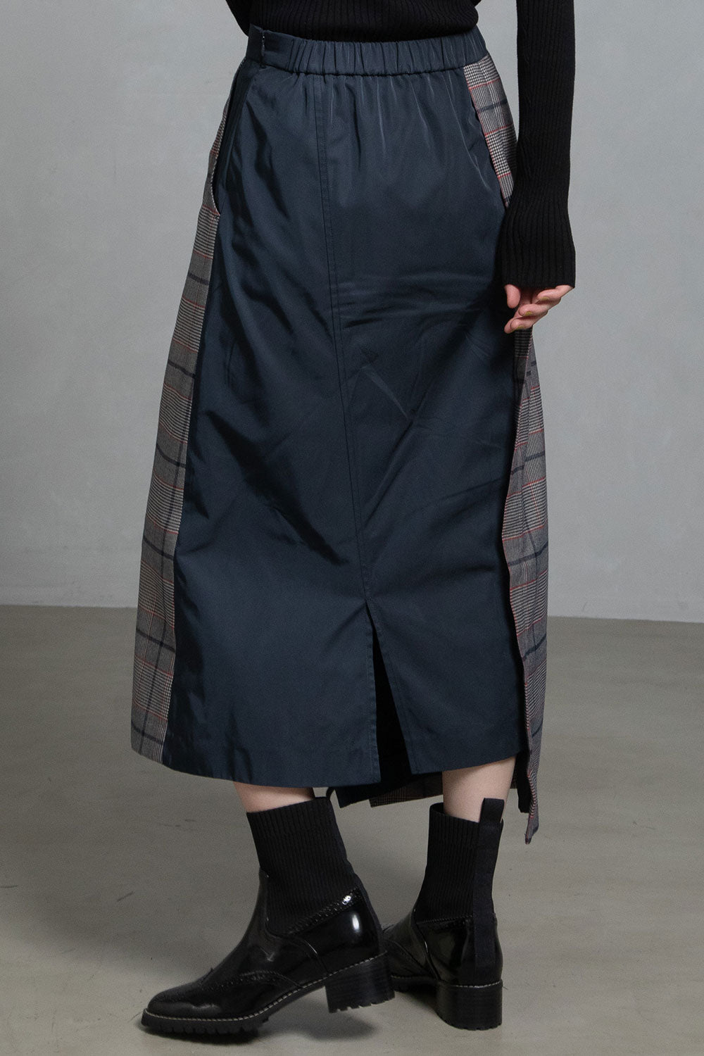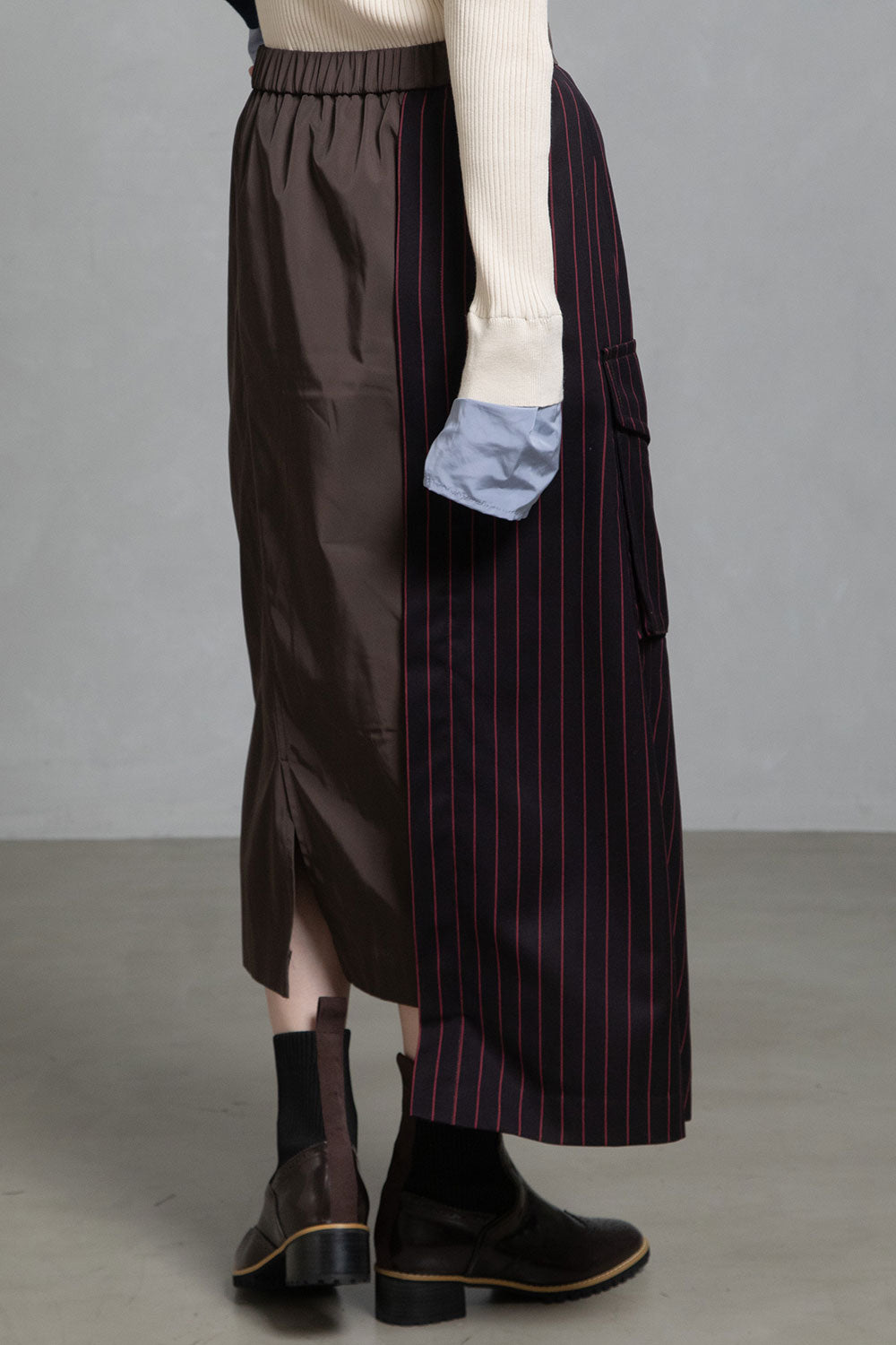 ツイル×ストライプ / チェックのコンビネーションデザインスカート