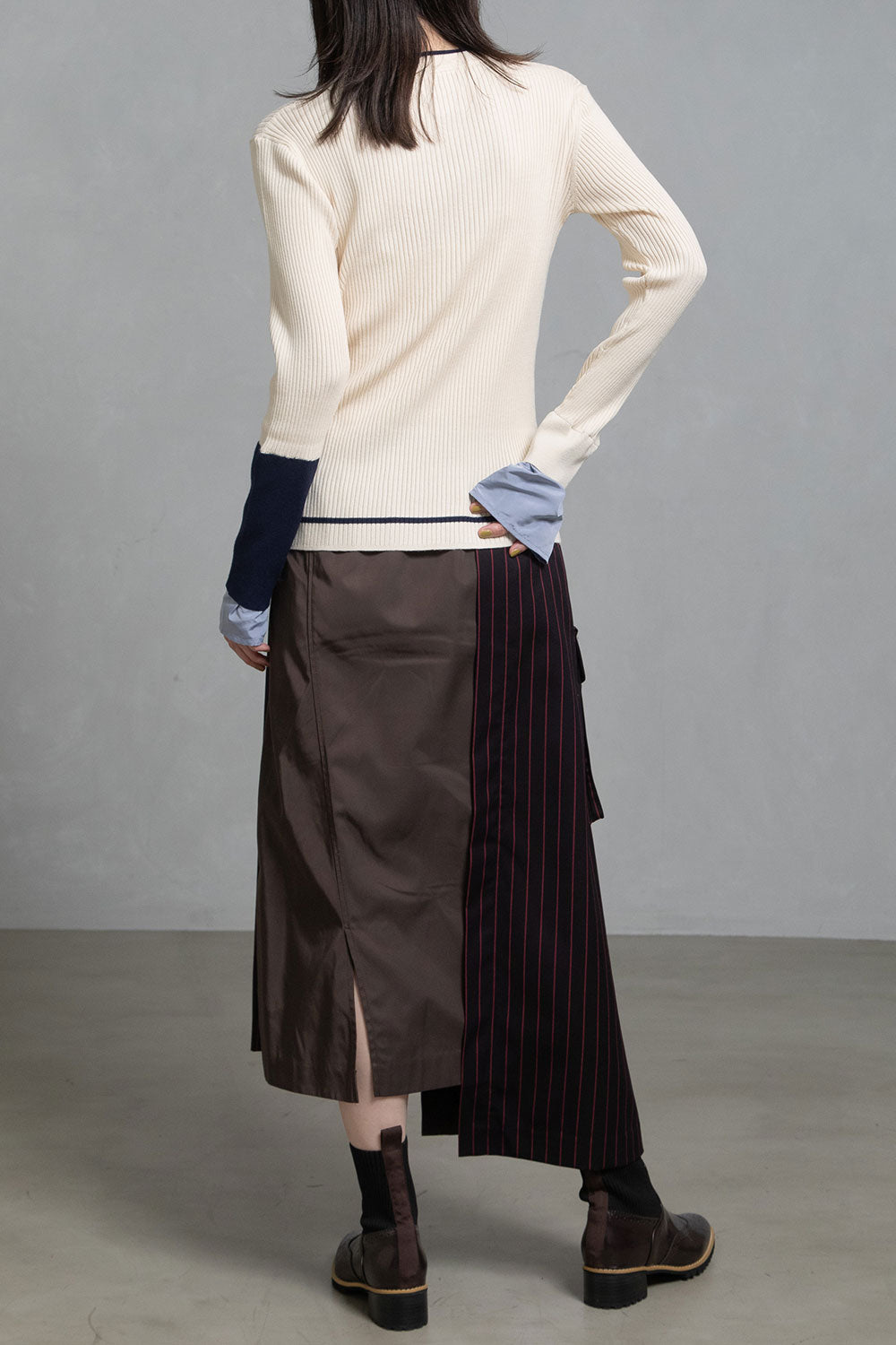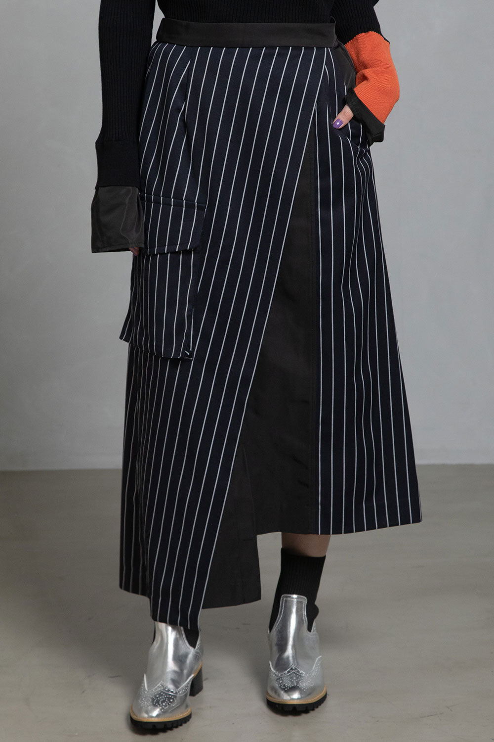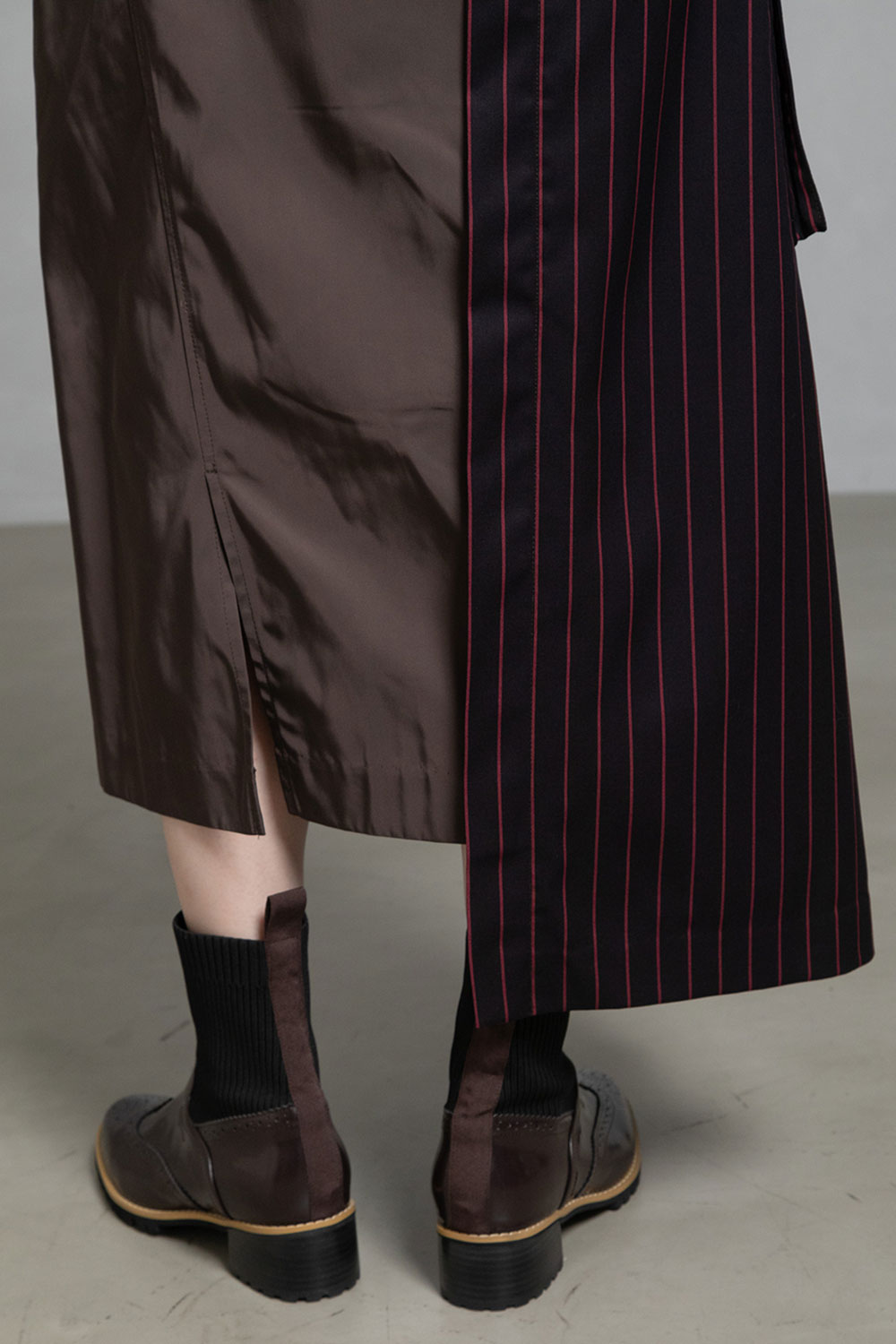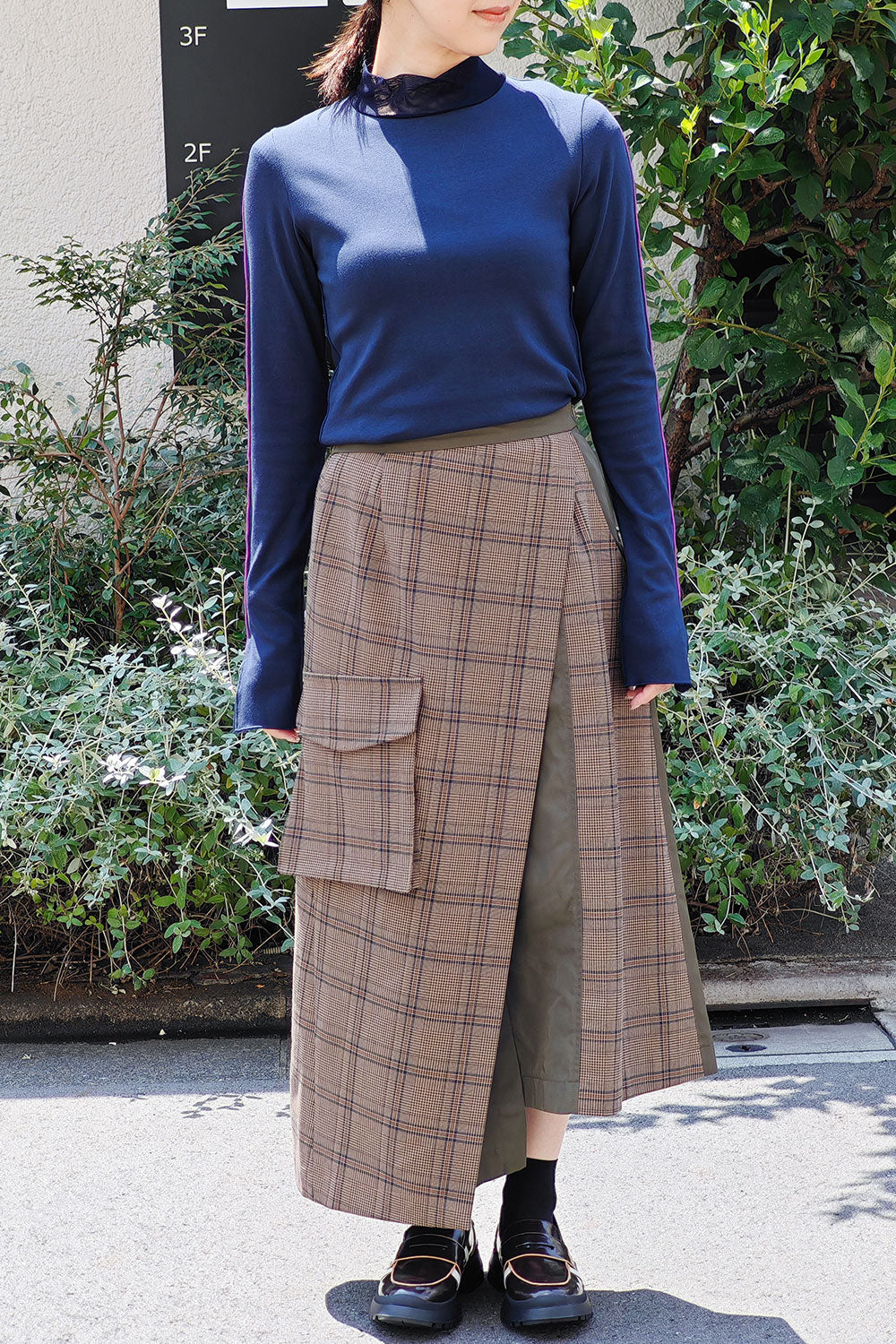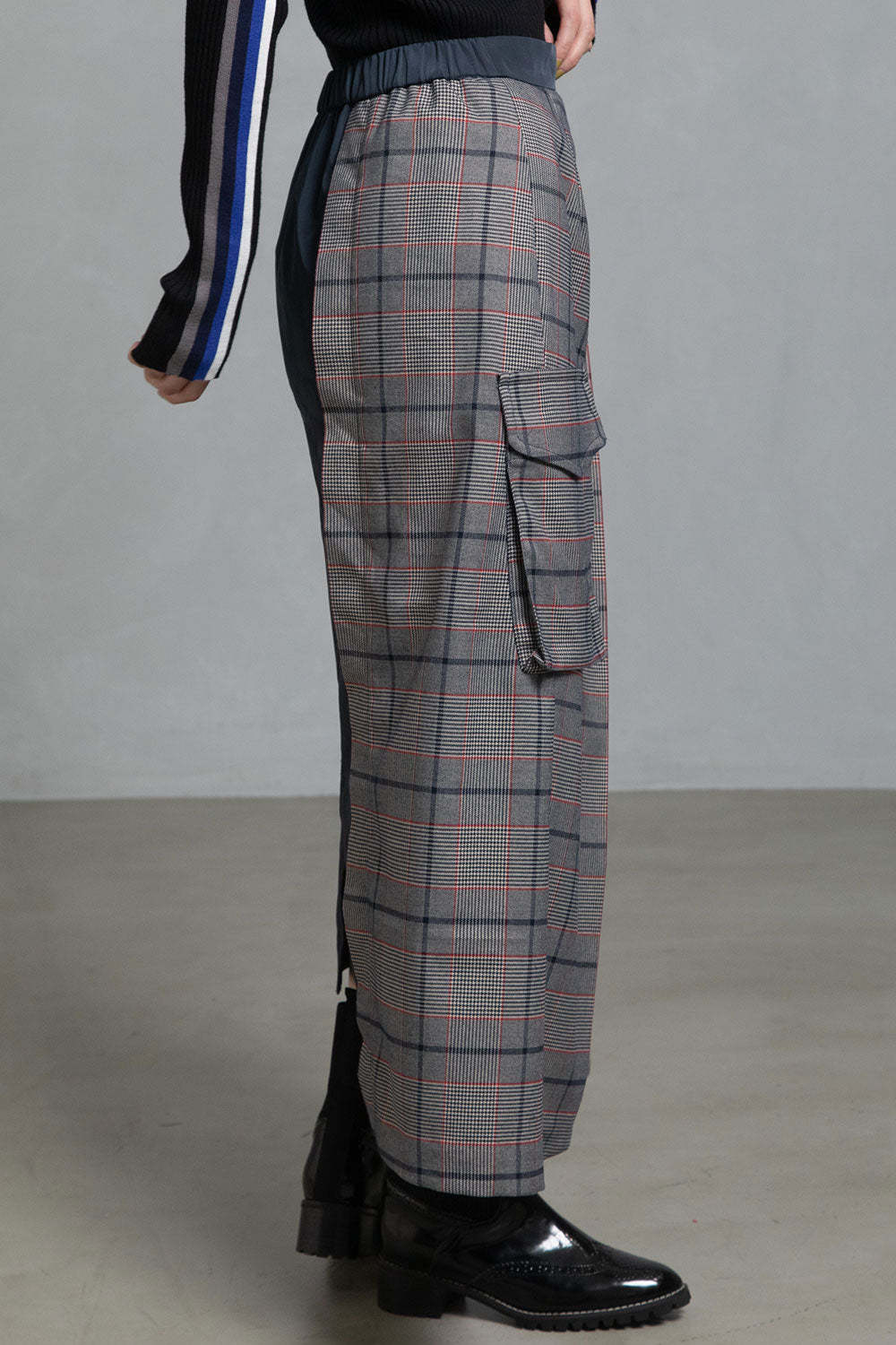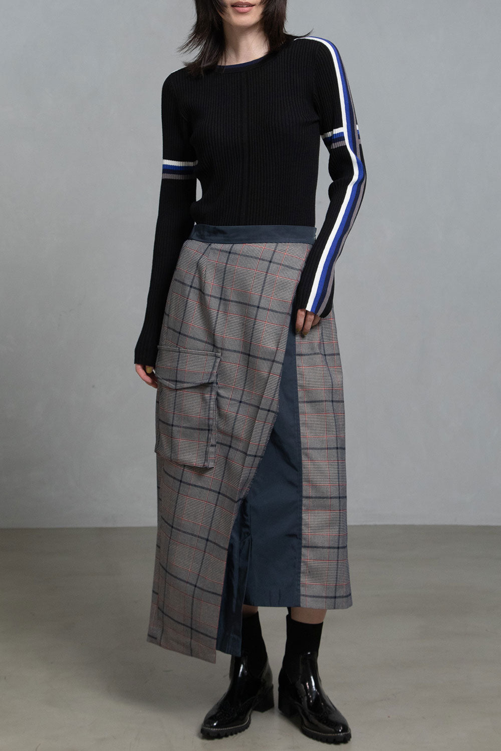 ツイル×ストライプ / チェックのコンビネーションデザインスカート