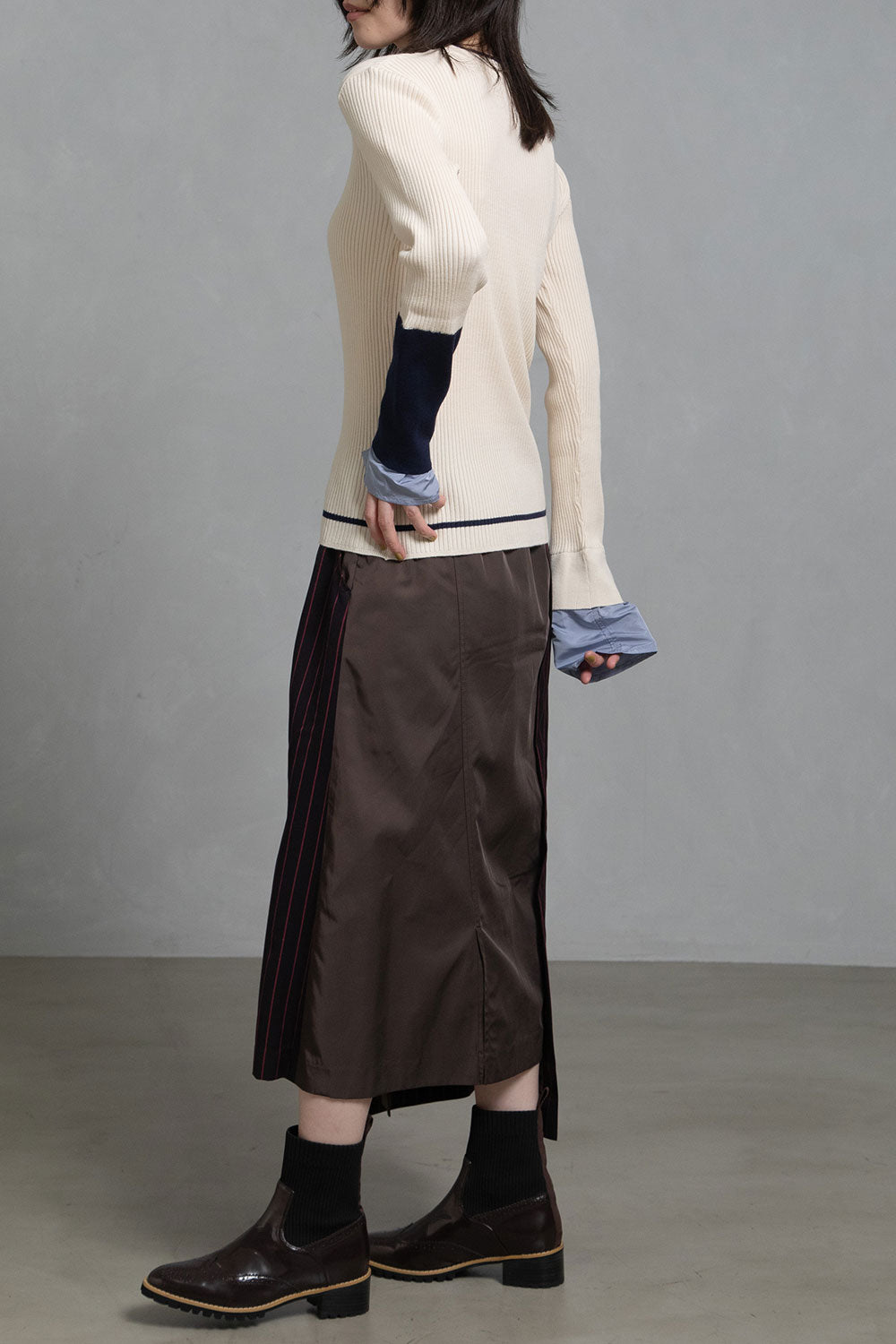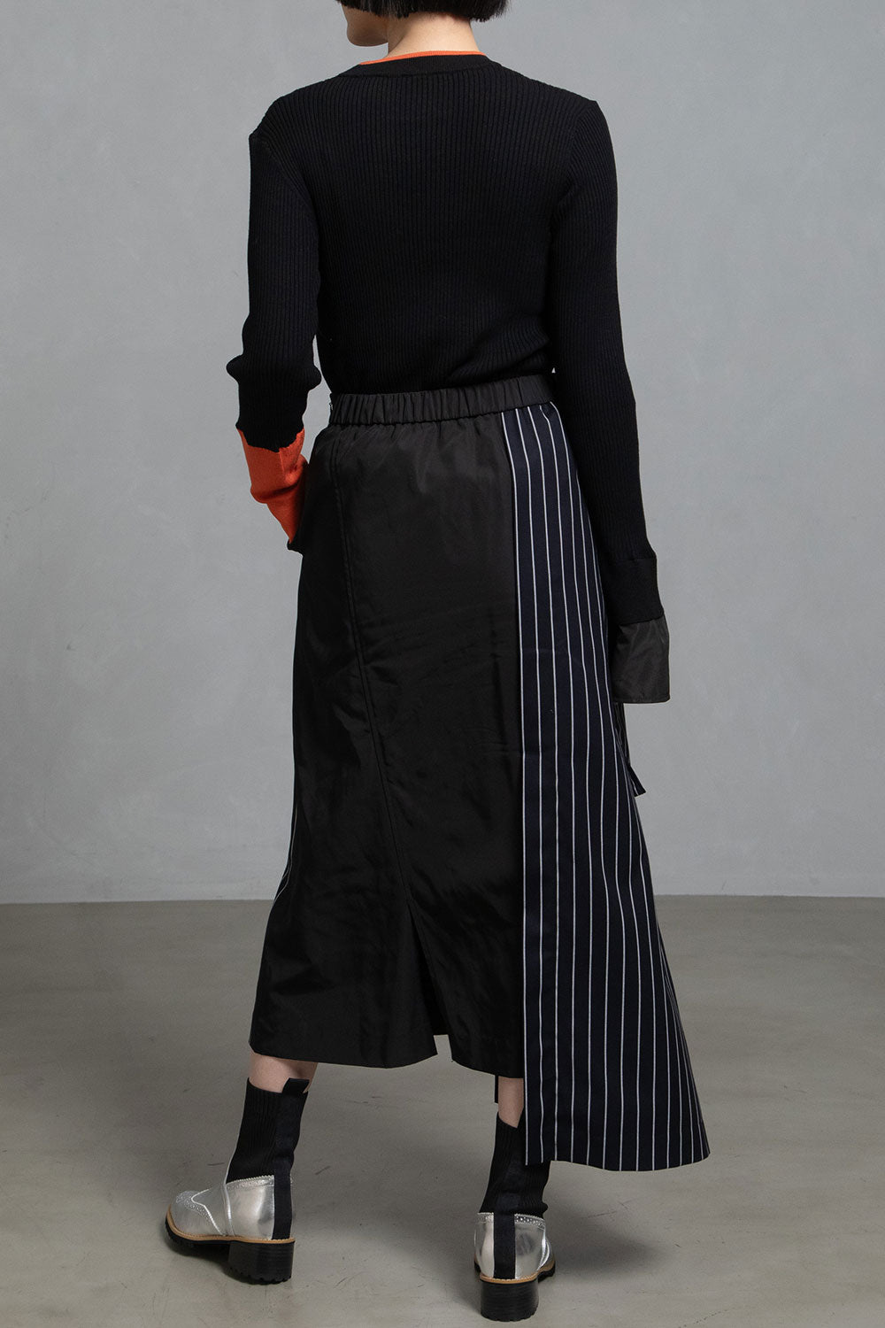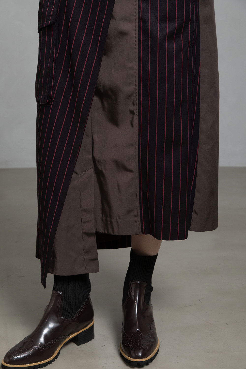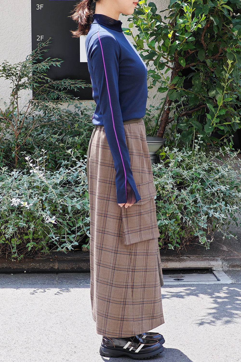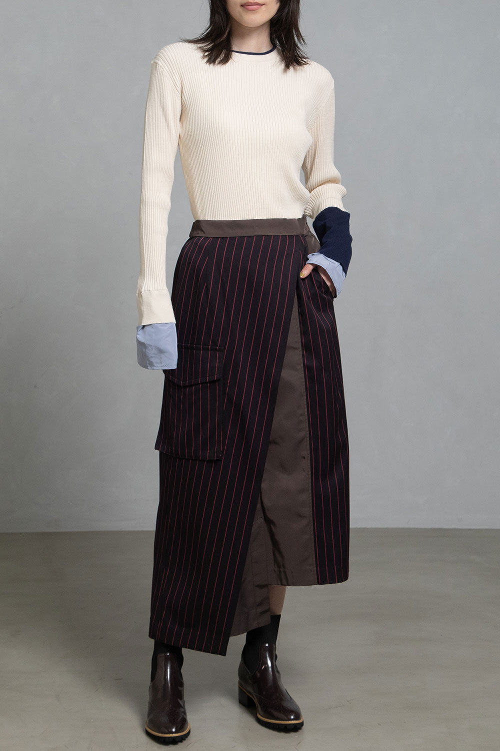 ツイル×ストライプ / チェックのコンビネーションデザインスカート