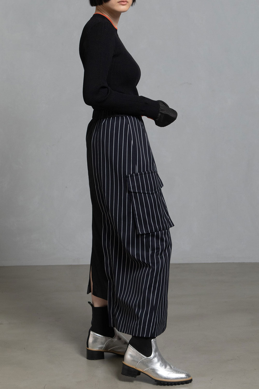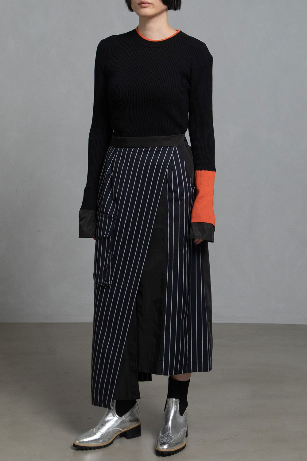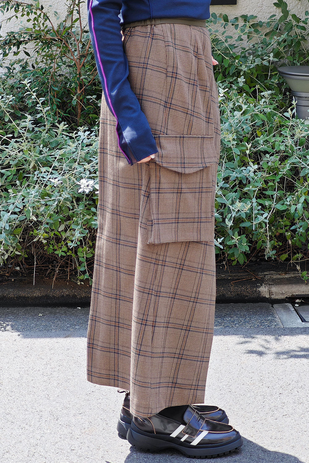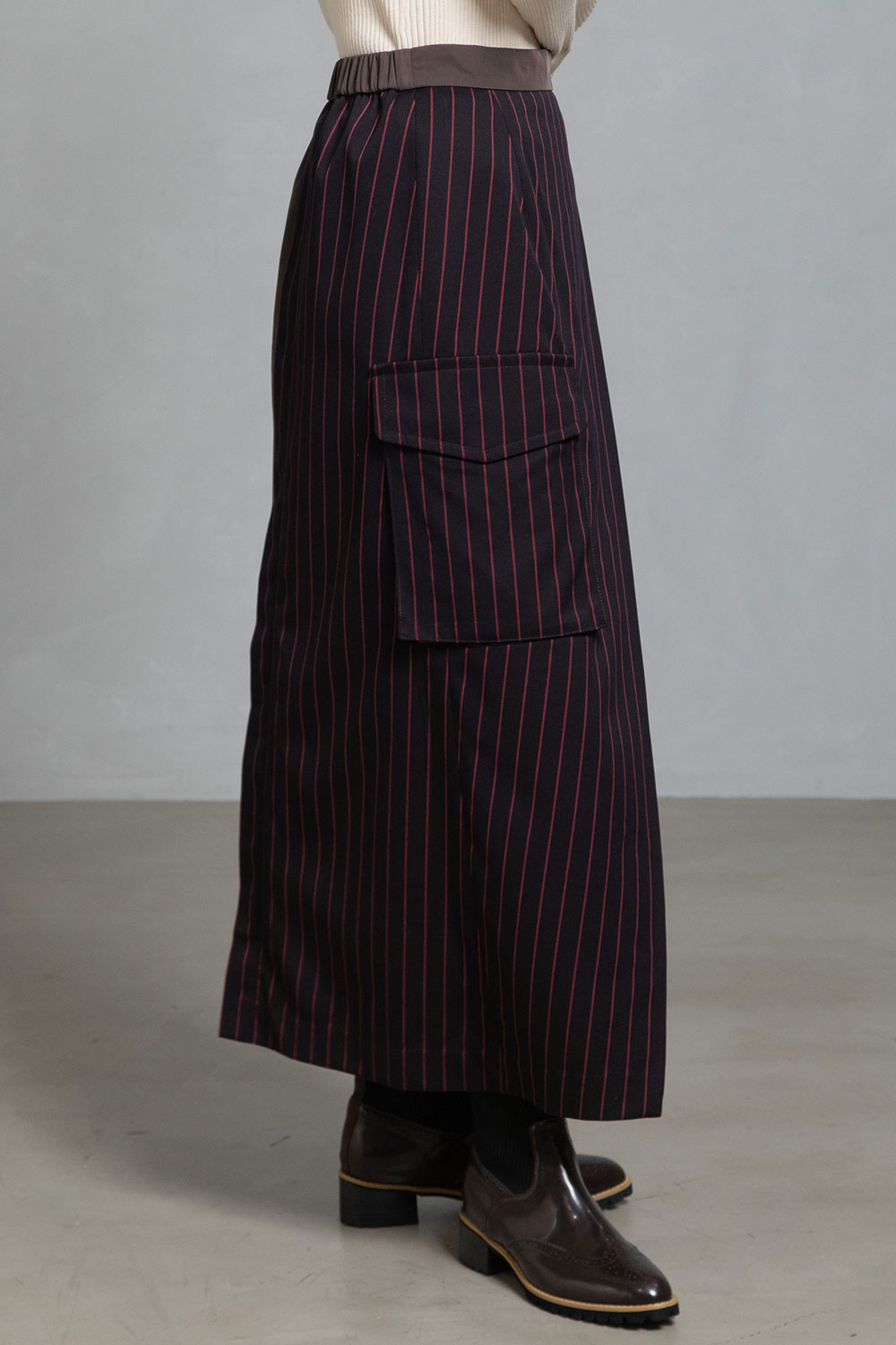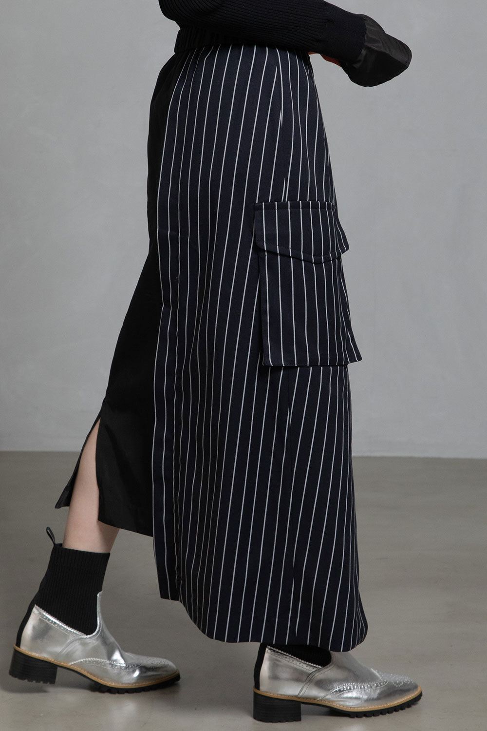 ツイル×ストライプ / チェックのコンビネーションデザインスカート