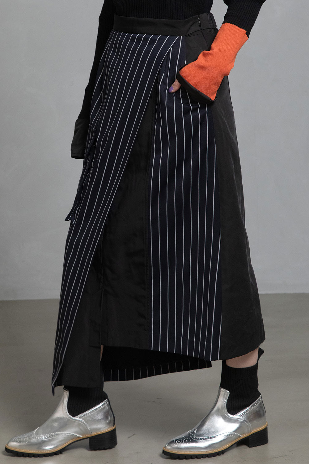 ■ツイルスカートの上に斜めにラップスカート風に重ね、アシンメトリーレイヤードデザイン