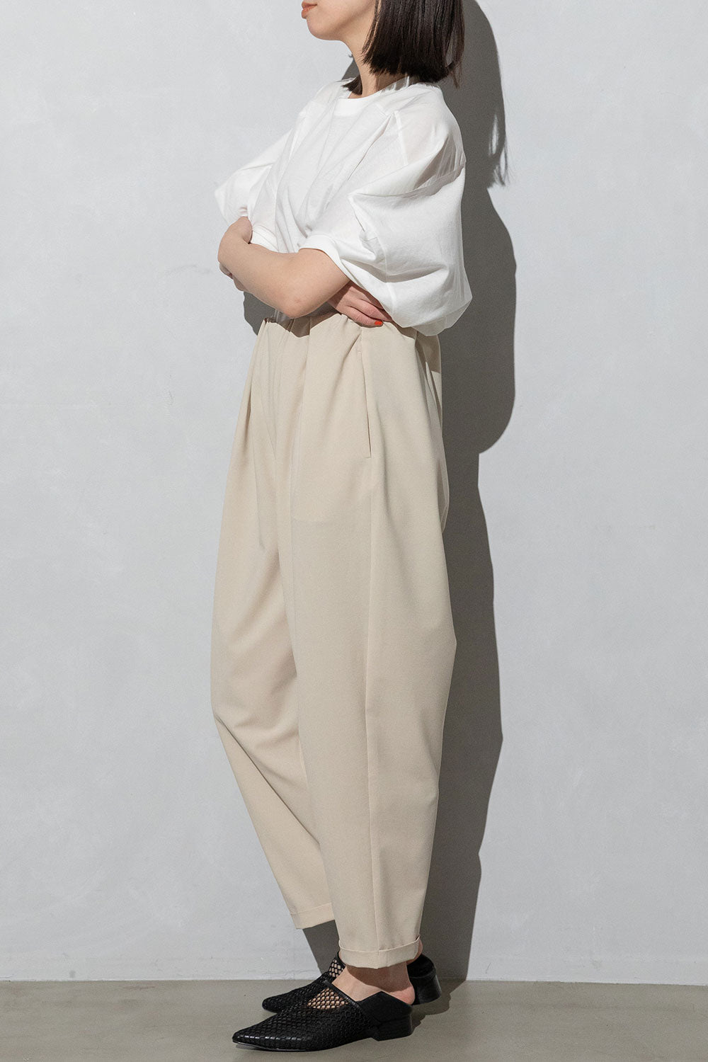 ・贅沢にギャザー+タックを入れることでイージーパンツでありながらエレガントなルックス