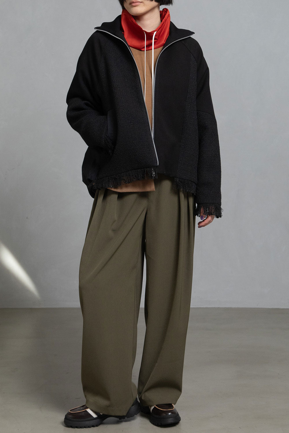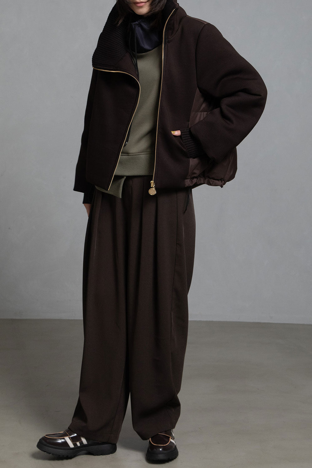 カーブがきつくないコクーンシルエットでスタイリングしやすいアイテムです。