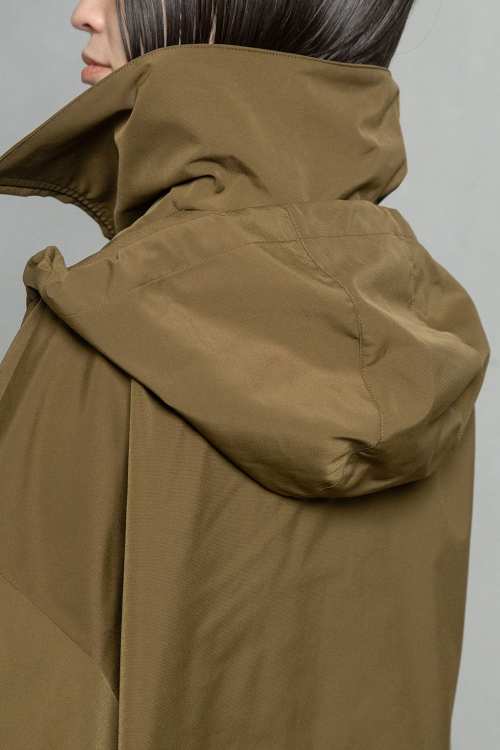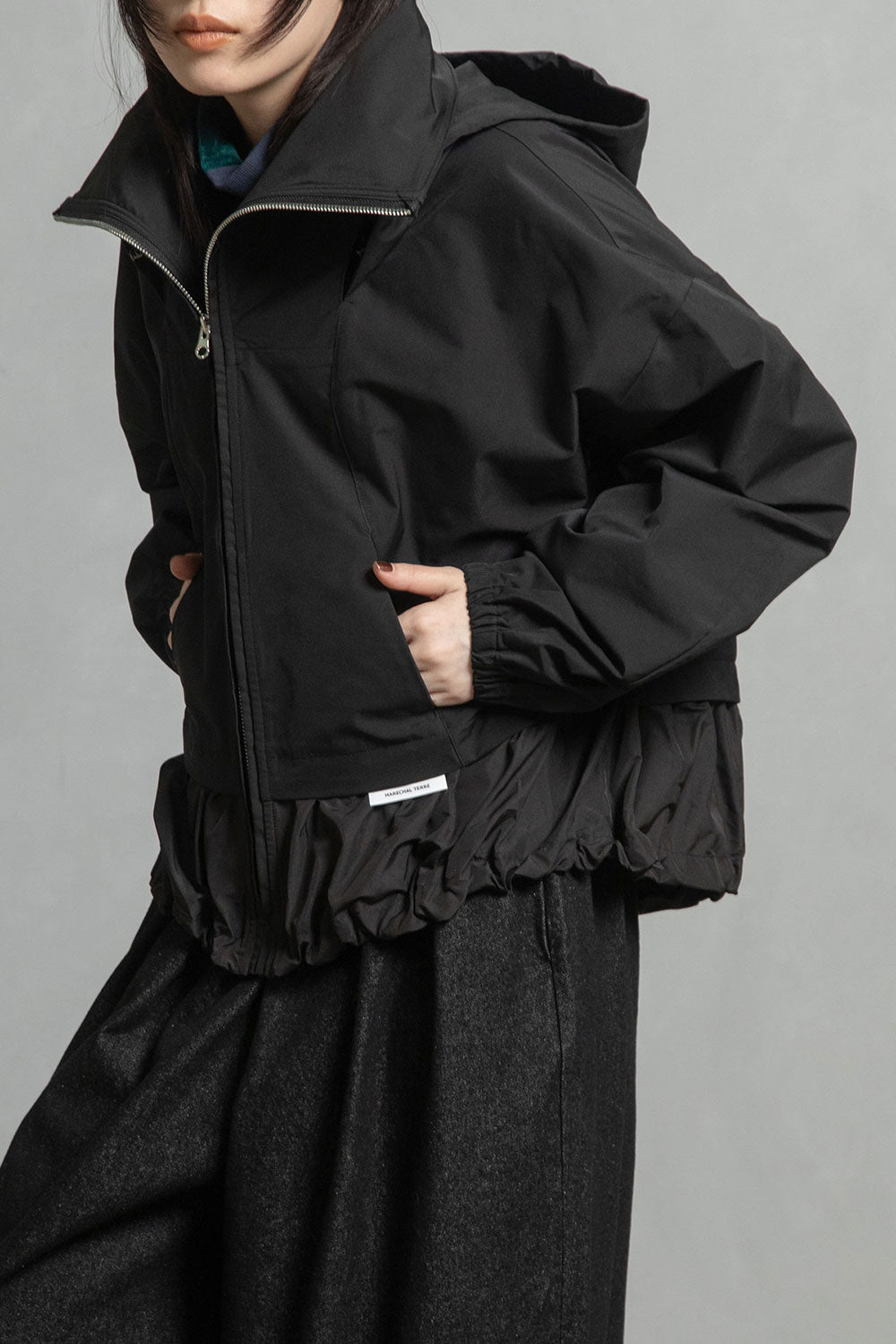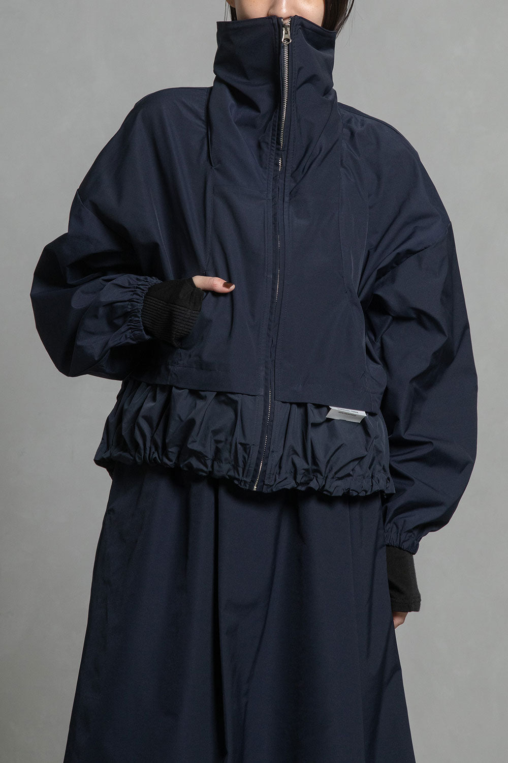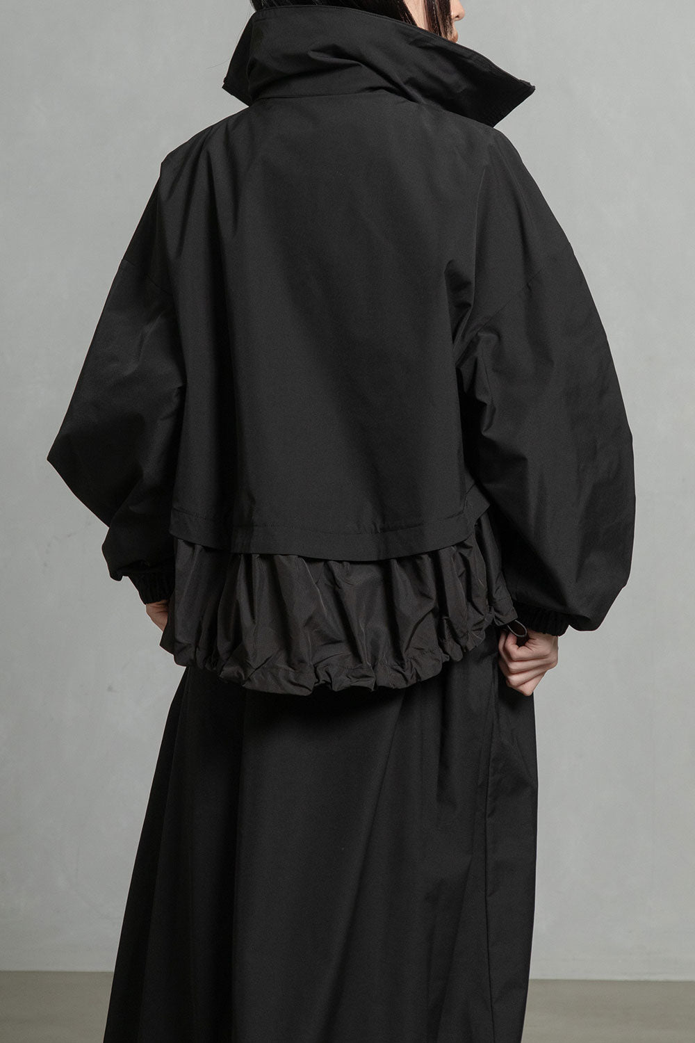 ■高さのあるスタンド衿+収納できるフード衿