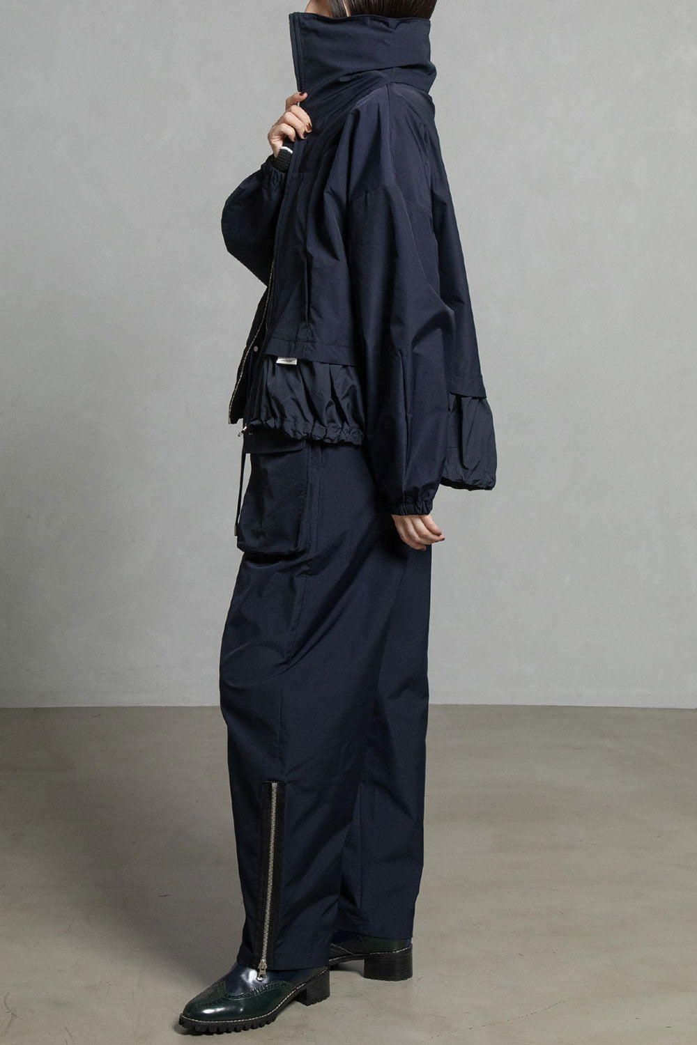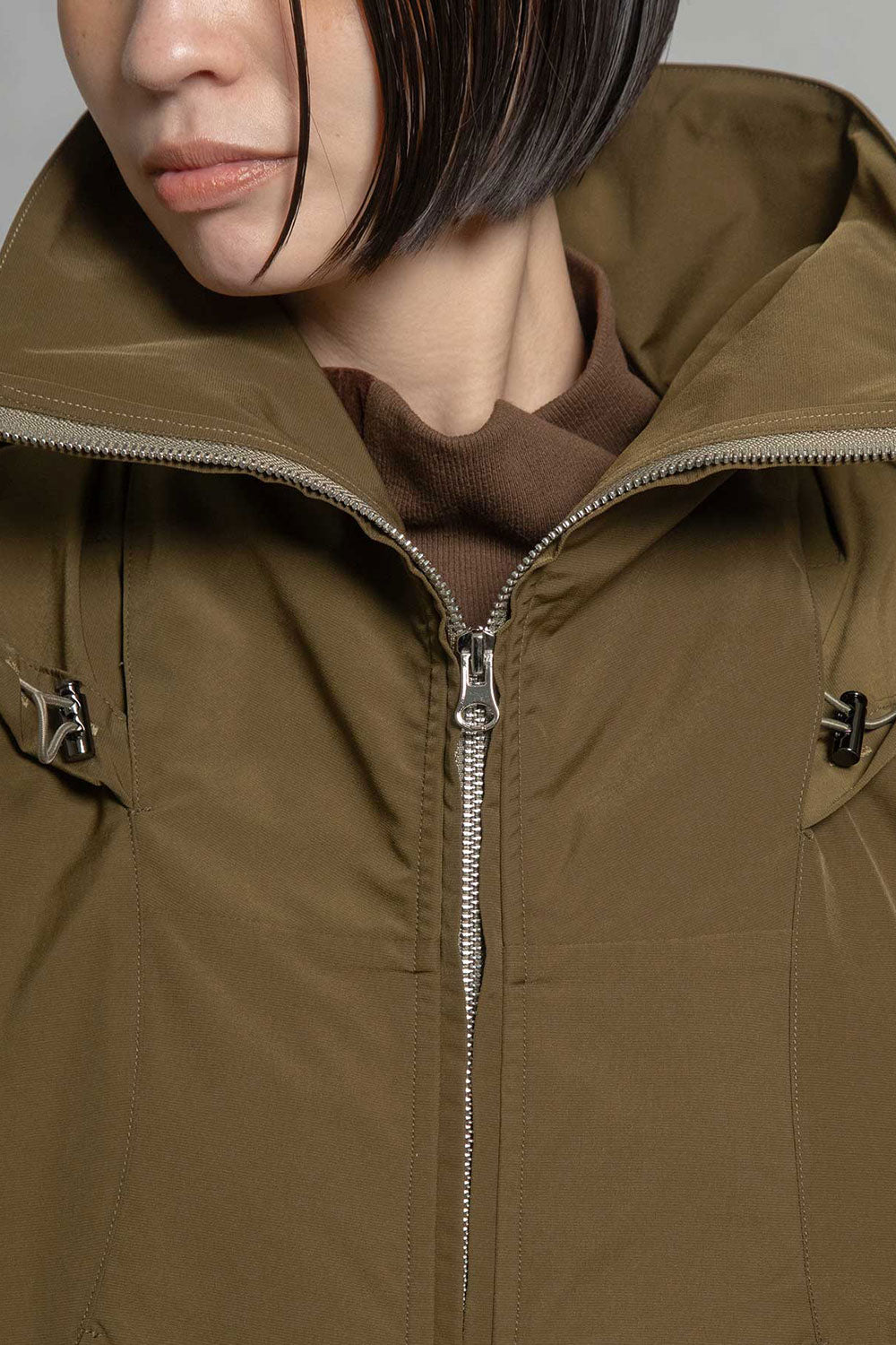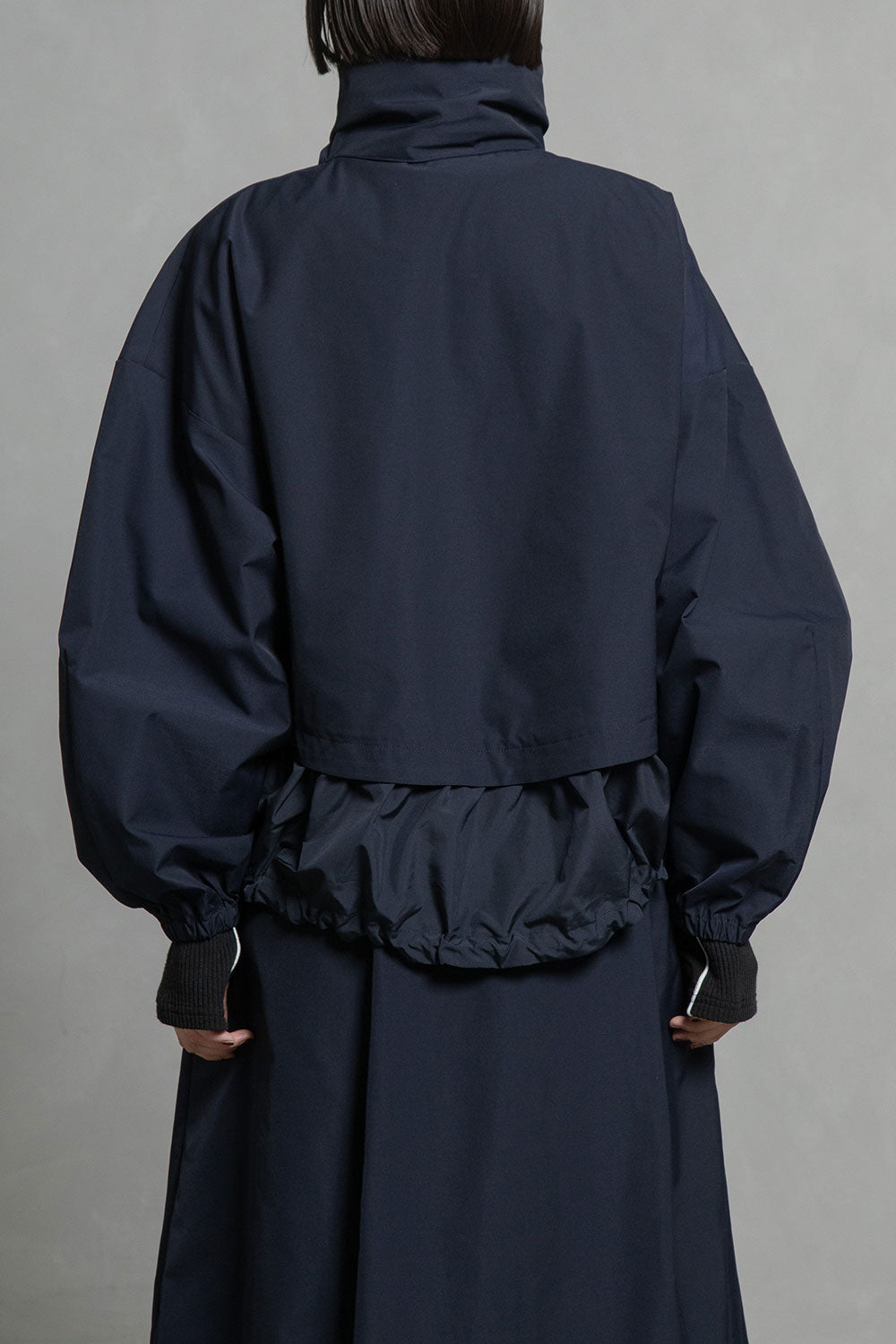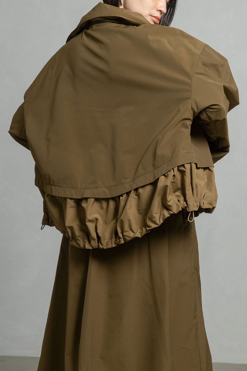 ■高さのあるスタンド衿+収納できるフード衿