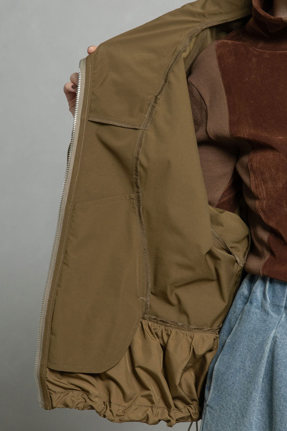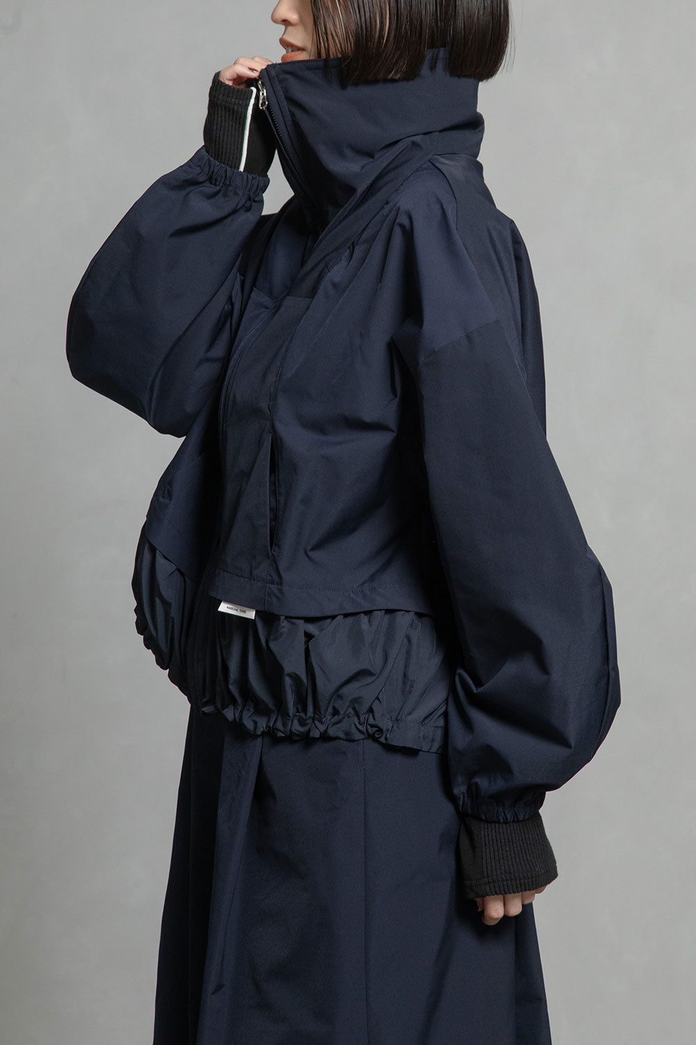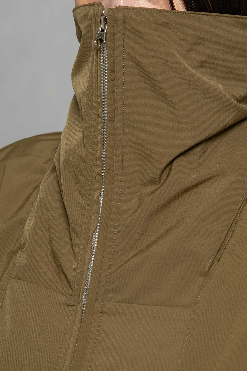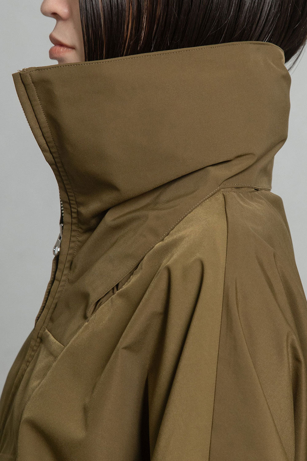 ■高さのあるスタンド衿+収納できるフード衿
