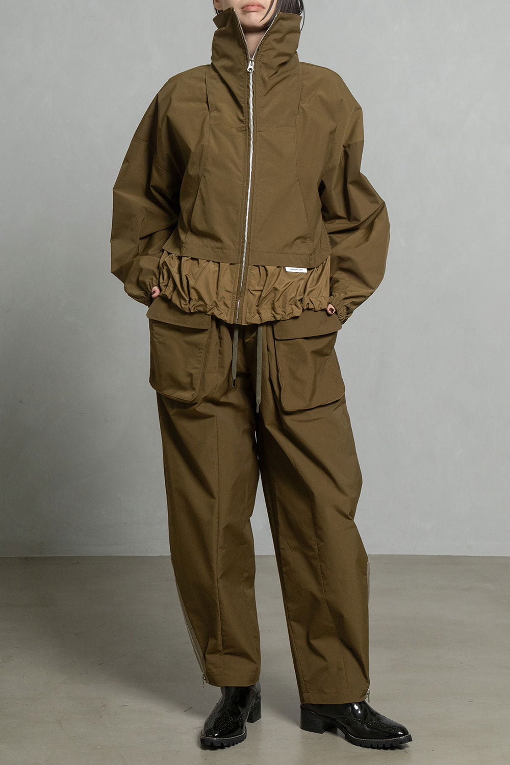 同素材のボトムとセットアップ着用が可能