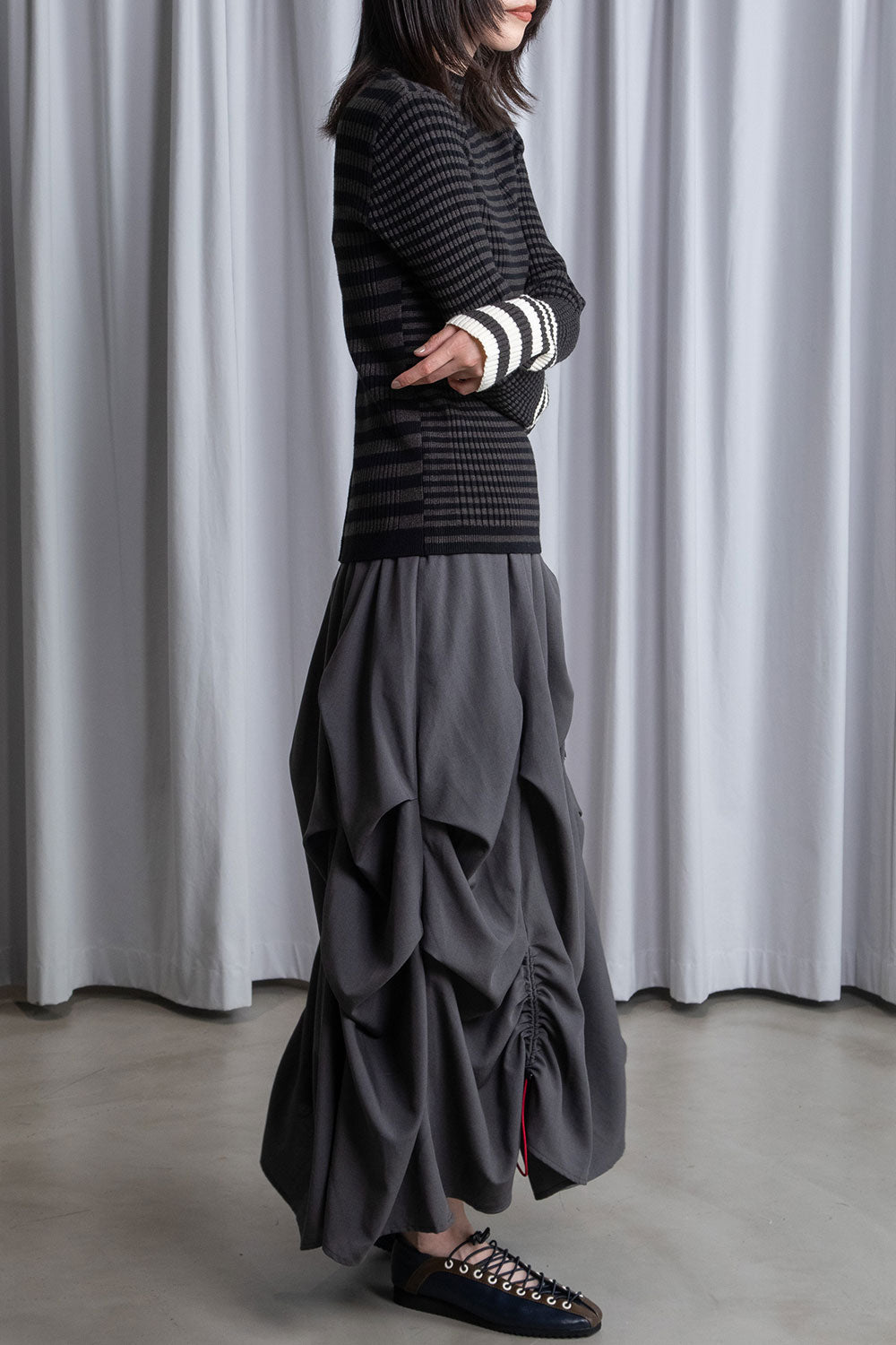 違うピッチのボーダーを2枚重ね着しているようなレイヤードデザイン