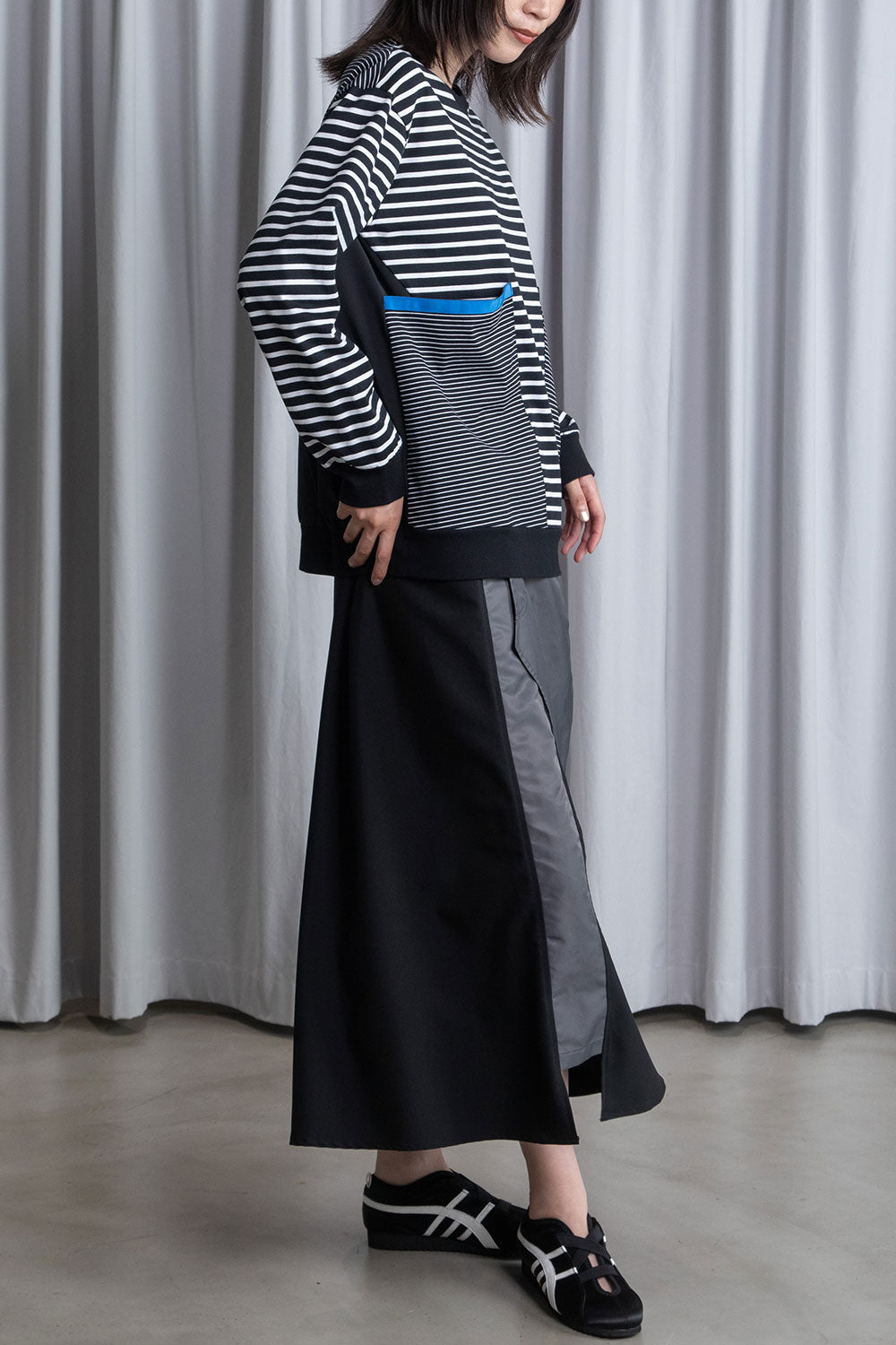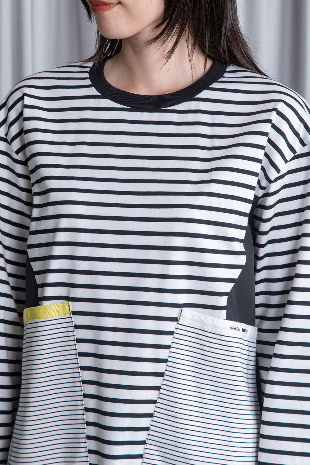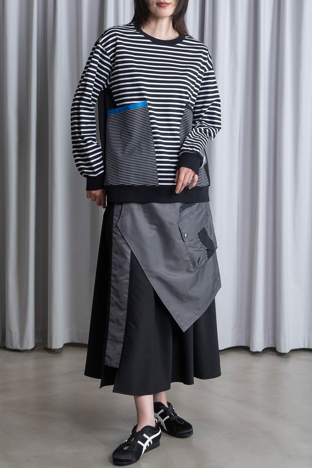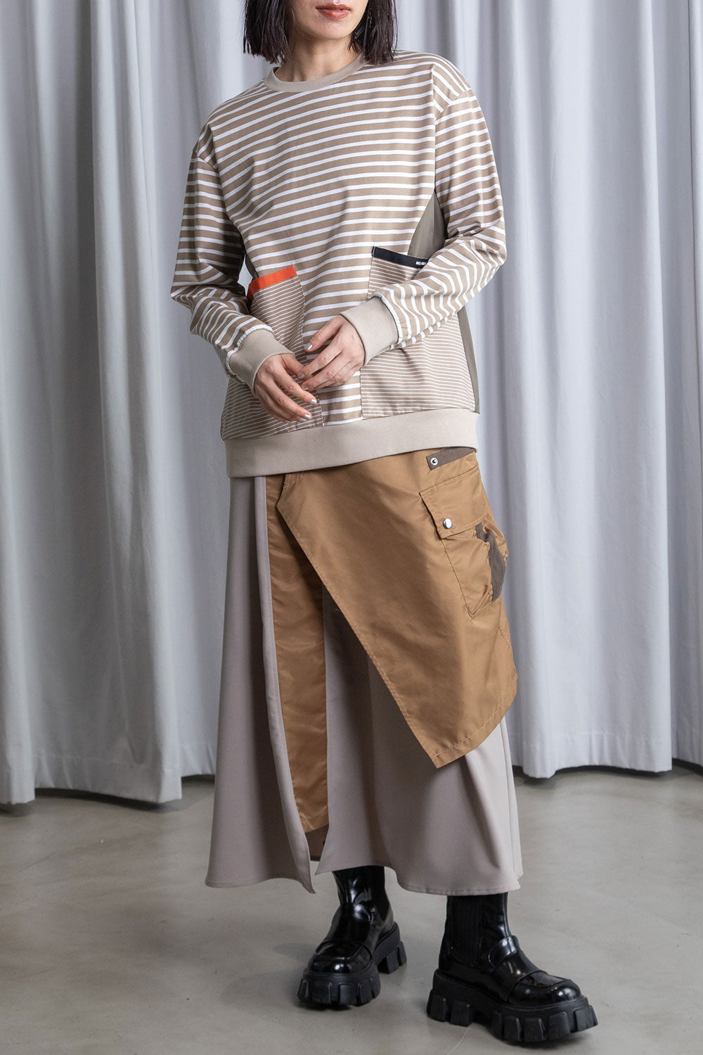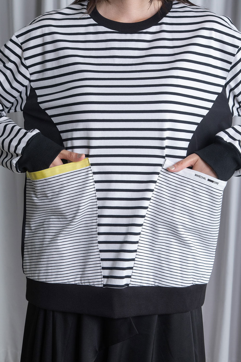 ベーシックなシルエットに、ポケットデザインが映える長袖トップス。ボーダーや配色、異素材使いなどディテールにこだわり、着る人の感性を引き立てます。ゆったりとしたサイズ感で、日常に寄り添う着心地も魅力。シンプルなボトムに合わせるだけで、スタイリングが完成する一枚です。