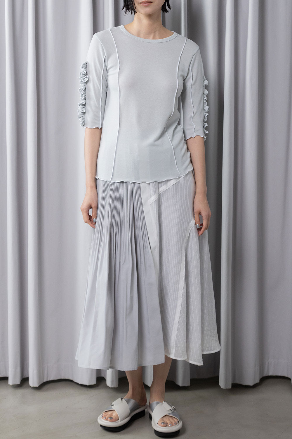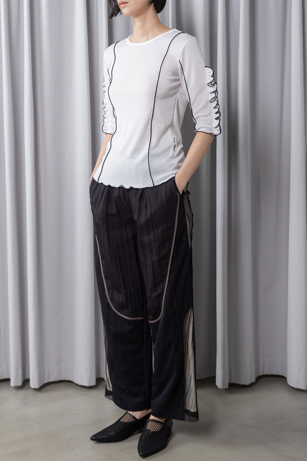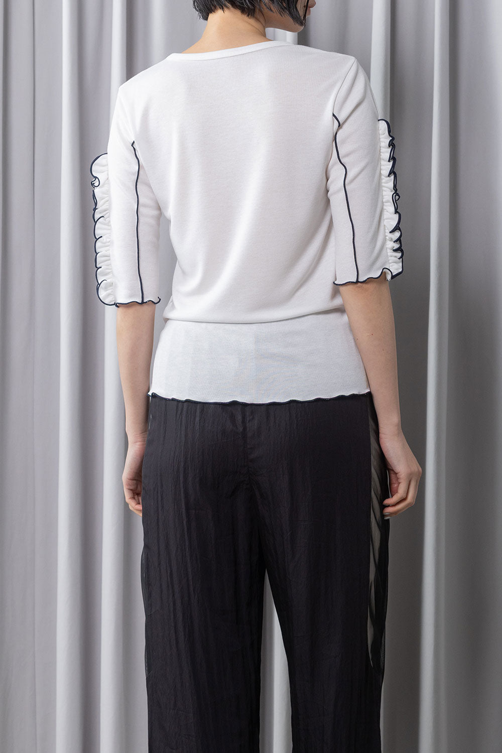 レイヤードも楽しめるフリル袖