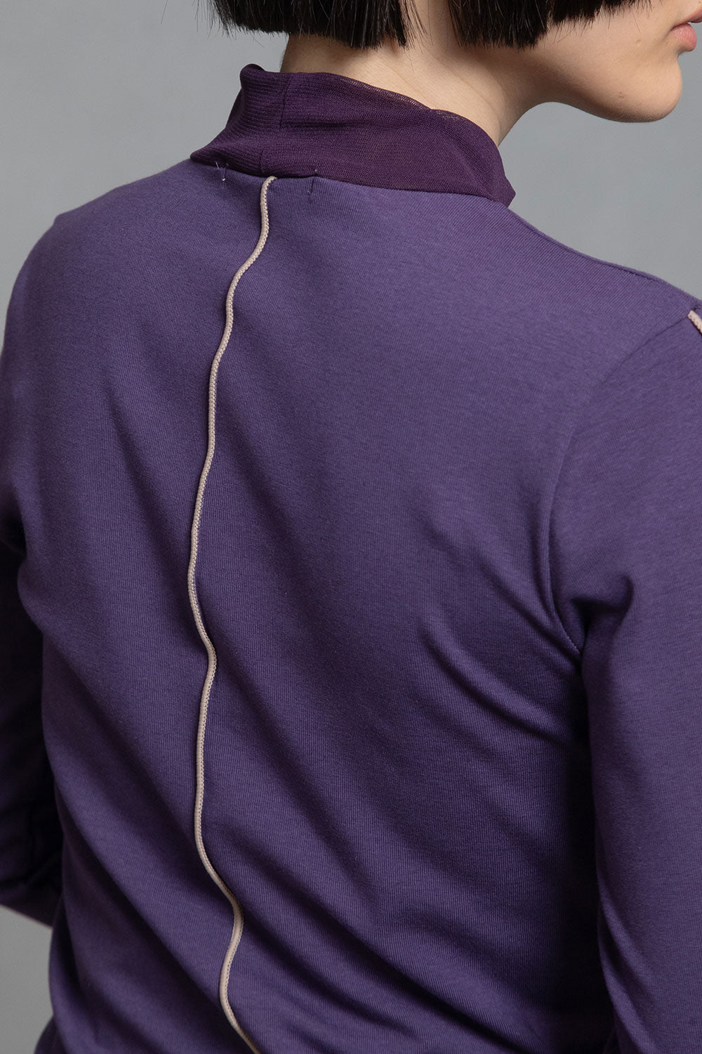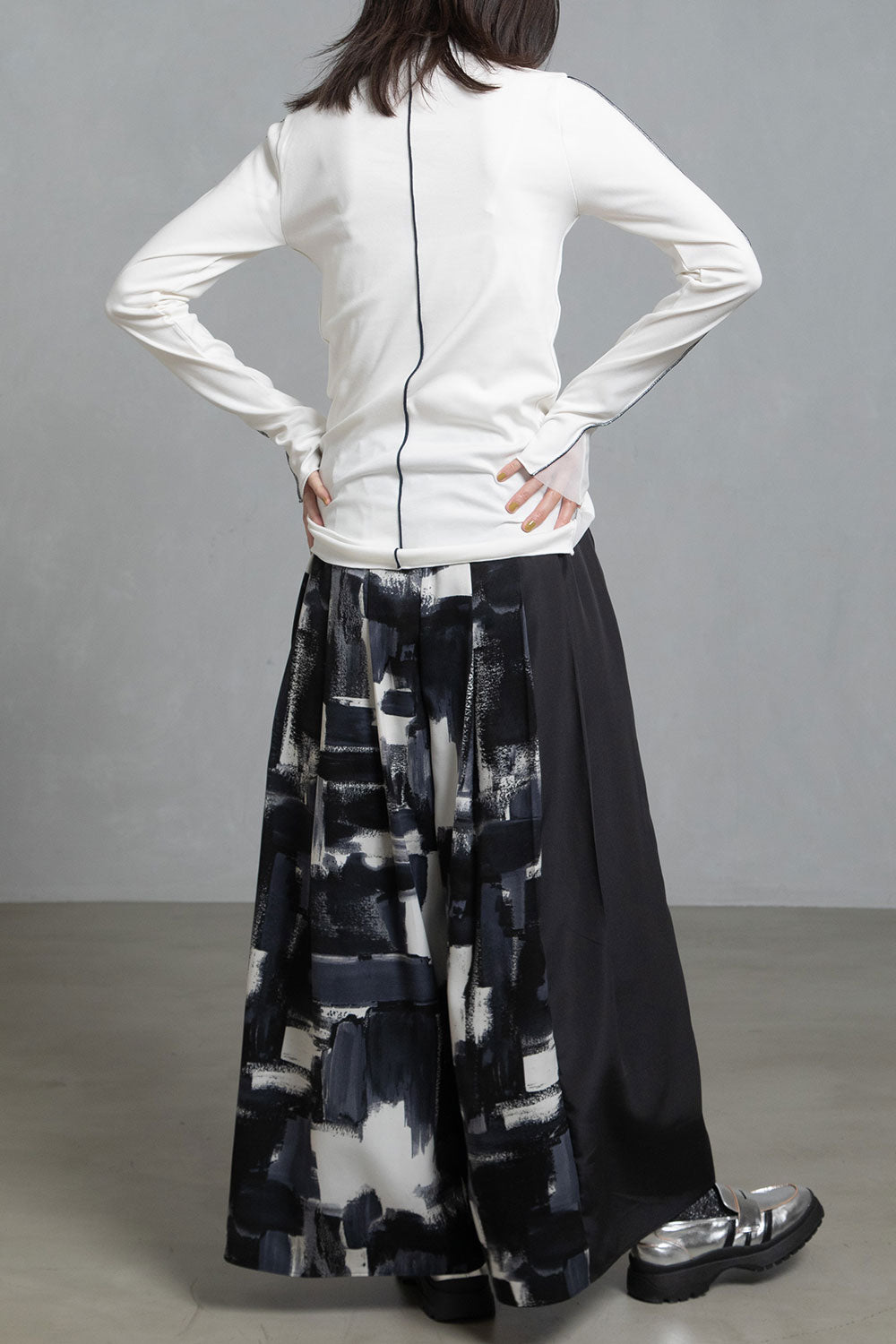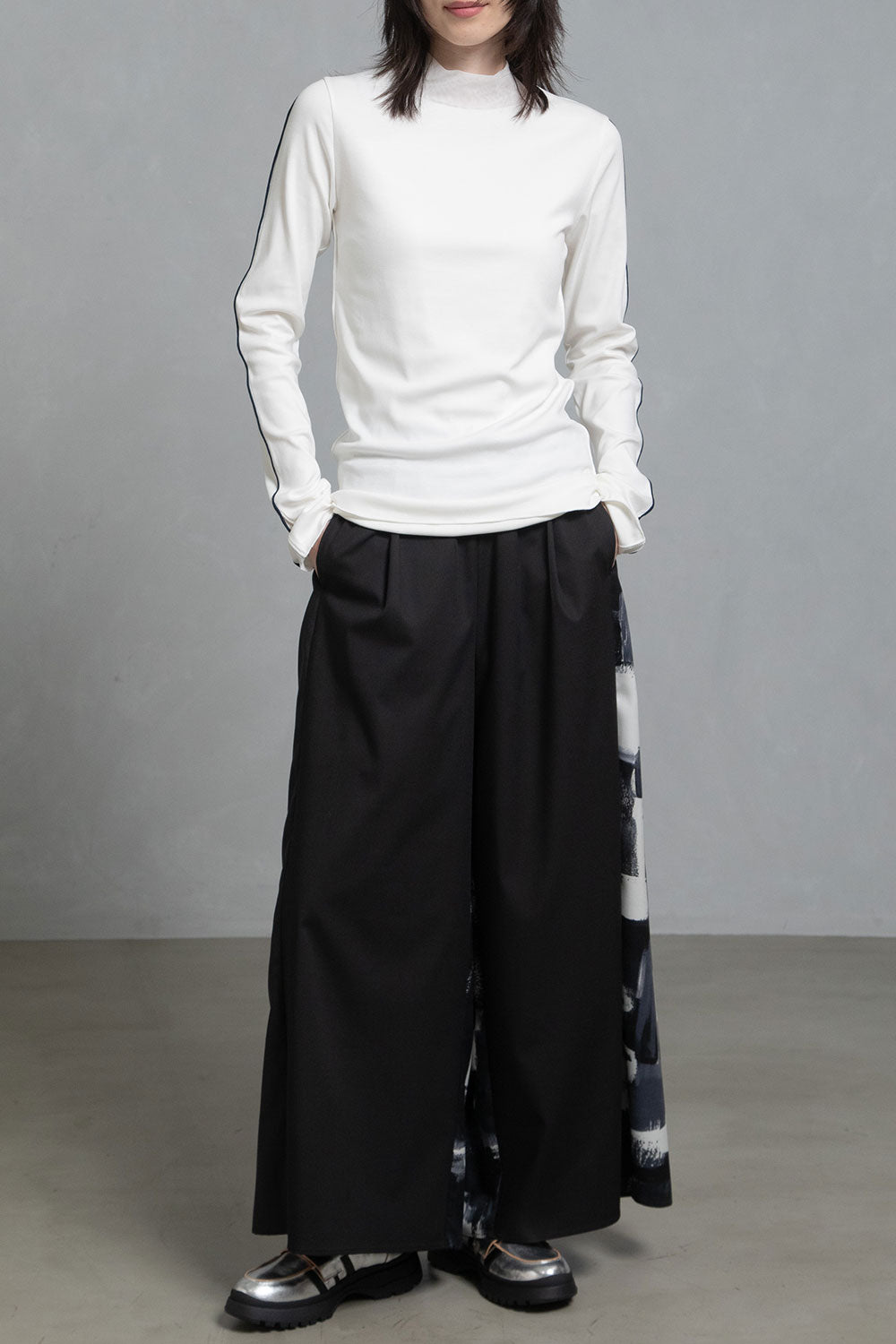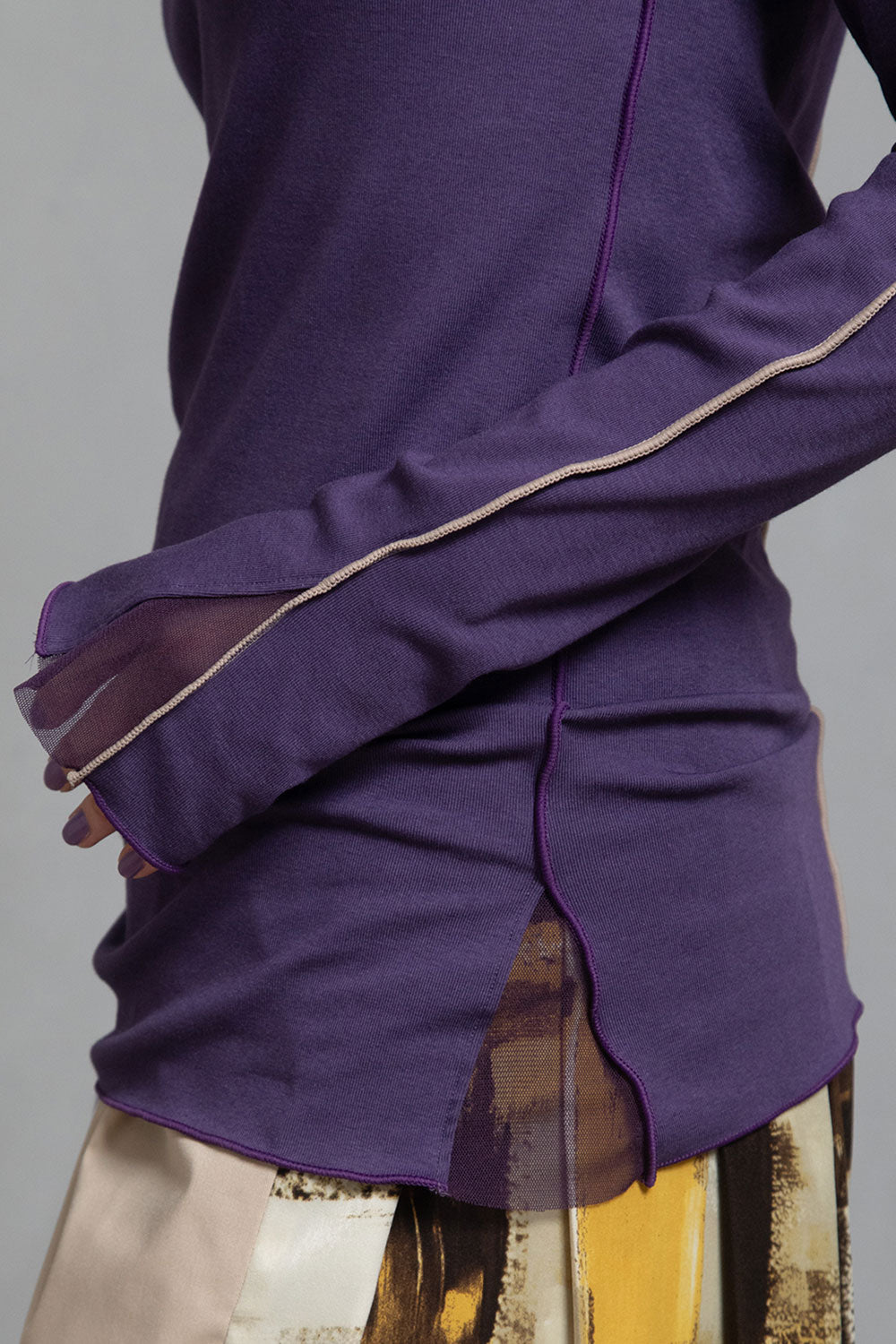 衿部分・袖口・裾サイドにあしらわれたチュール素材は、透け感がありながらも上品な印象。柔らかく空気を含んだような質感がフェミニンな表情です。