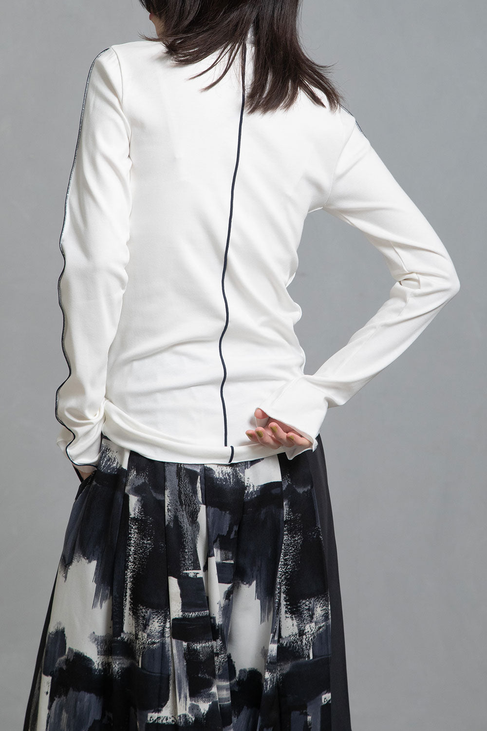 一枚でも、重ねても着られる万能さは、春~秋はメインに、冬場はカーディガンやニットとのレイヤードスタイルにも活躍。季節を問わず使えるアイテムです。