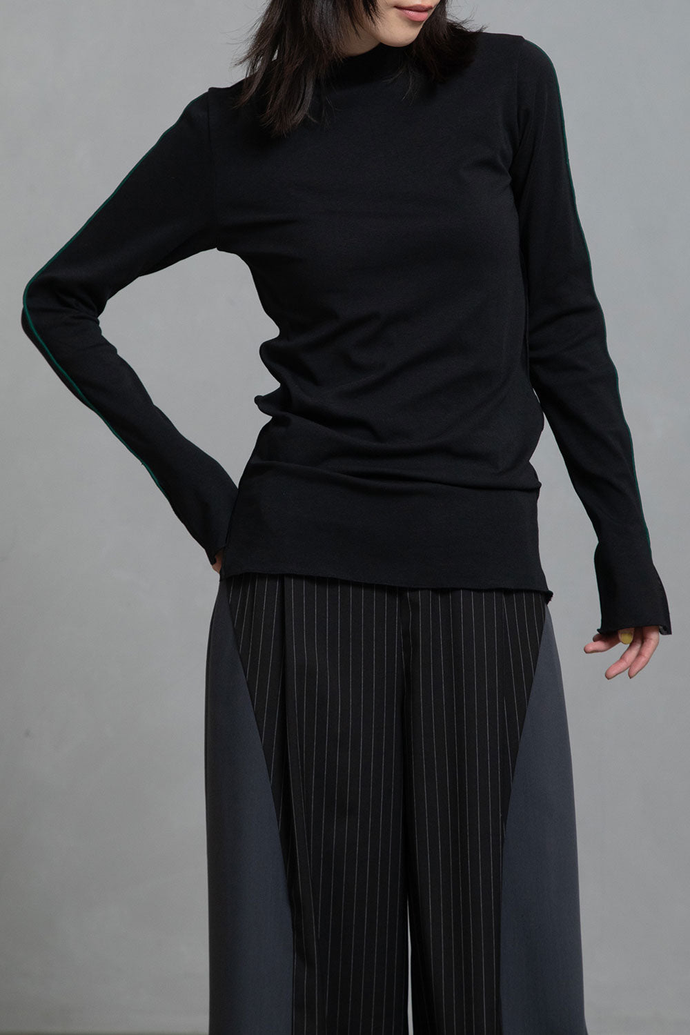 ・従来のフライス編みをアップグレードするため、ベア糸を挿入した機械を選定コンパクトで上品な編み上り