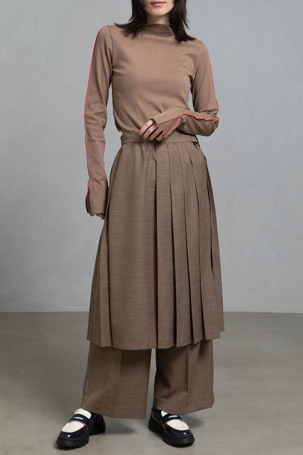 ・縦方向にニット目が際立つことからセーター見えで上品な印象の素材