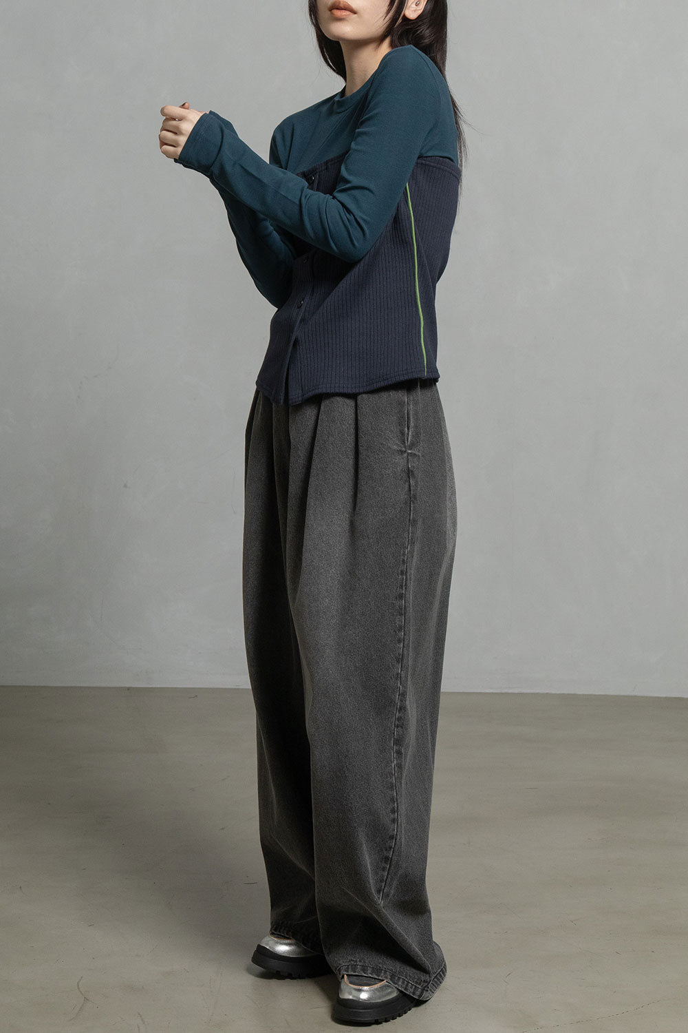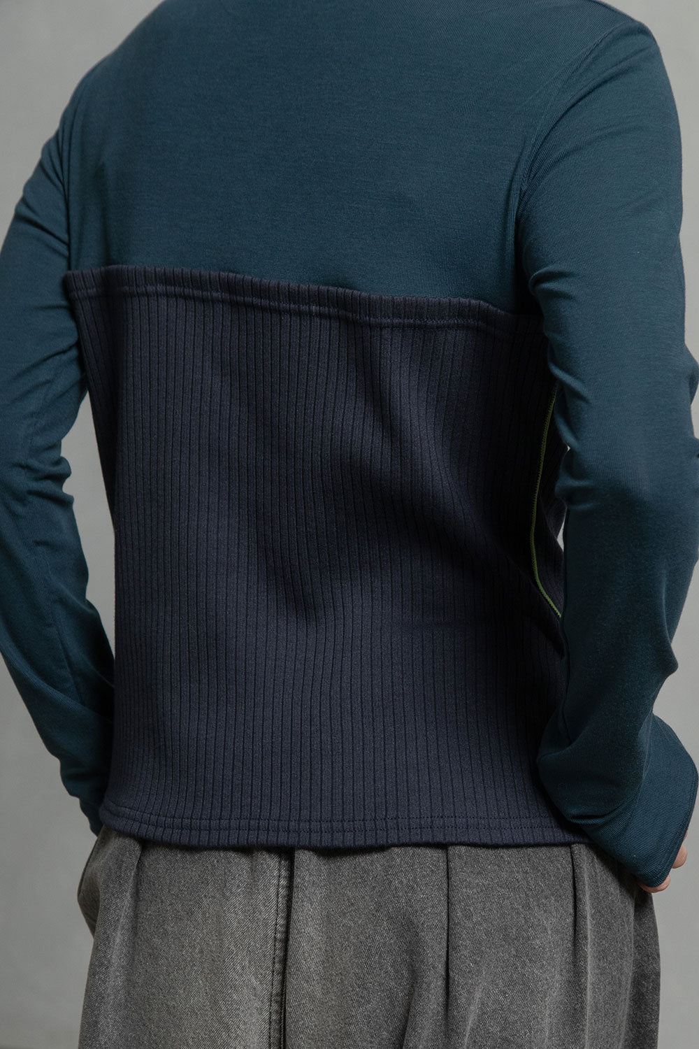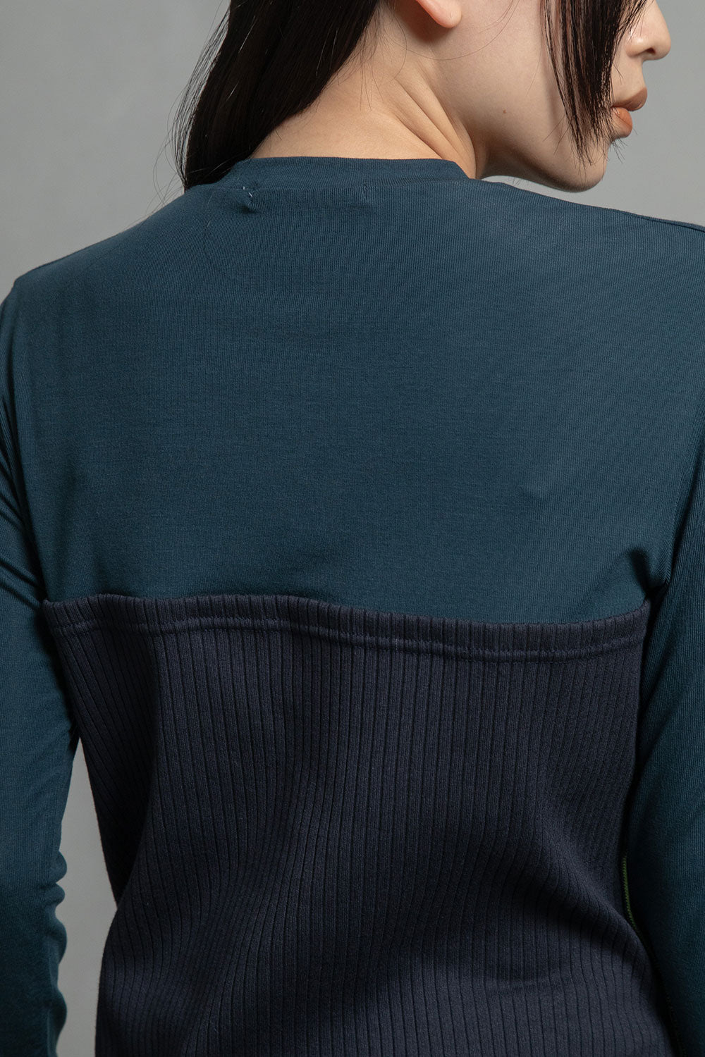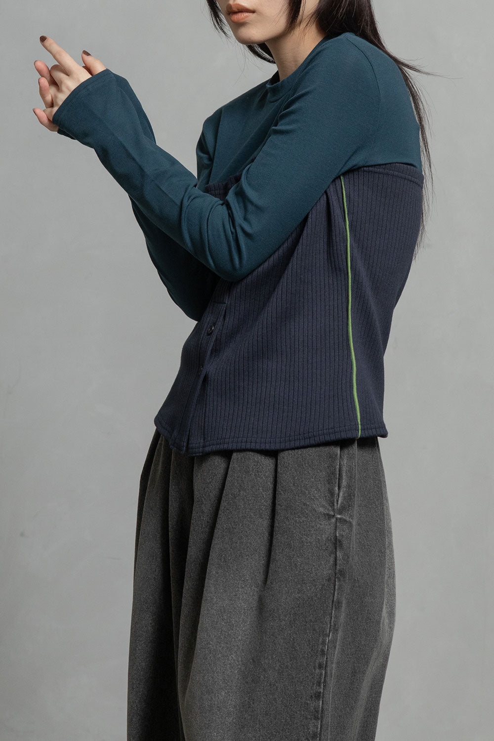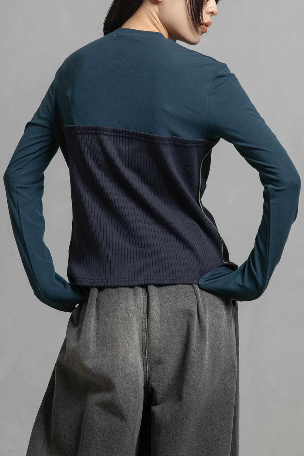 ・カジュアルな印象を与えるリブ組織を綺麗目な印象を与える素材