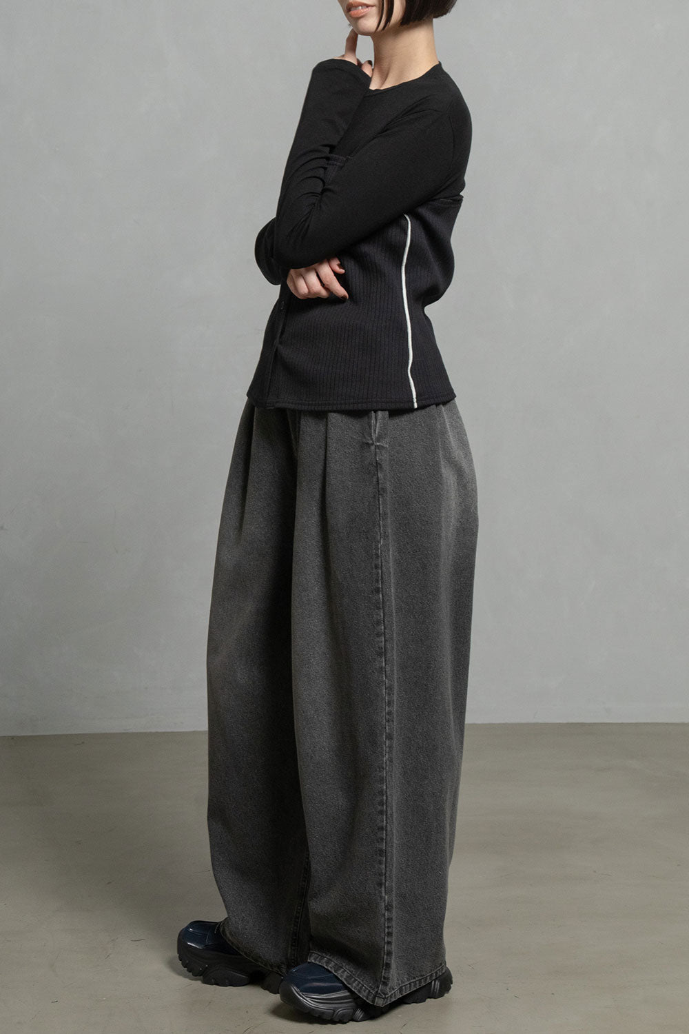 ■立体感のある厚めのワイドテレコは身体のラインをひろいにくい