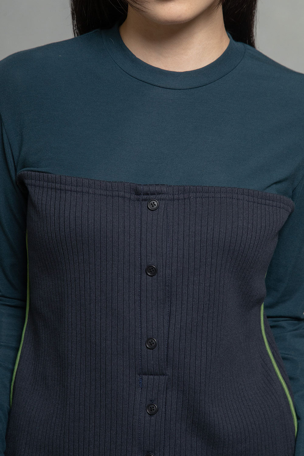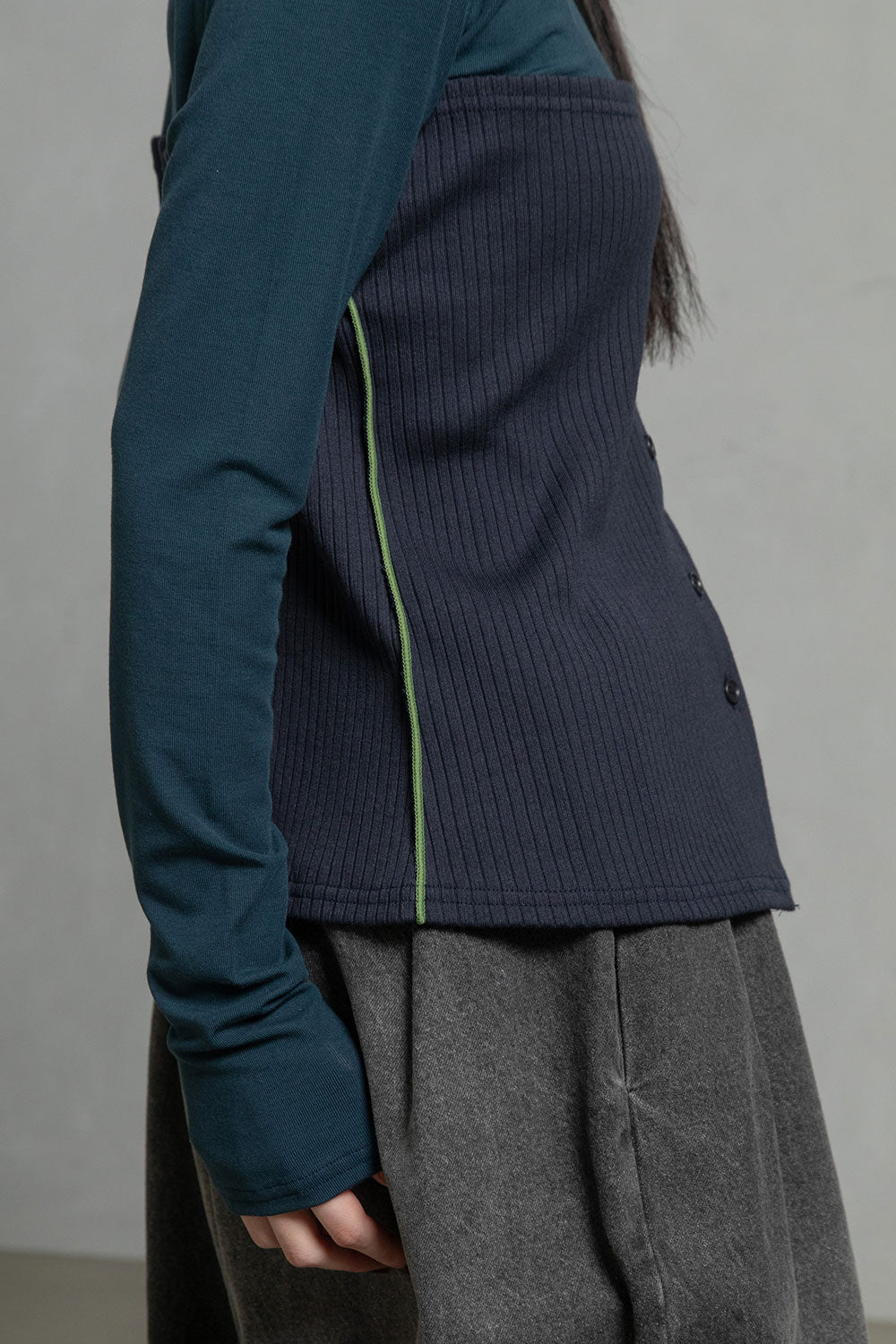 ■ベアフライスロンTに、ワイドテレコのベアトップを重ね着したような、レイヤードデザイン