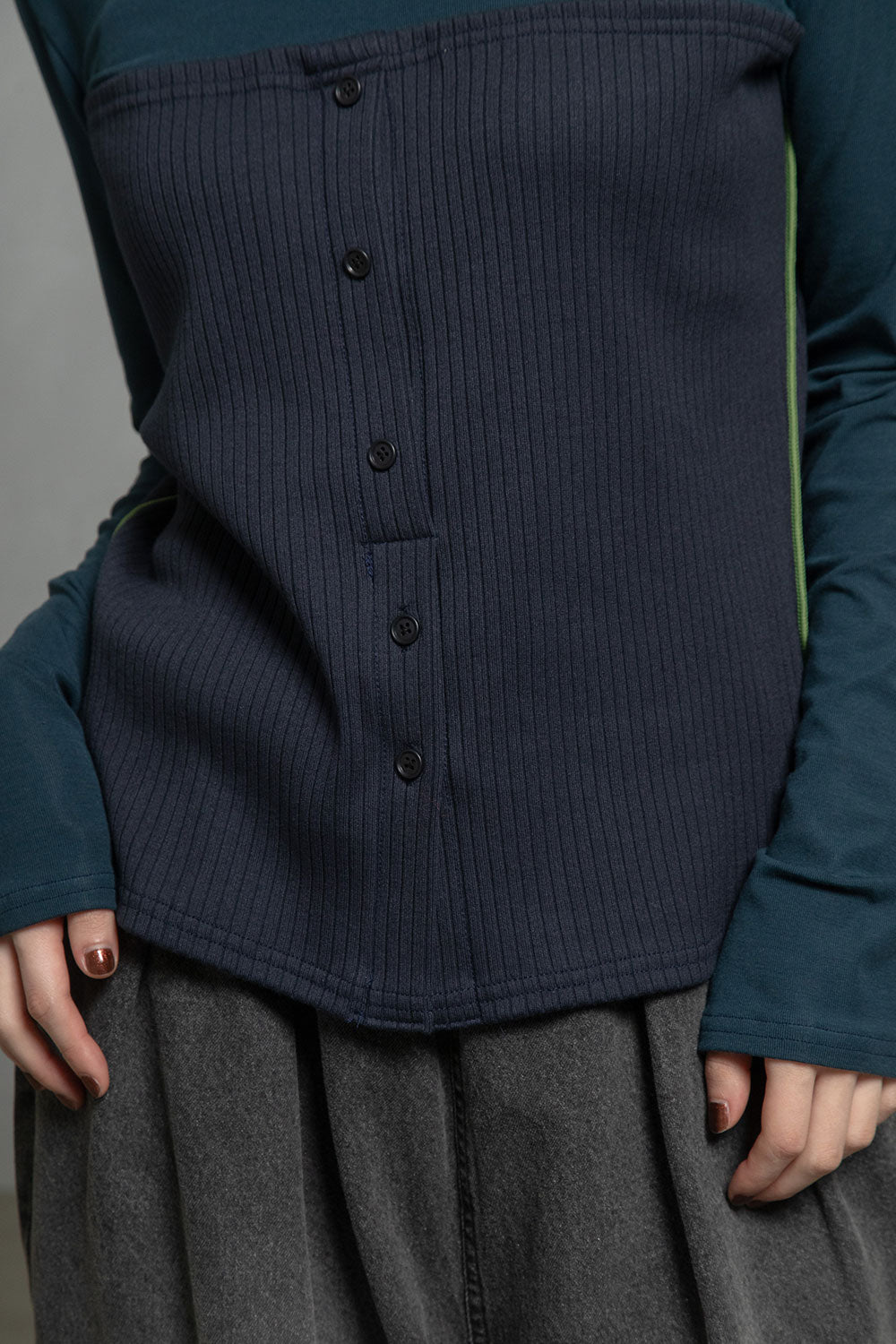 ■フロントのボタンは、上から3つ目までは飾りボタン、下2つはボタン開き
