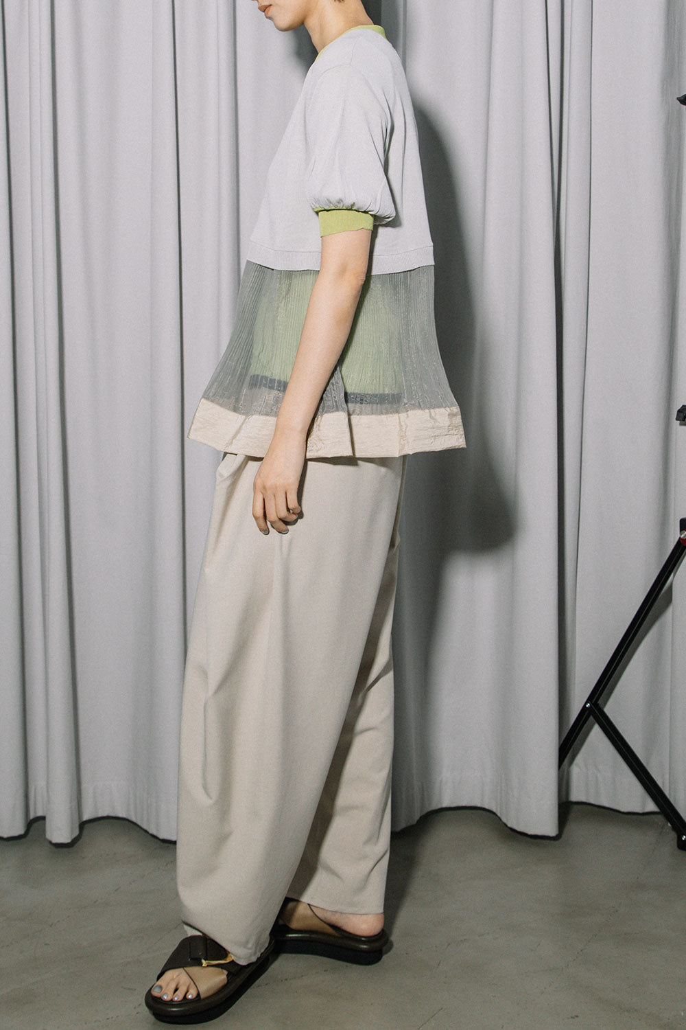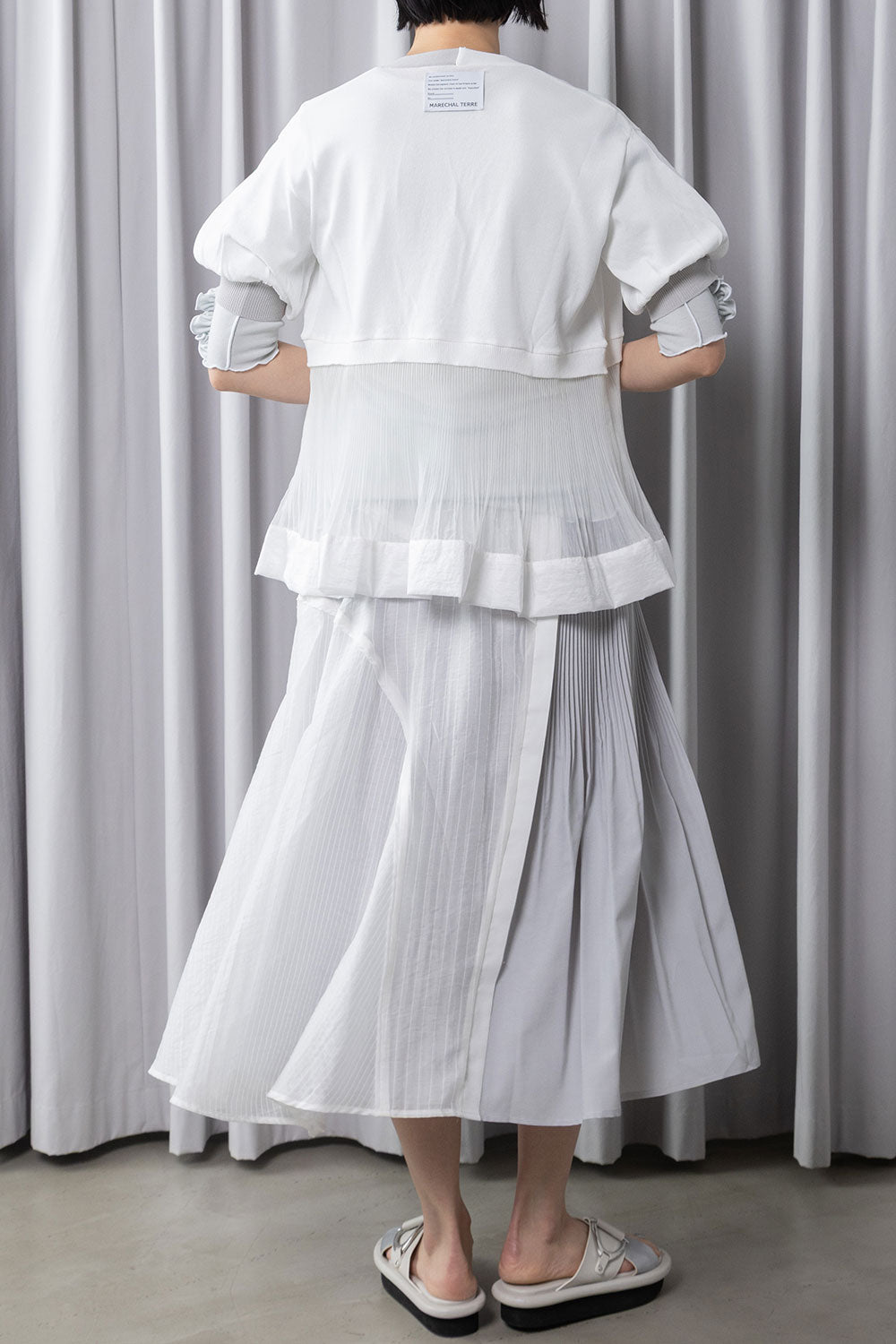 裾のプリーツがさりげなく透ける涼しげな素材感