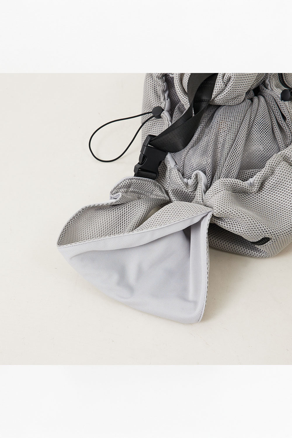 ・通気性のあるメッシュの口元+しっかり閉じれる巾着の開け口仕様