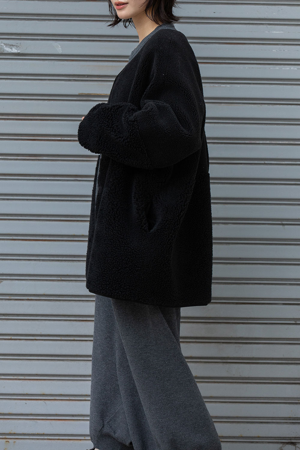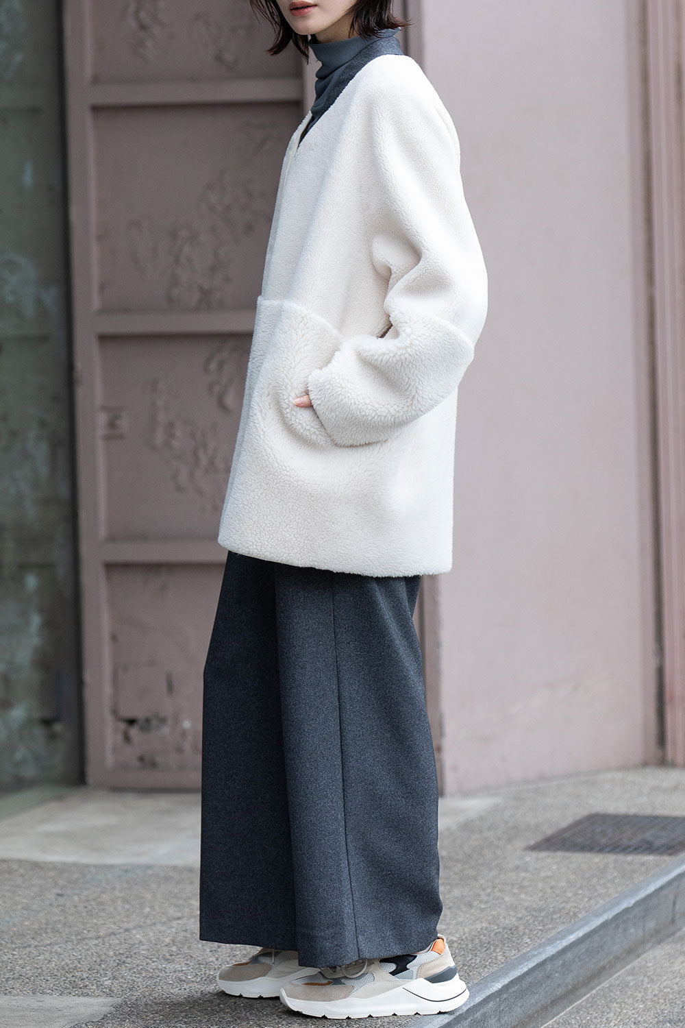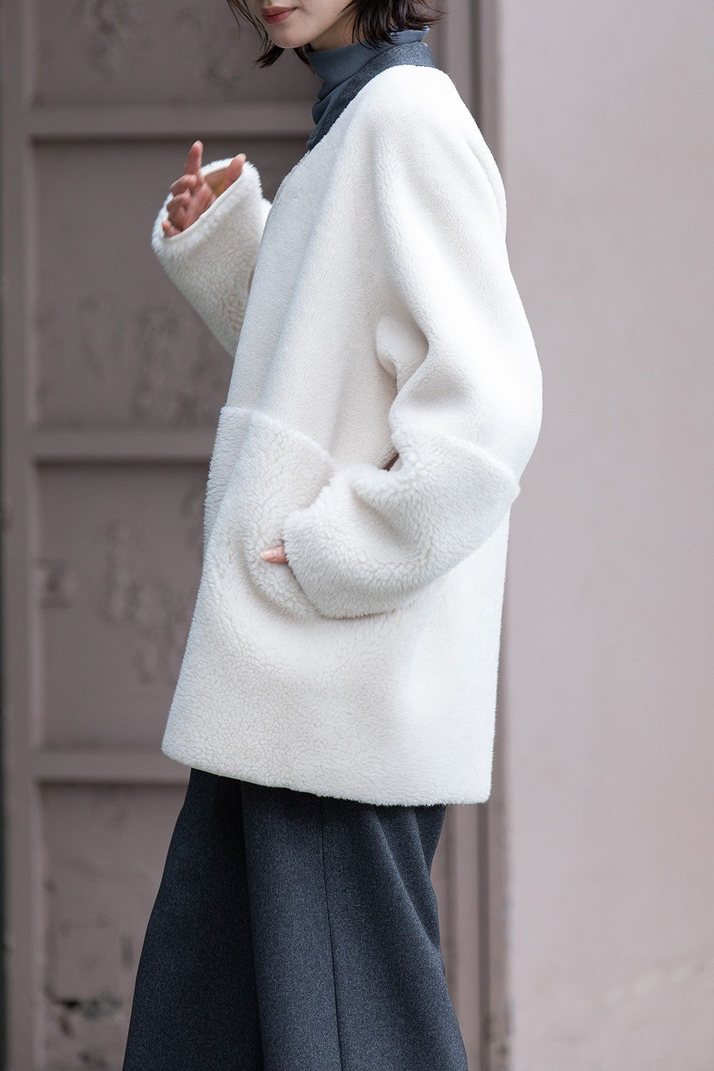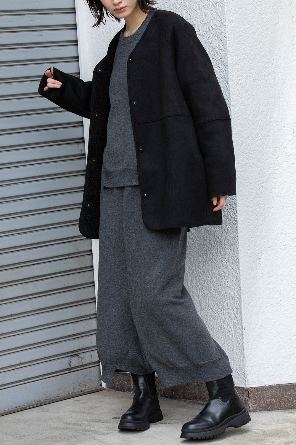 Munich ウールシープボアムートンリバーシブルノーカラーコート【MN252C56】