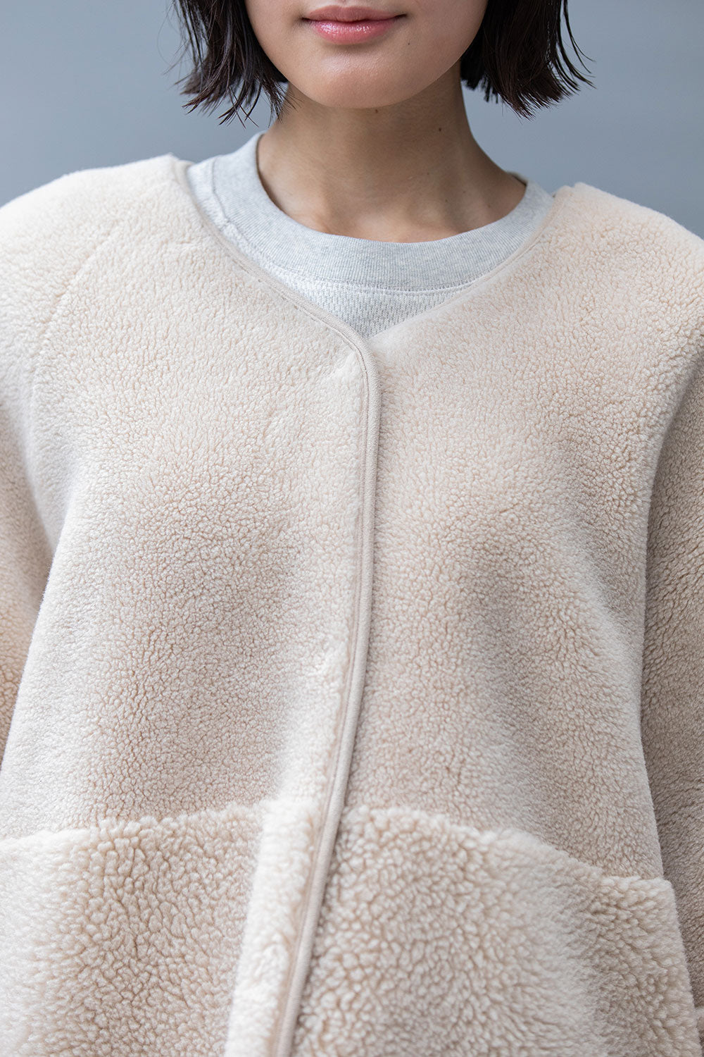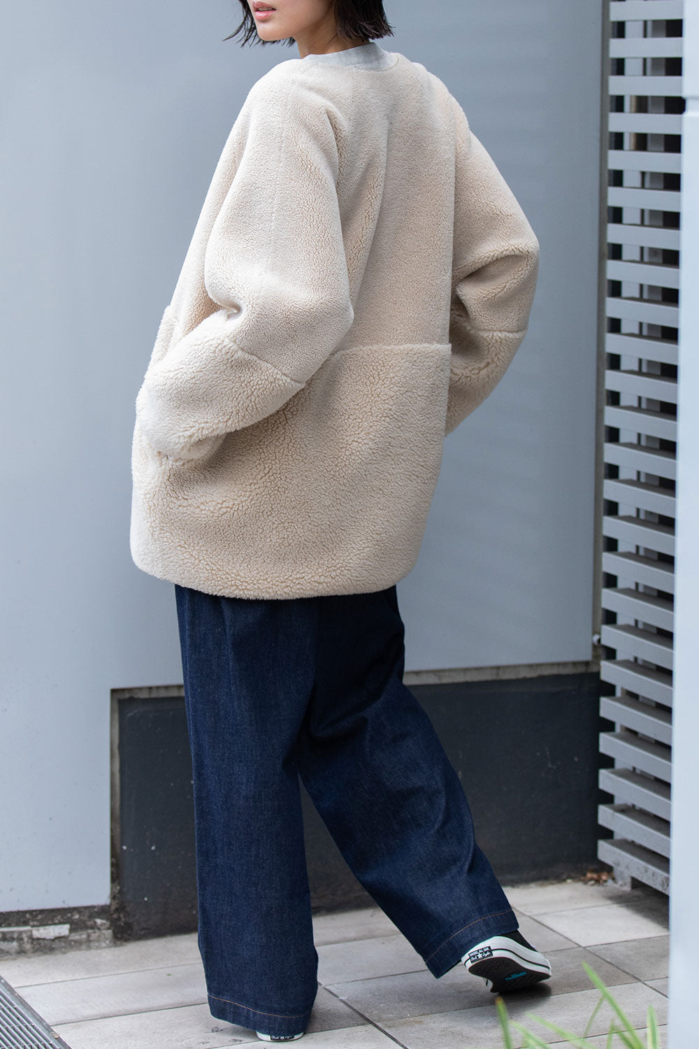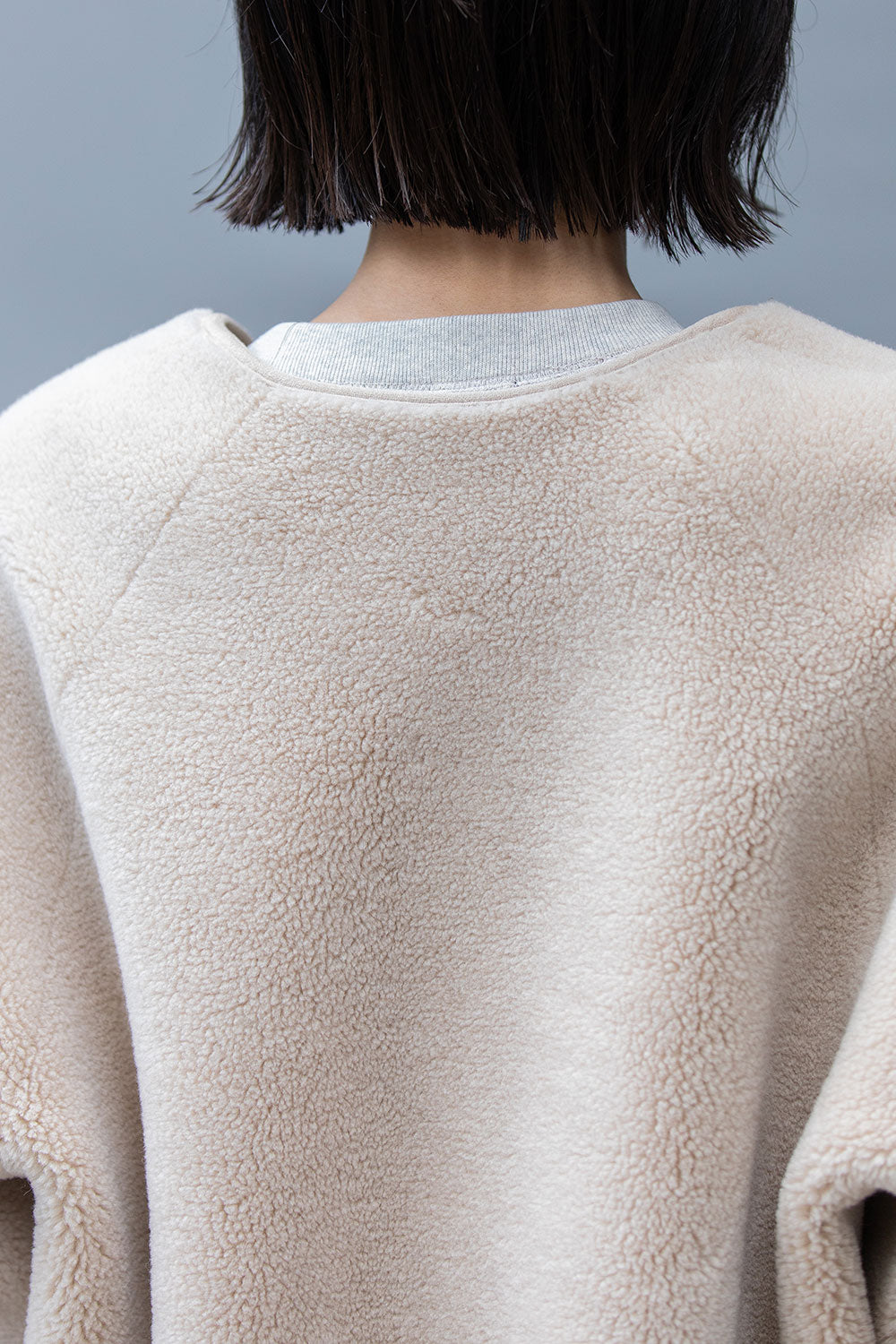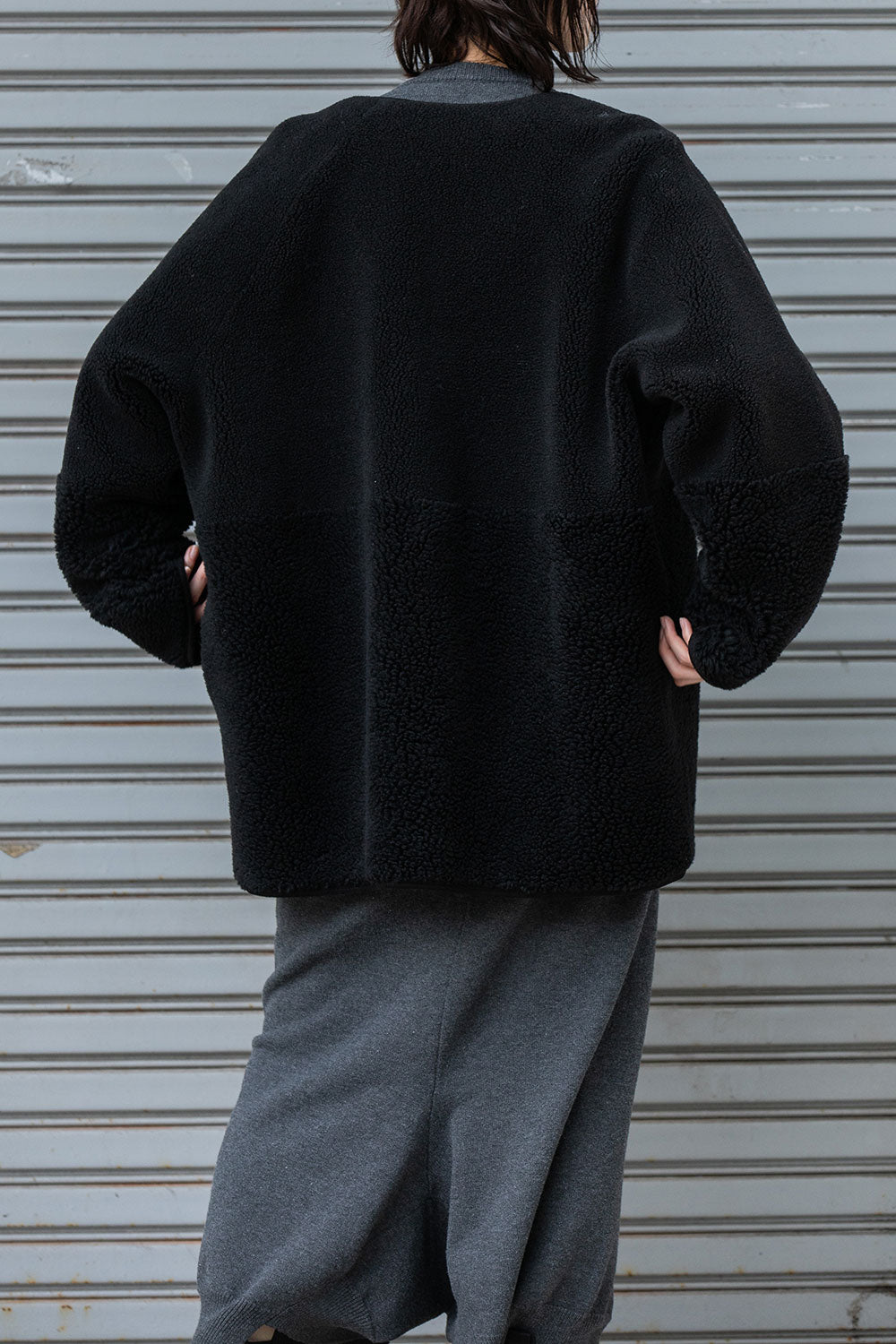 ボアの特徴である通気性は損なわれますが、より保温性が増すので真冬のアウターとして短い着丈でも十分な防寒性を備えています。