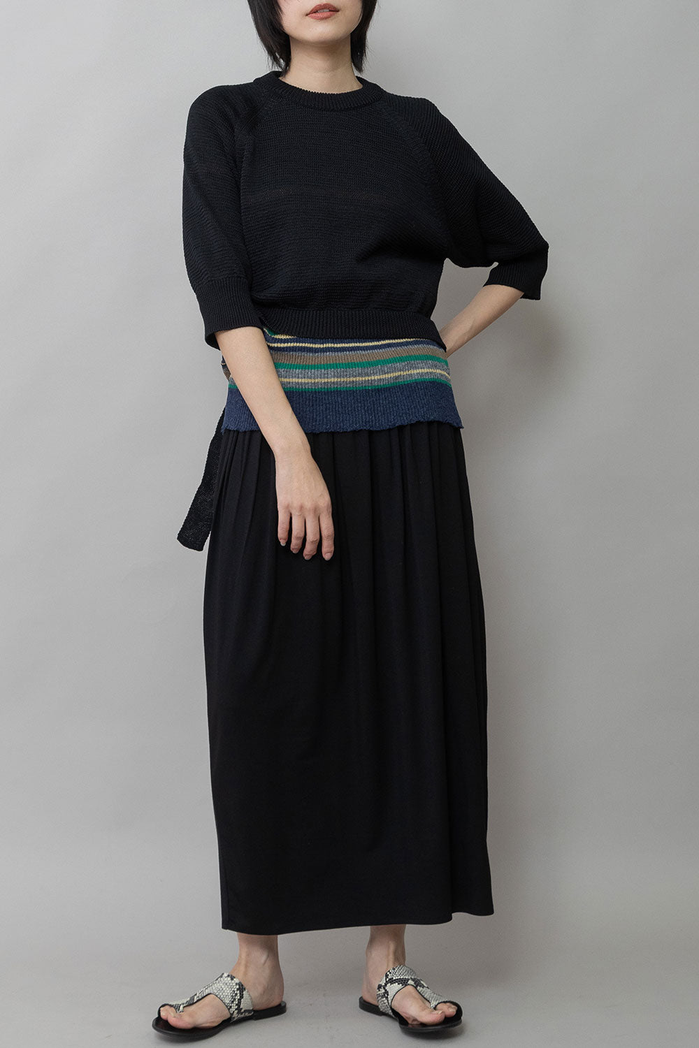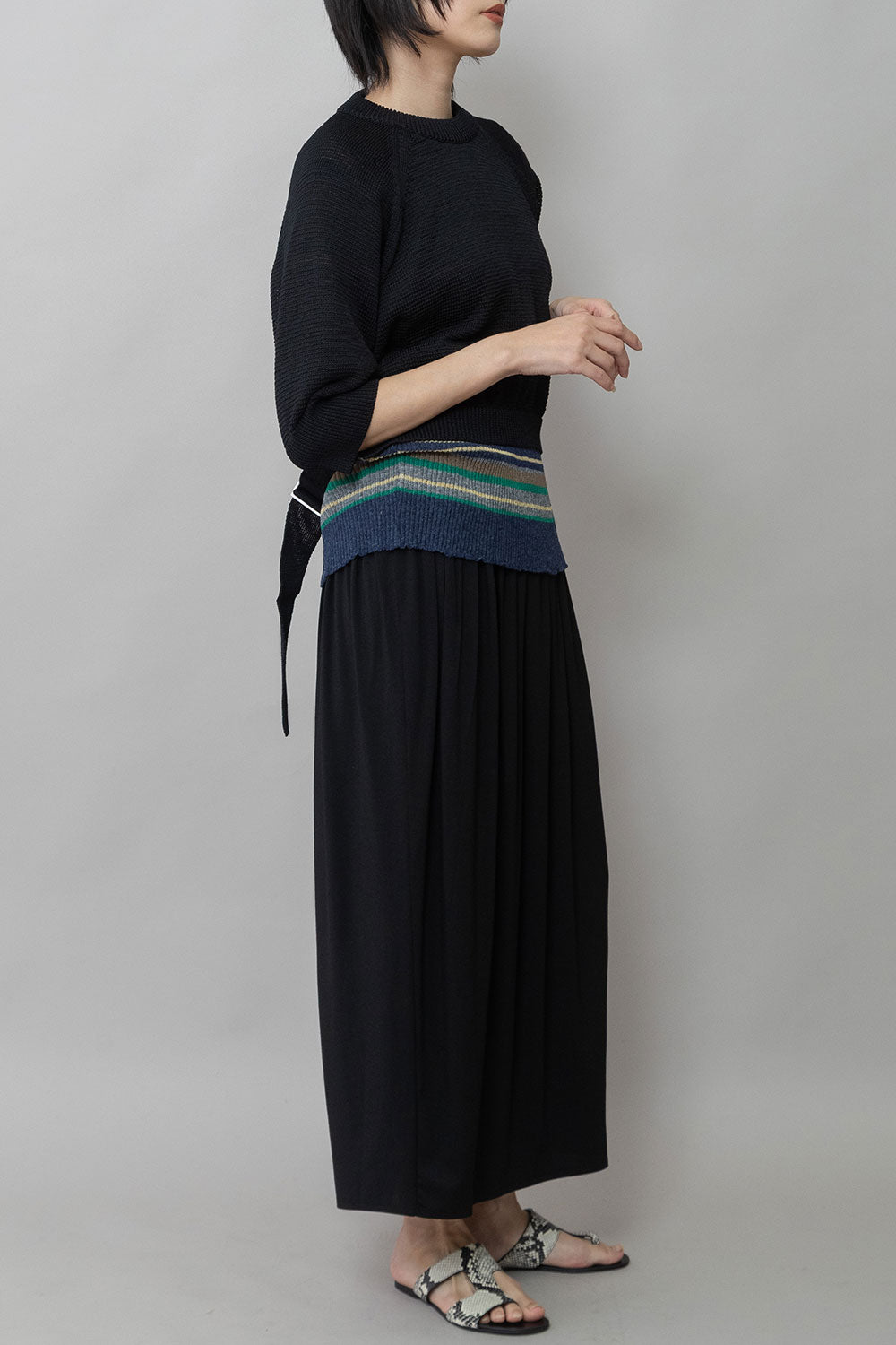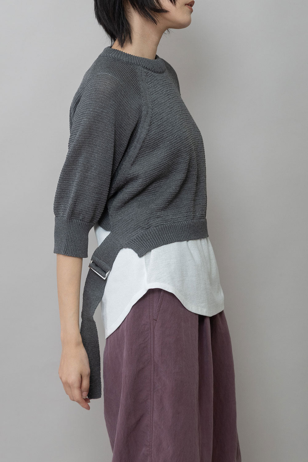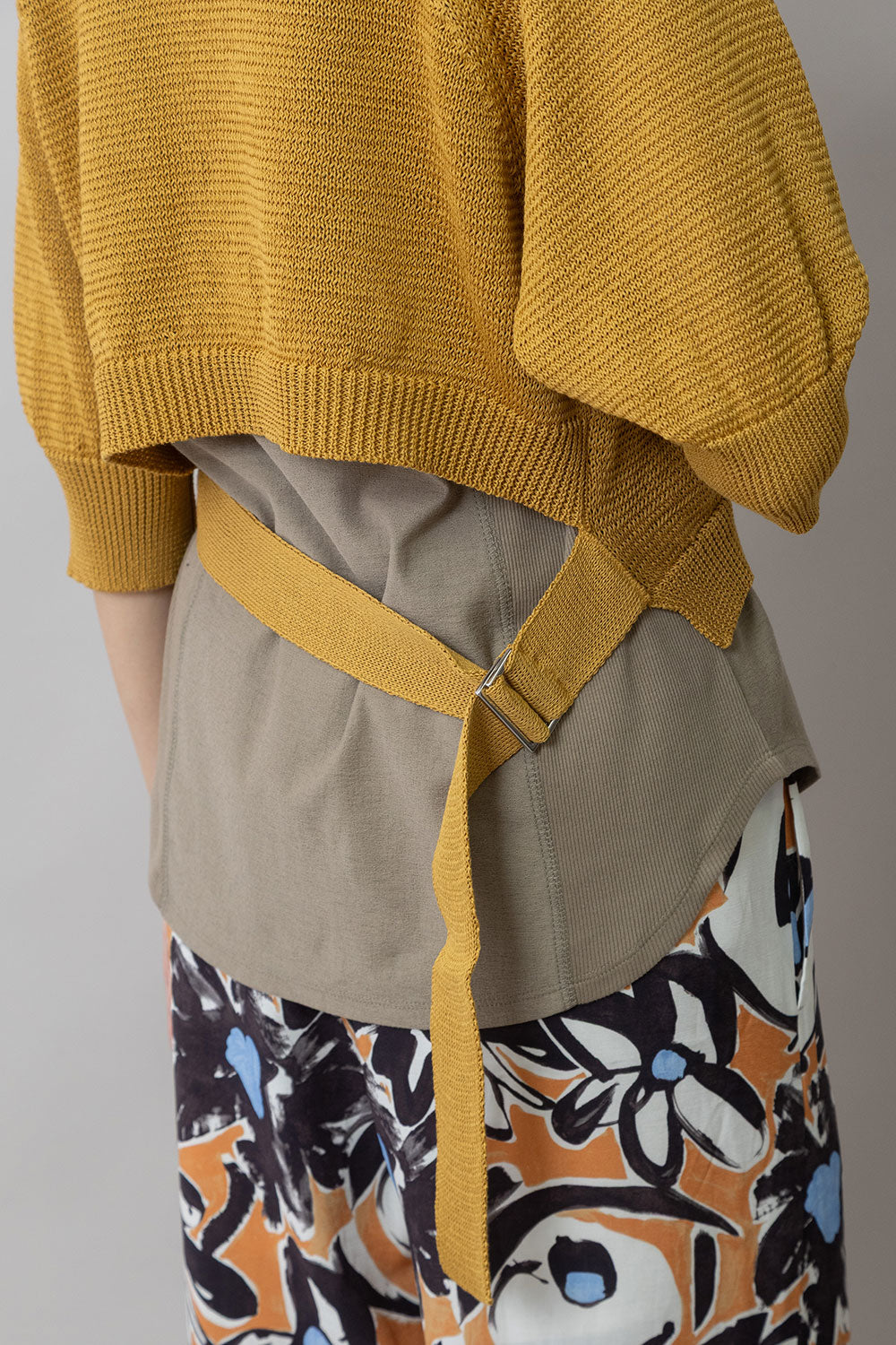 長めのニットテープとDカンのディティールで、シルエットに変化を付け、バックスタイルに抜け感を加えたニットプルオーバー。