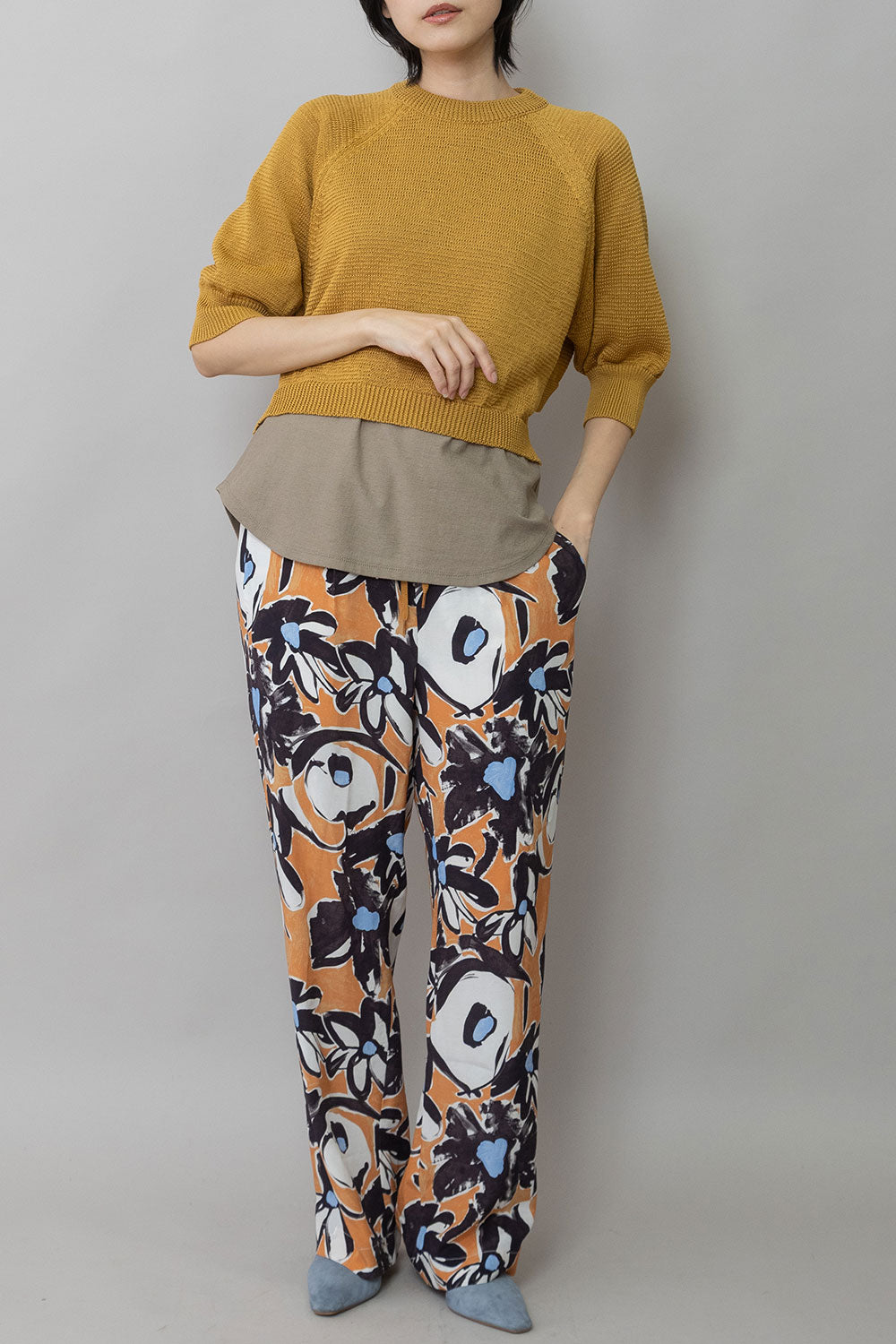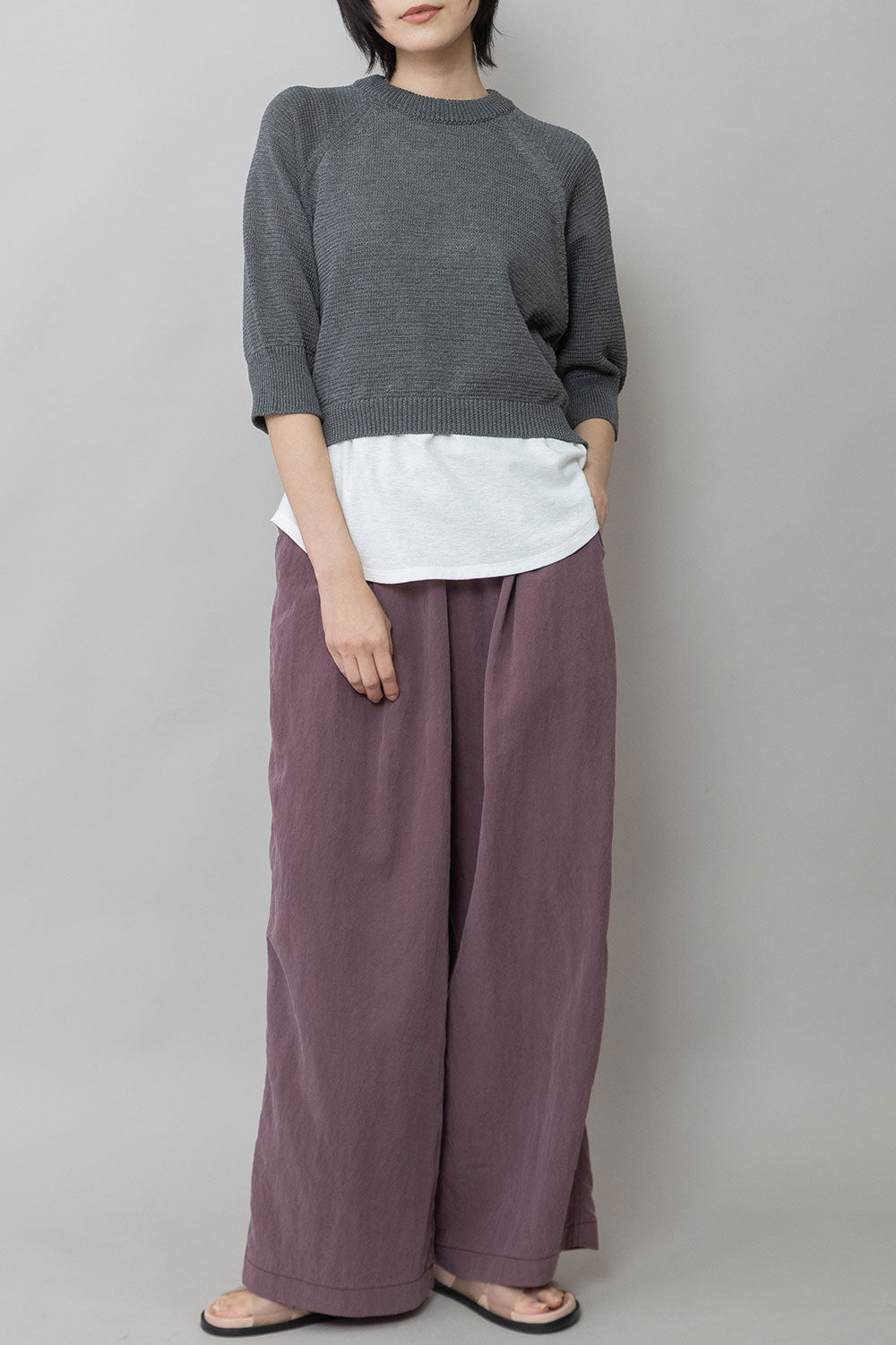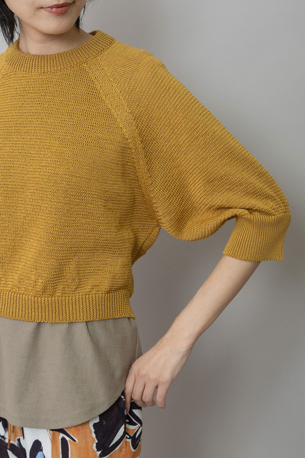 コンパクトな丈感に、ひじが隠れる大人袖を組み合わせてバランスを取り、トレンド感あるトップスに仕上げました。