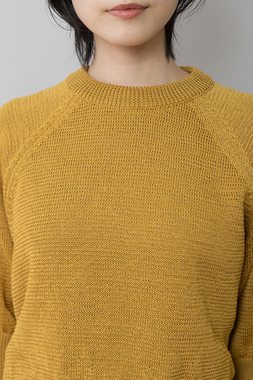 意図的に編み目の度目をコースごとに変えて編む技法で、生地に凹凸感や表情が生まれ、フラットな天竺には表現出来ないさりげない立体感のある仕上がりになります。