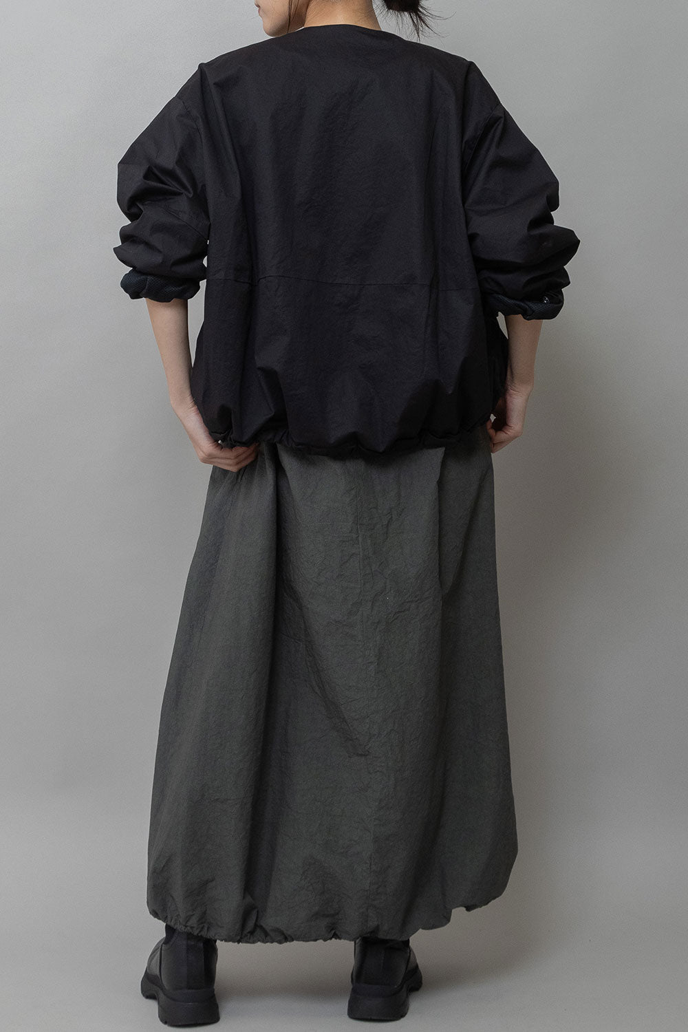 しっかりとしたハリと表情のある生地なので、キレイ過ぎずデイリーに使いやすいです。透け感もないので1枚でさらりと着こなしても、同素材のMN261T26をばさっと羽織るのもおすすめ。