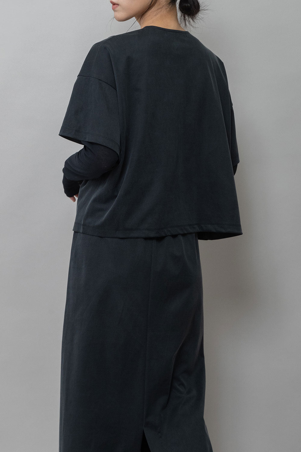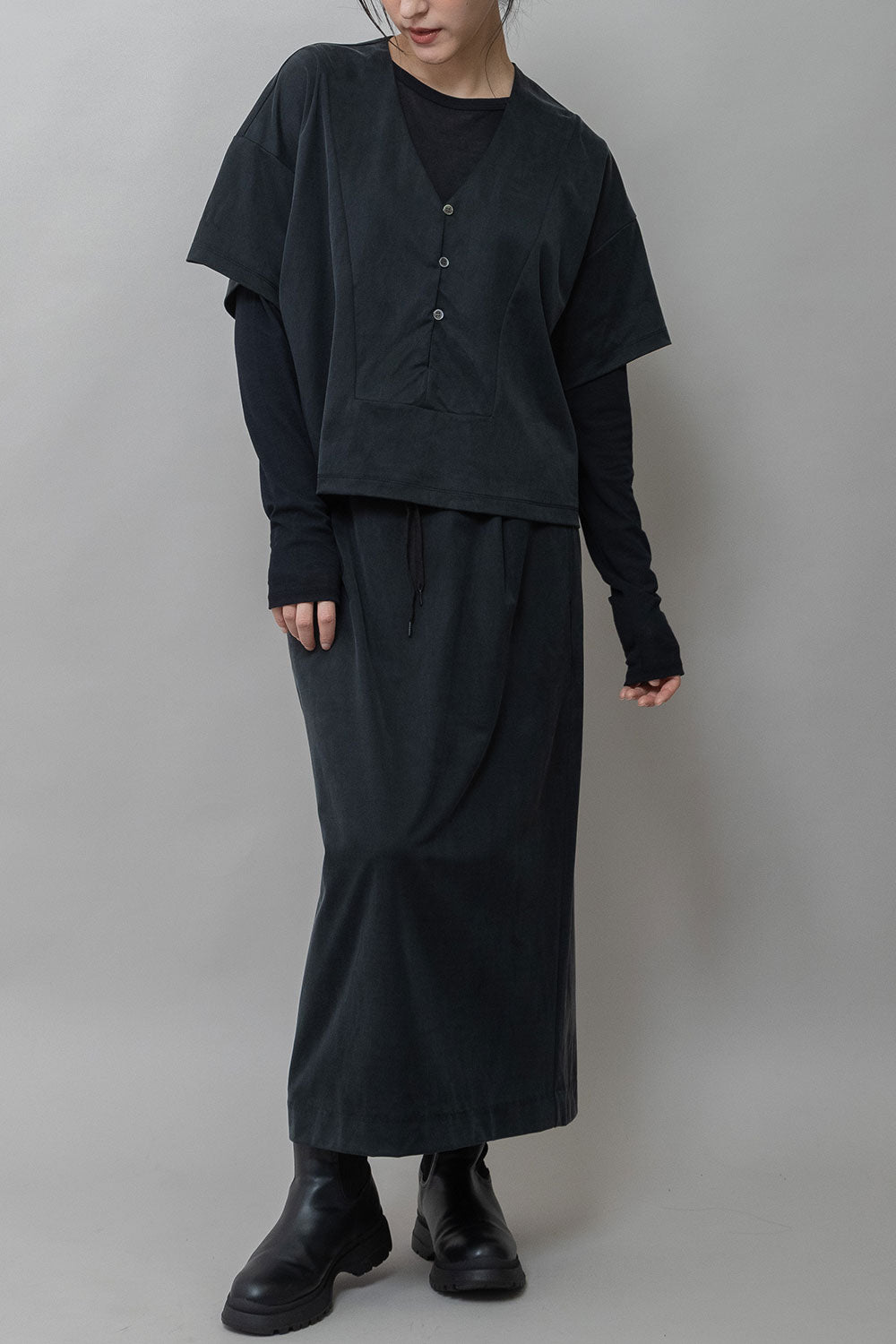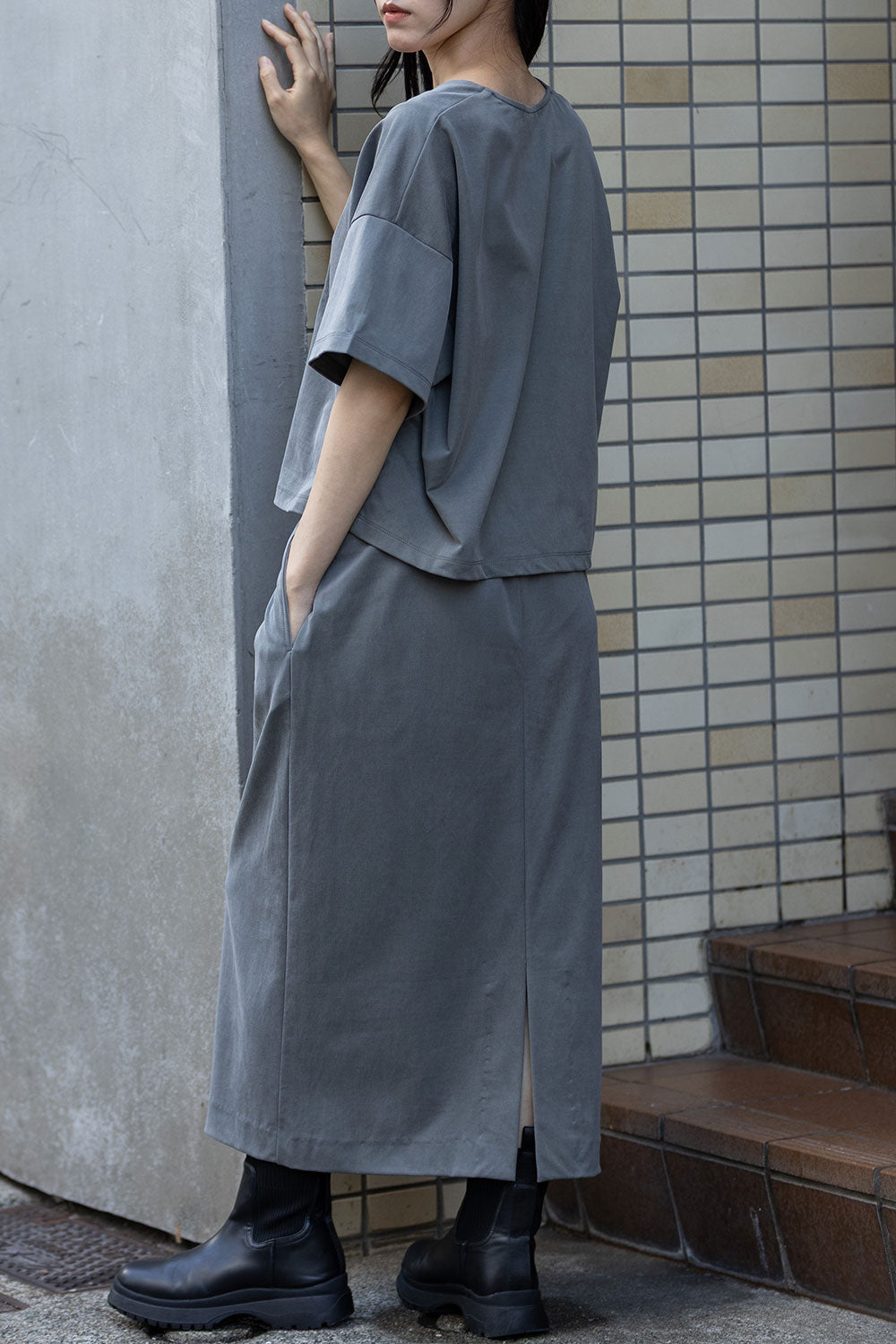 同素材のブランド品番MN261S13のスカートとのセットアップでもバランスよく着られるサイズ感です。