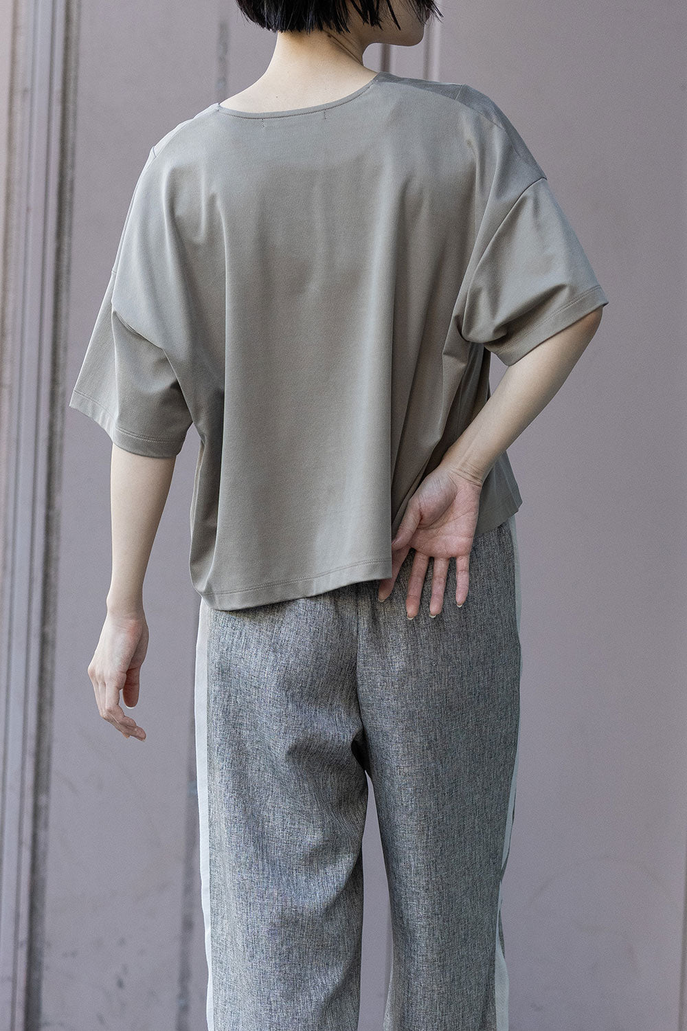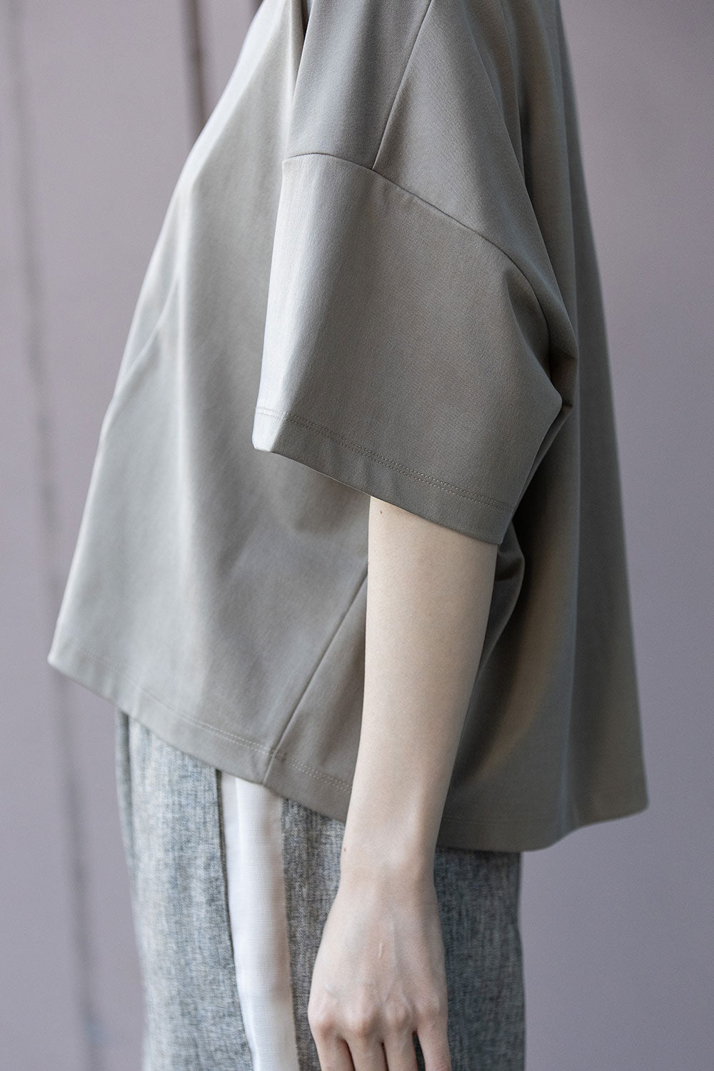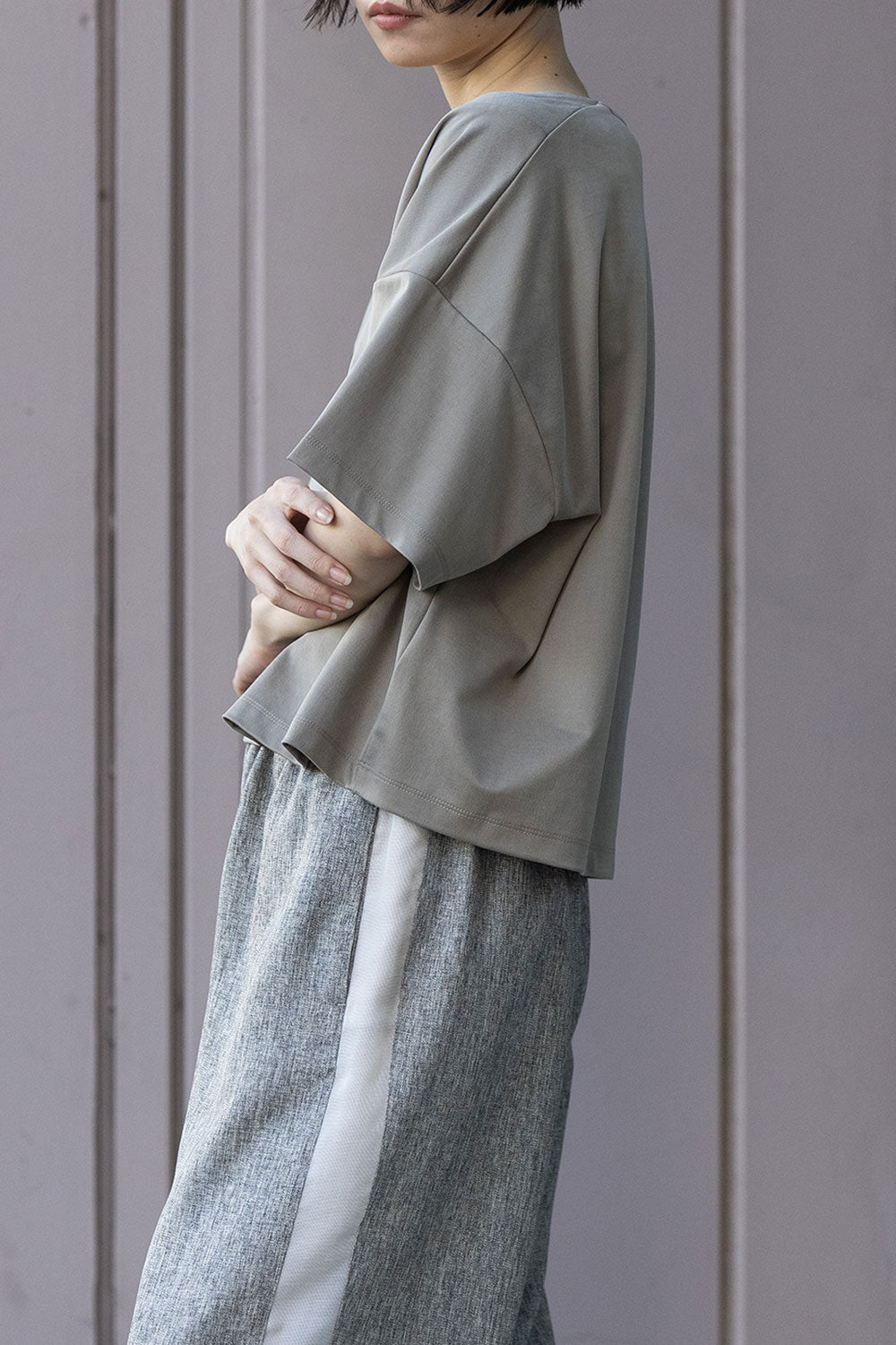キレイめなTシャツと、ラフに着られるブラウスの中間の様なトレンド感あるアイテムです。