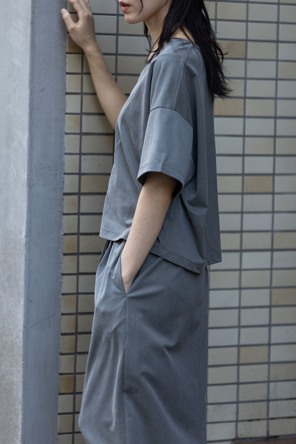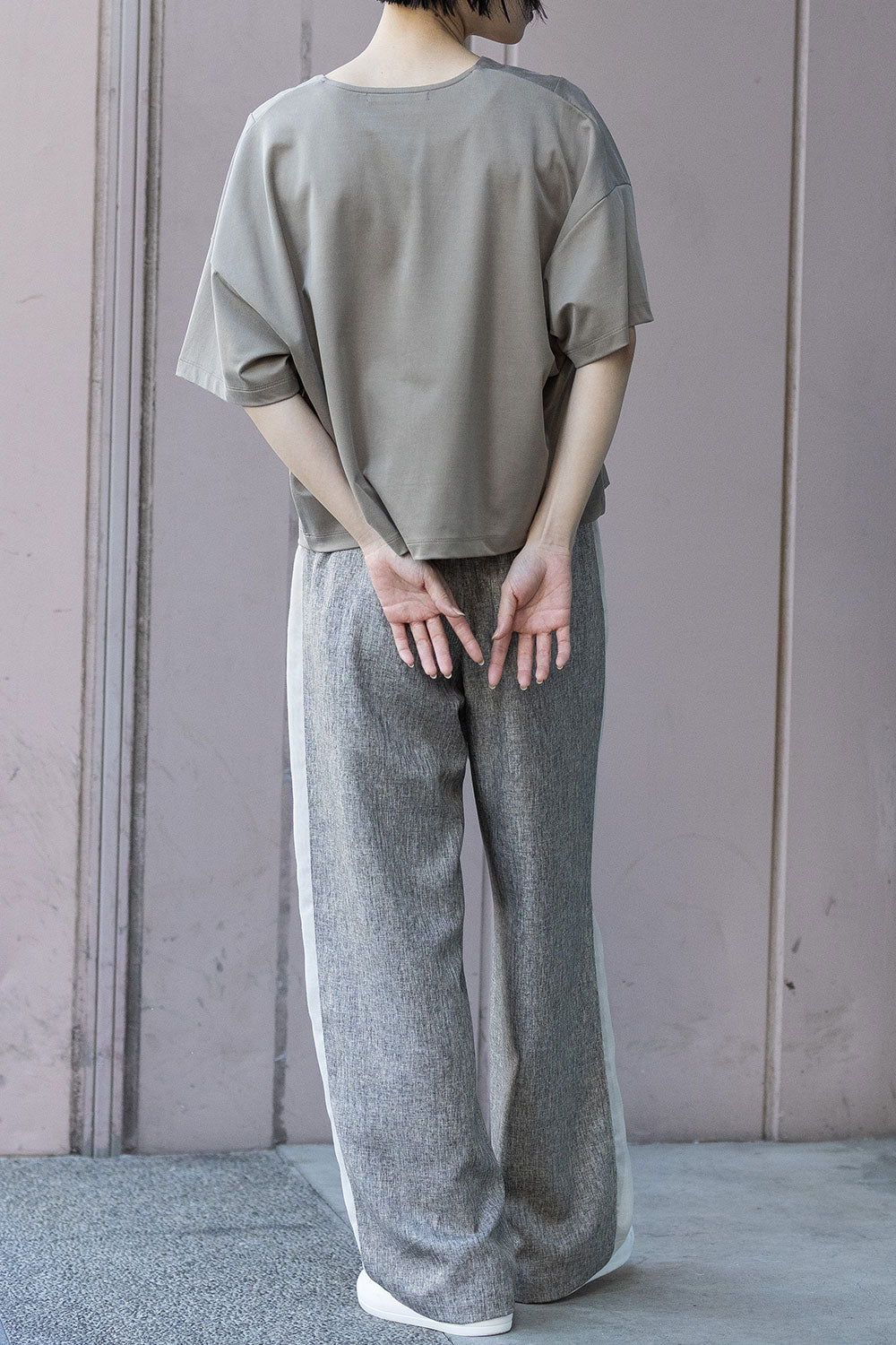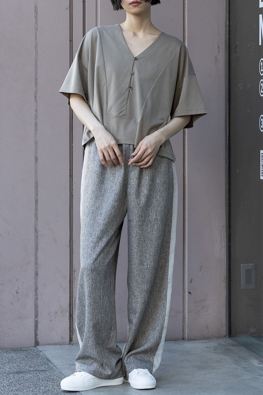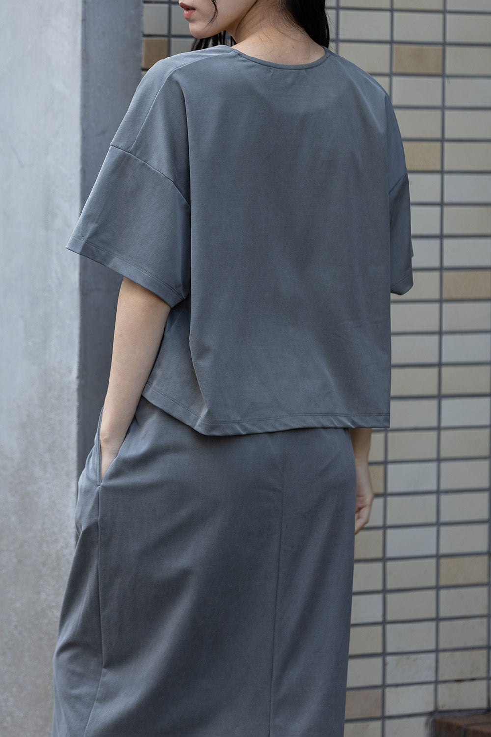 キレイめなTシャツと、ラフに着られるブラウスの中間の様なトレンド感あるアイテムです。