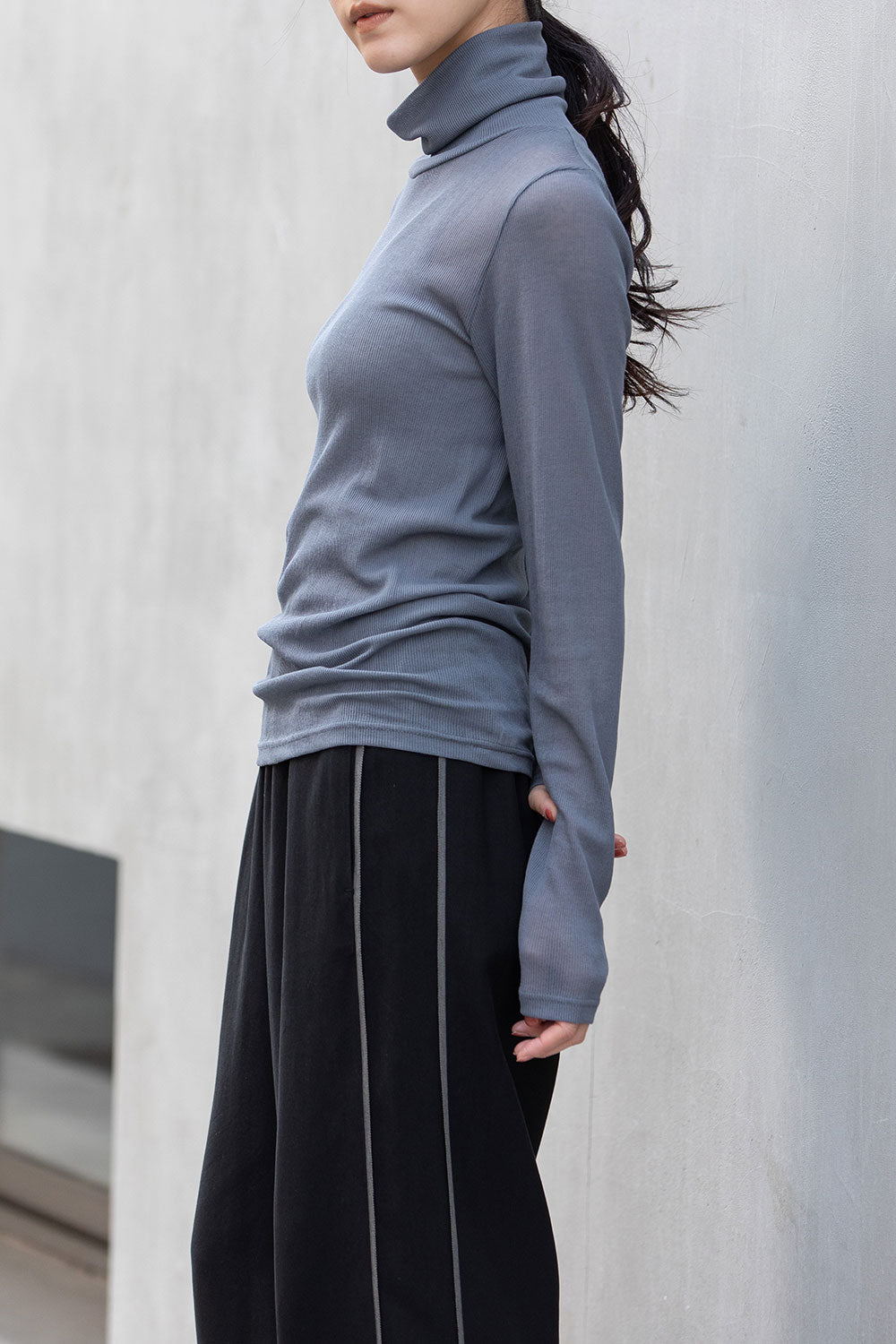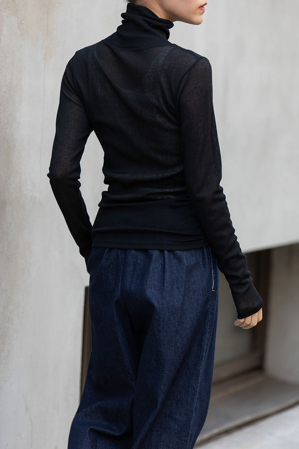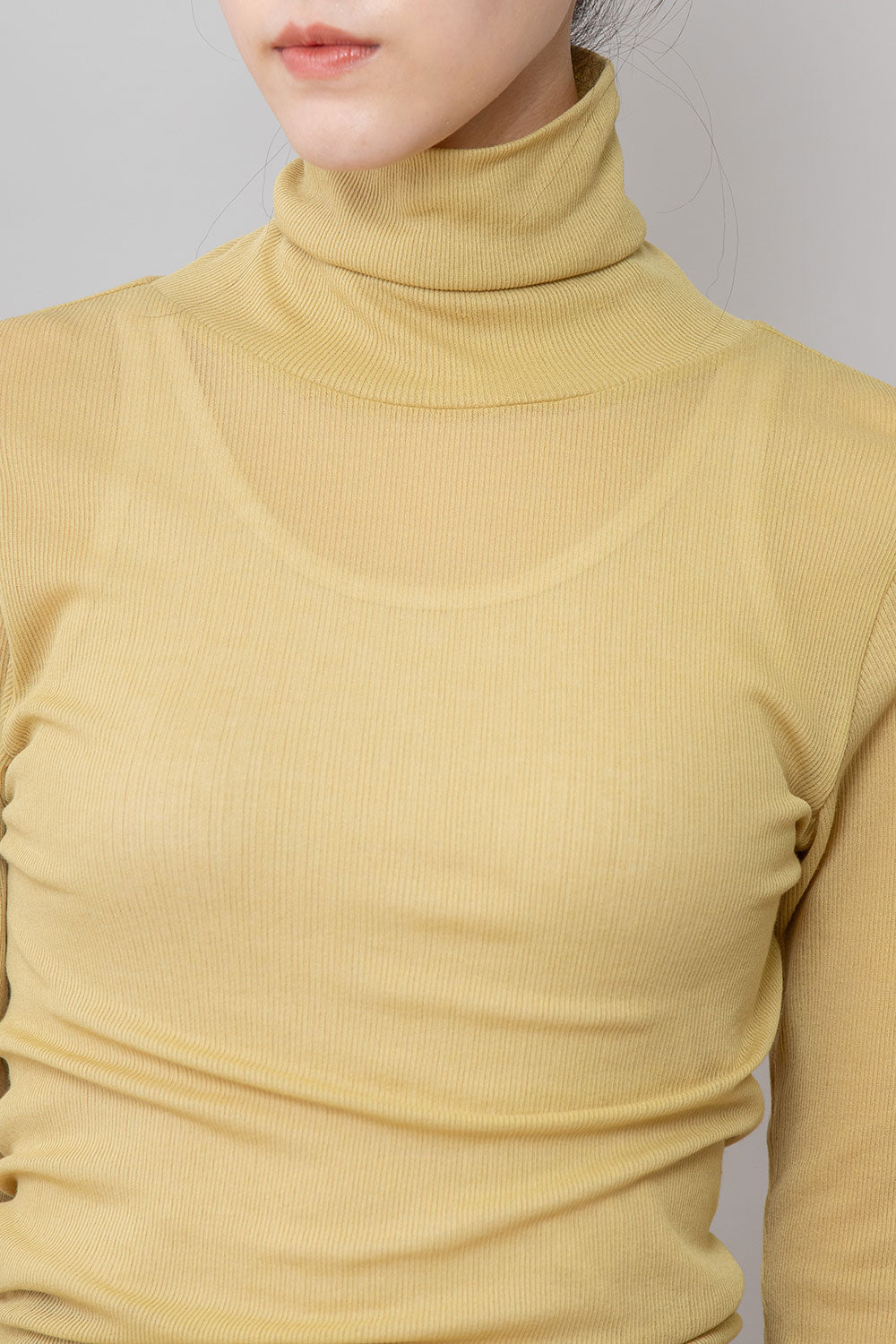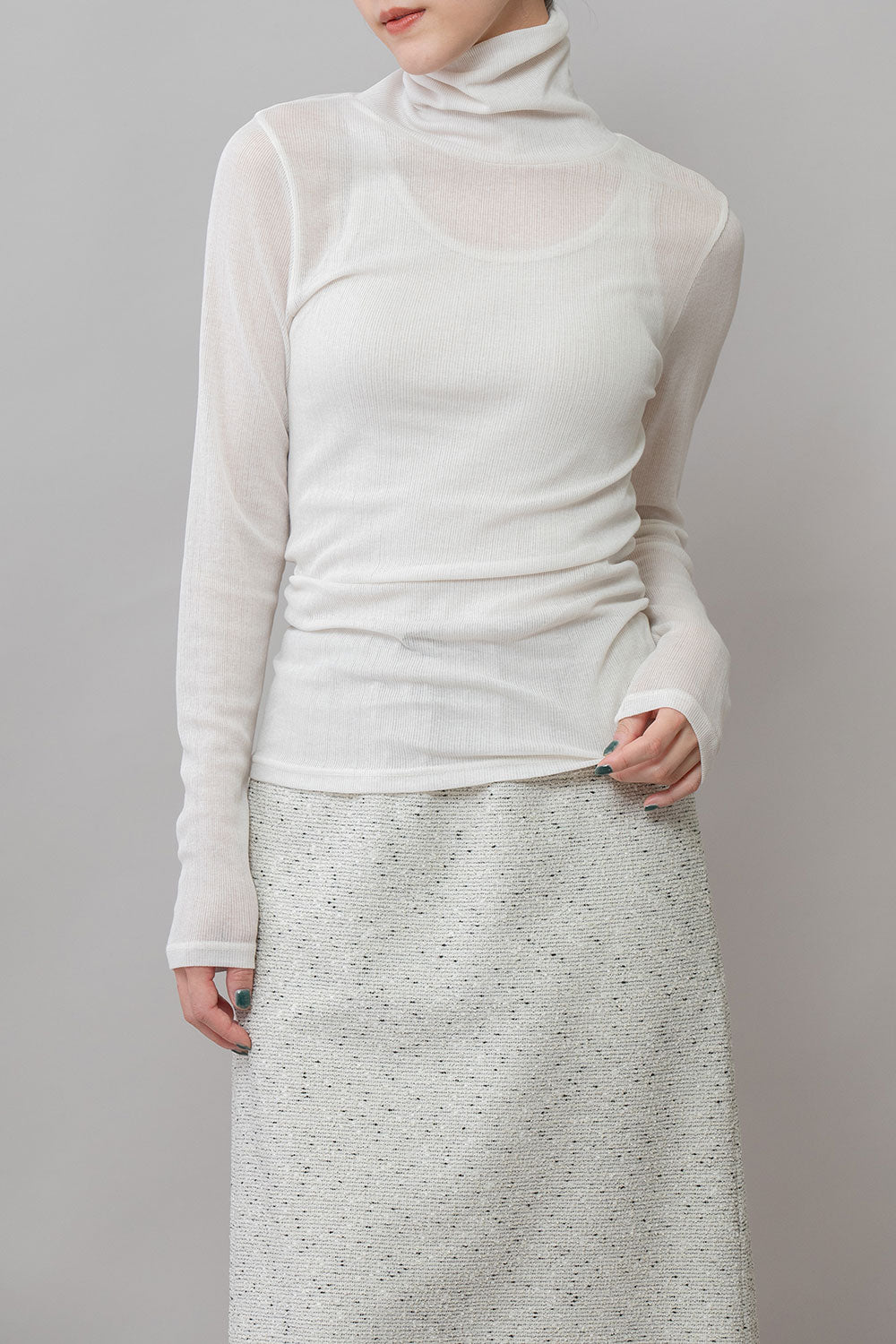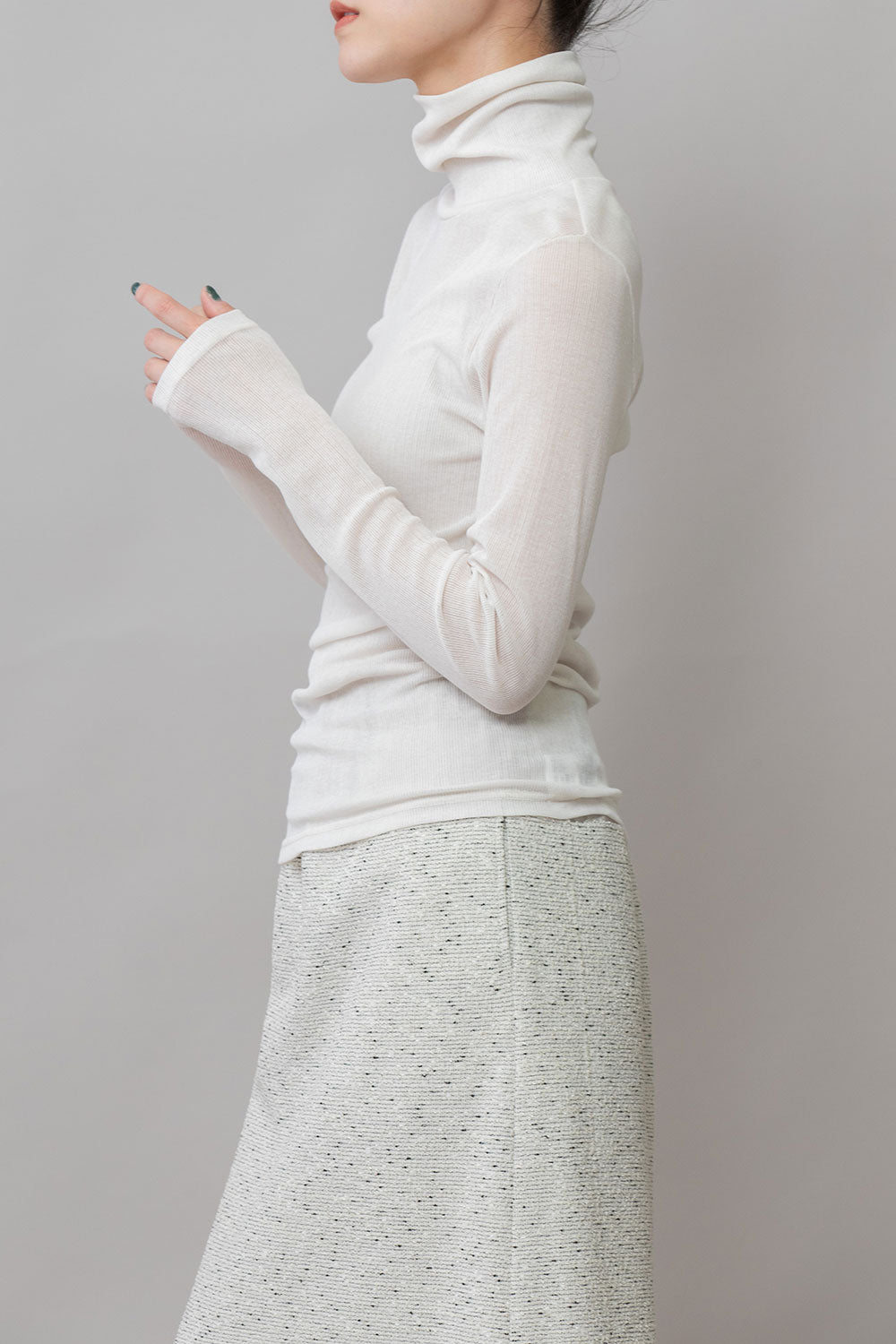 トレンドのシアーな素材感が魅力のタートルインナーです。