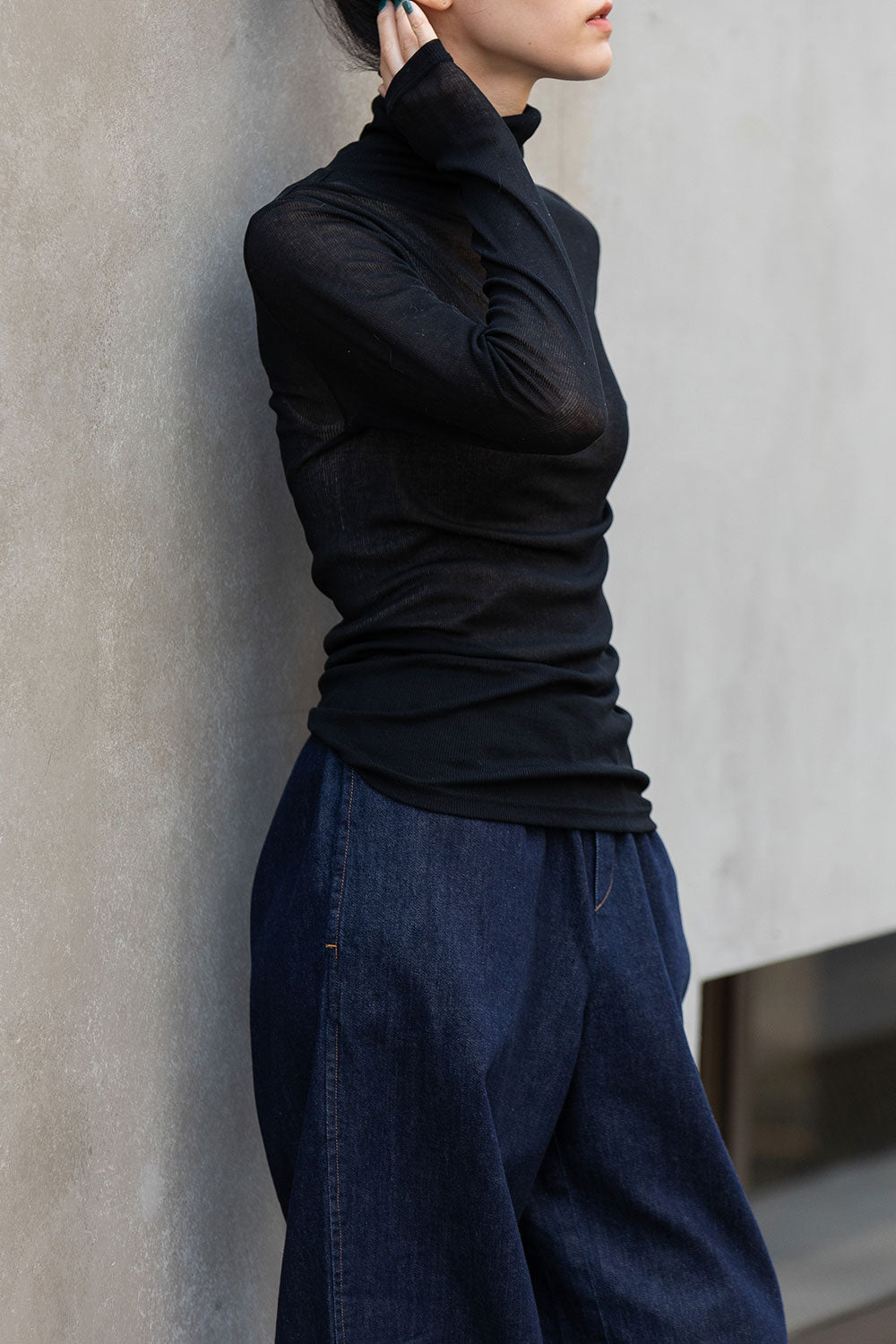 ◆上品なシアー感で滑らかな肌触りが気持ち良く丸胴編みの抜群な伸縮性がシルエットをきれいに魅せてくれるタートルネックトップス◆