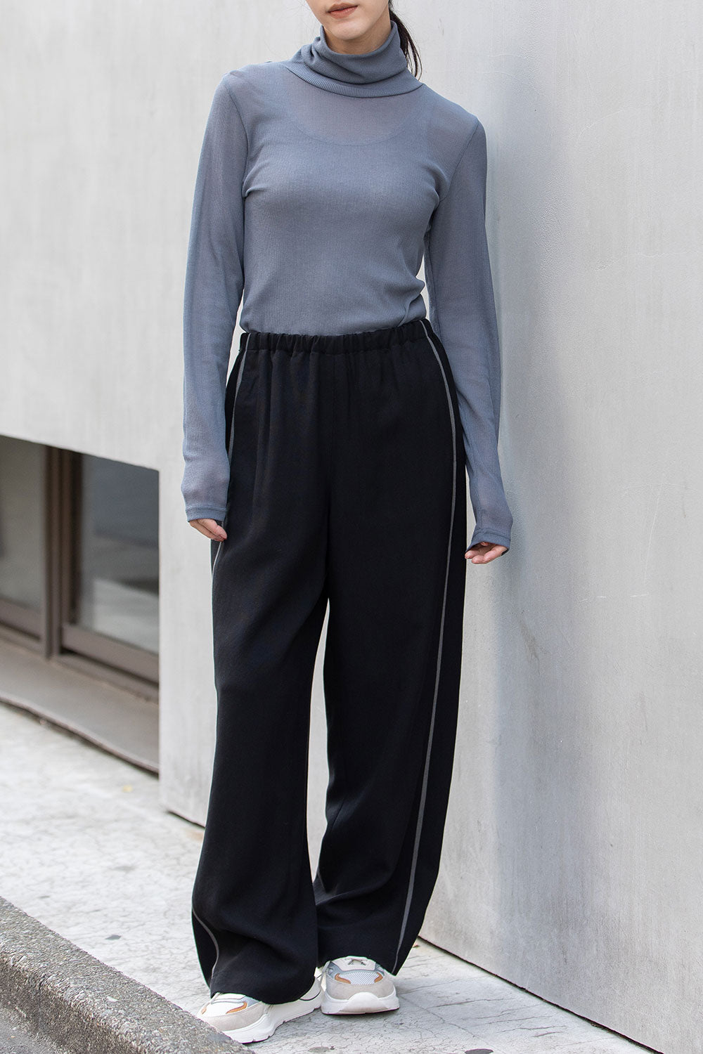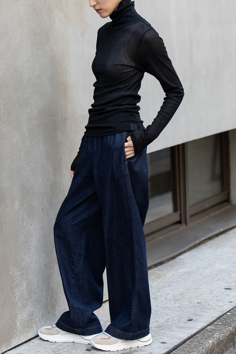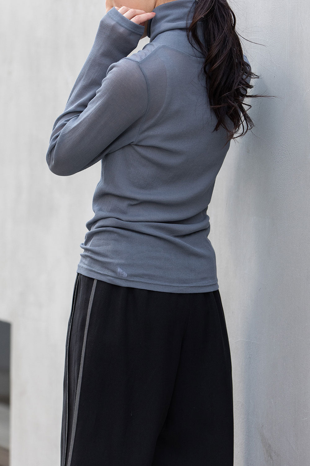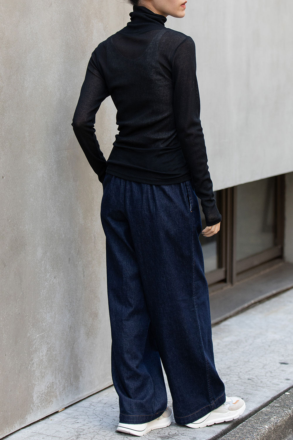 タートルと袖口がクシュっとゆるみ、チラリと見せるスタイリングにおススメで、インナー要素がメインにはなりますが、小さすぎず、大き過ぎずなサイズ感に拘っているので、1枚で着て、インナーを透けさせるコーディネートにも使えるサイジングに仕上げています。