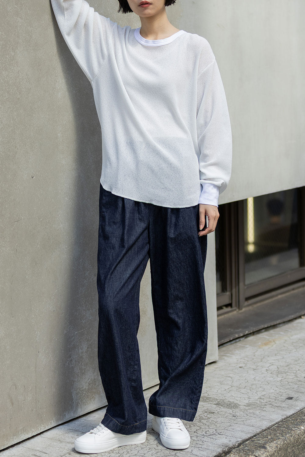 素材が軽くて柔らかいので、ジャケットのインナーに使ったり、一枚で着たりインしたり、様々な表情が楽しめるアイテムです。