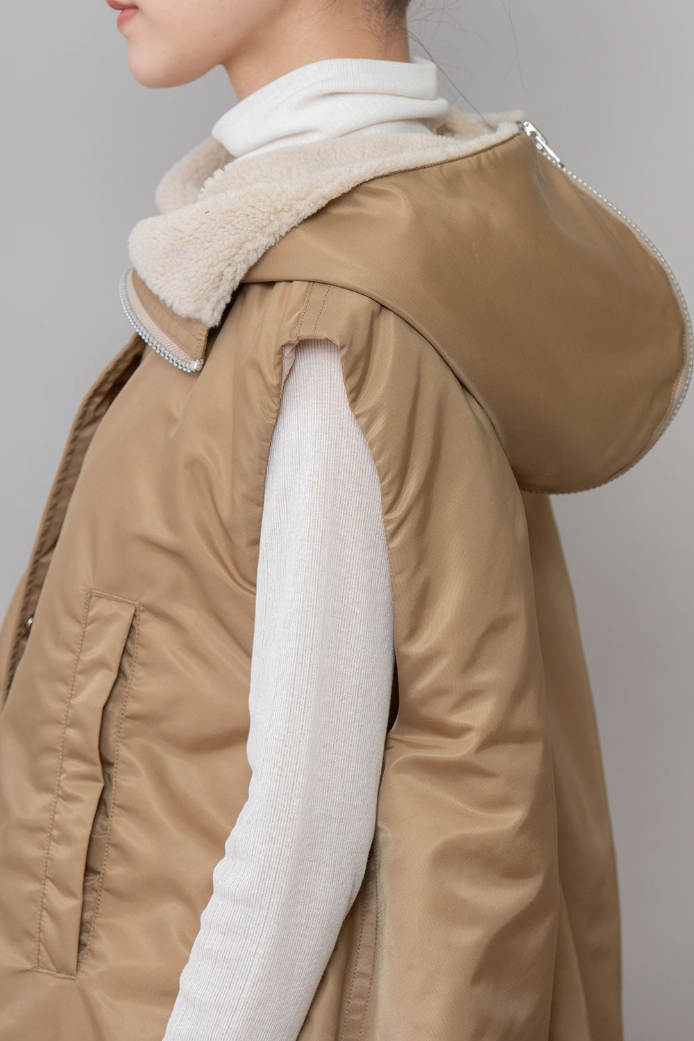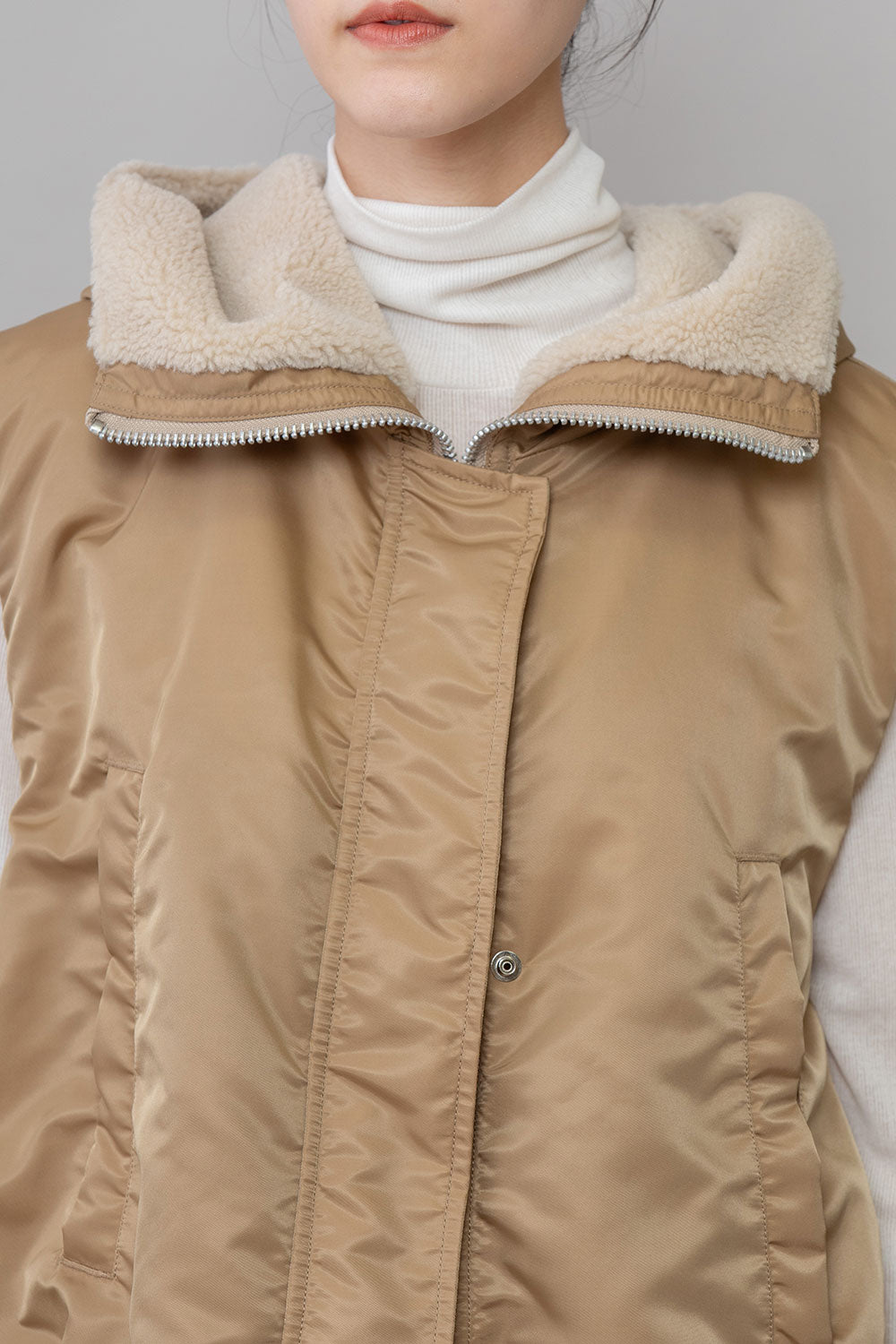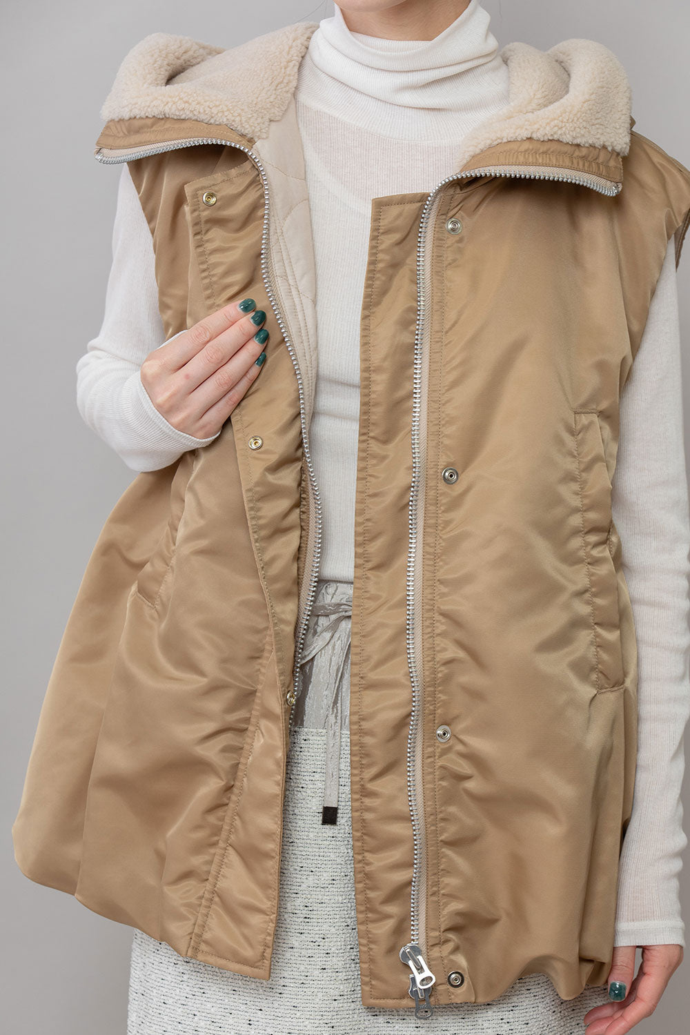 ◆ミリタリーなデザインを施したナイロン×ボア×中綿のコンビで丸みあるフォルムで女性らしさを感じられるベスト◆