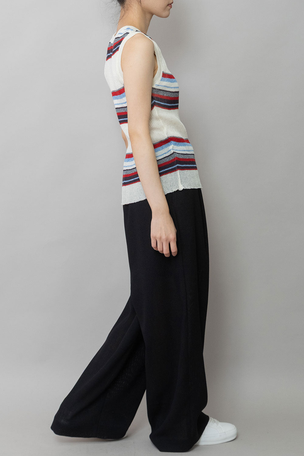 ショート丈やコンパクトなトップスと相性がよく、タンクトップやTシャツからブラウス合わせまで幅広いアイテムと組み合わせできるアイテムです。