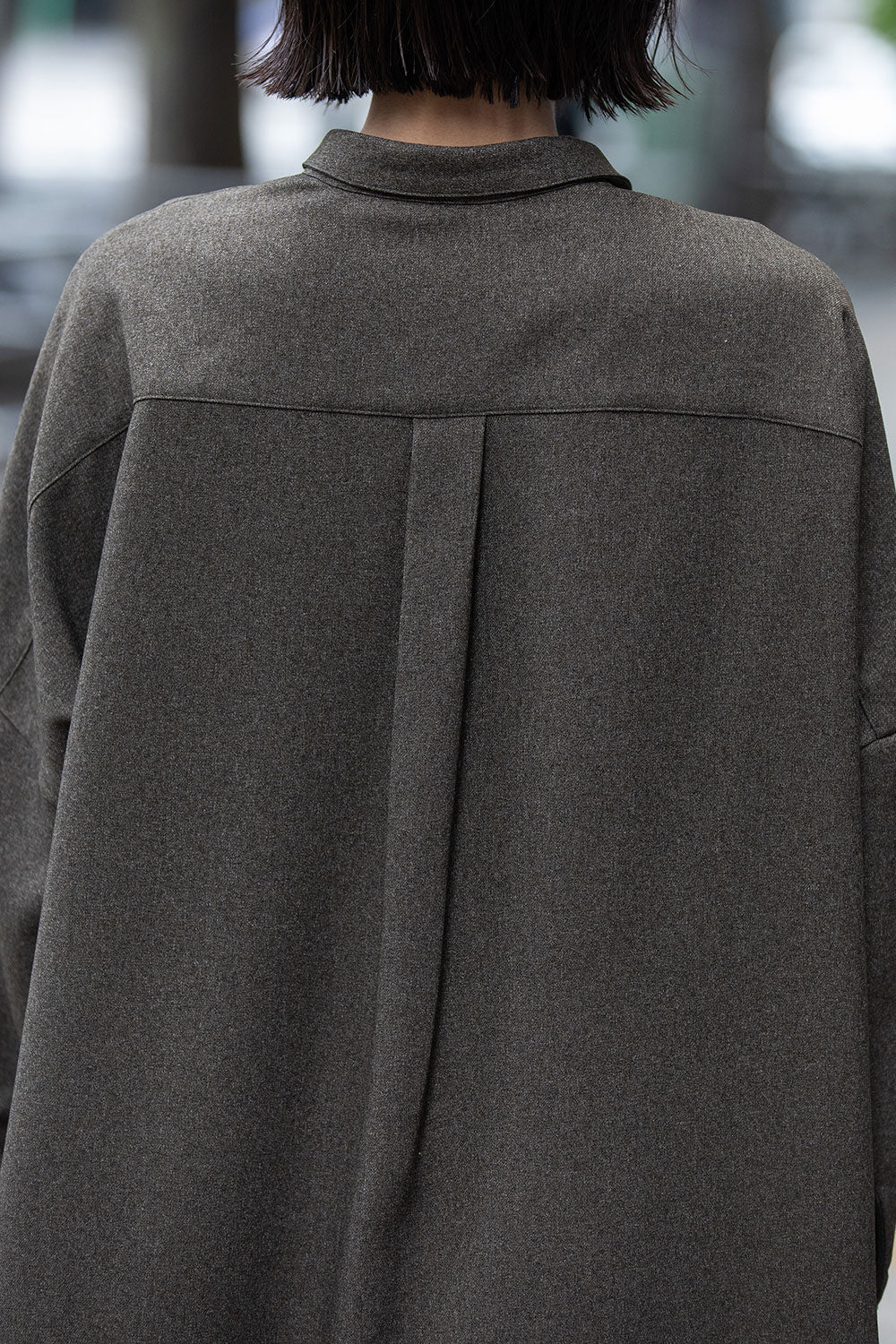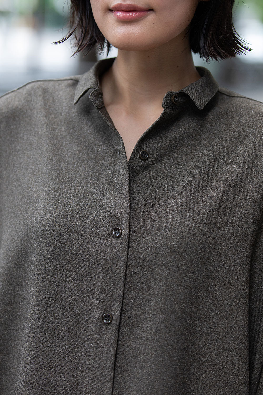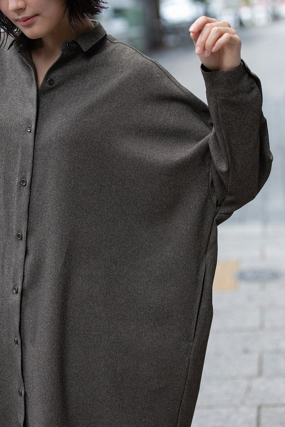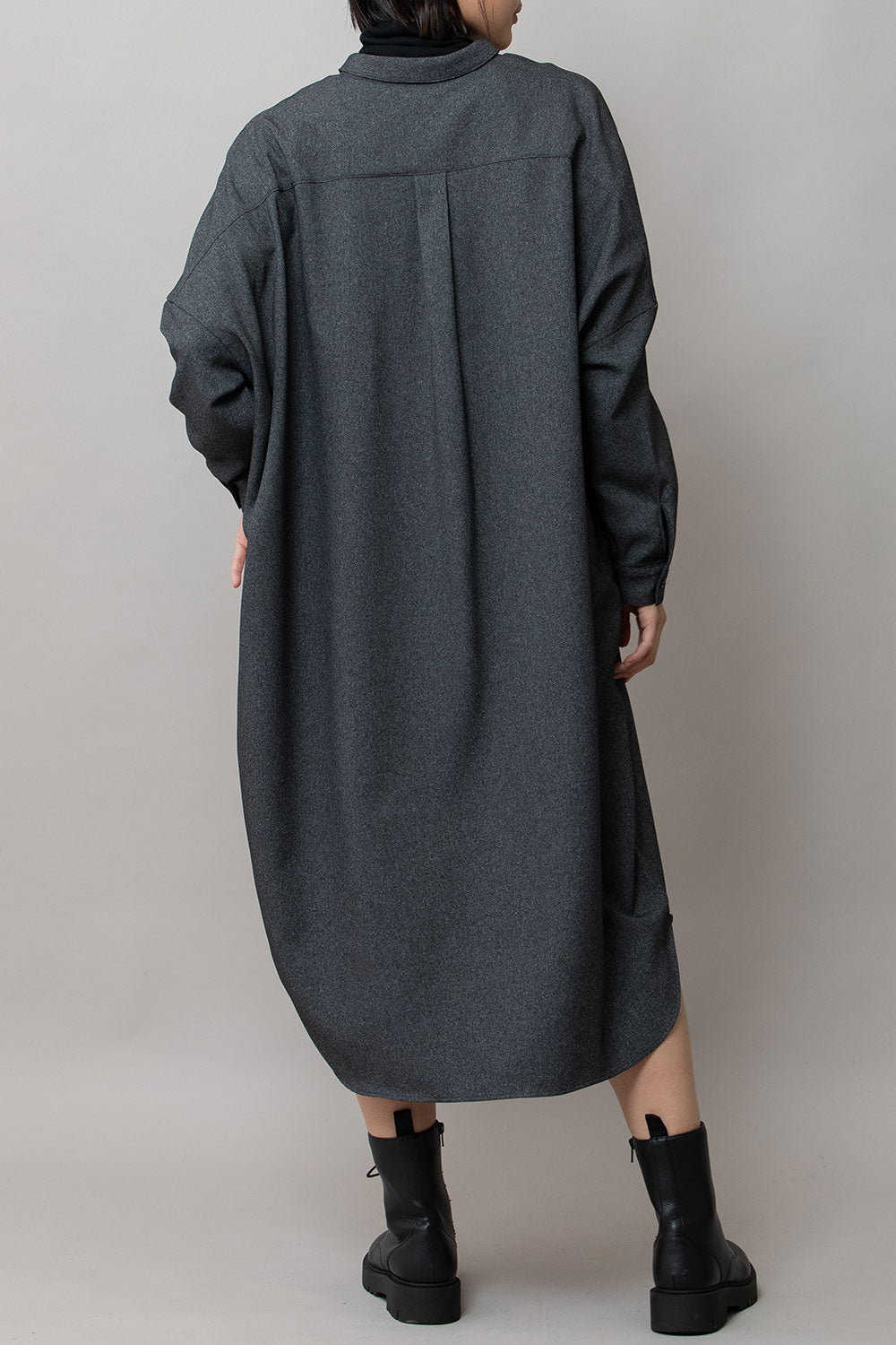 ◆ウールライクなメランジ調ツイルで、羽織りにも使えるゆったりシルエットのカジュアルワンピース◆